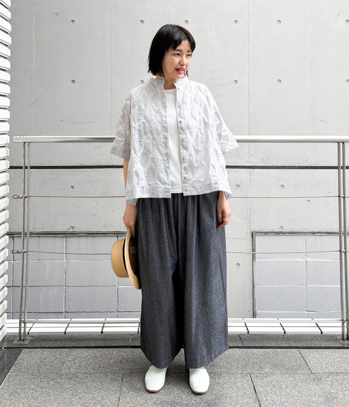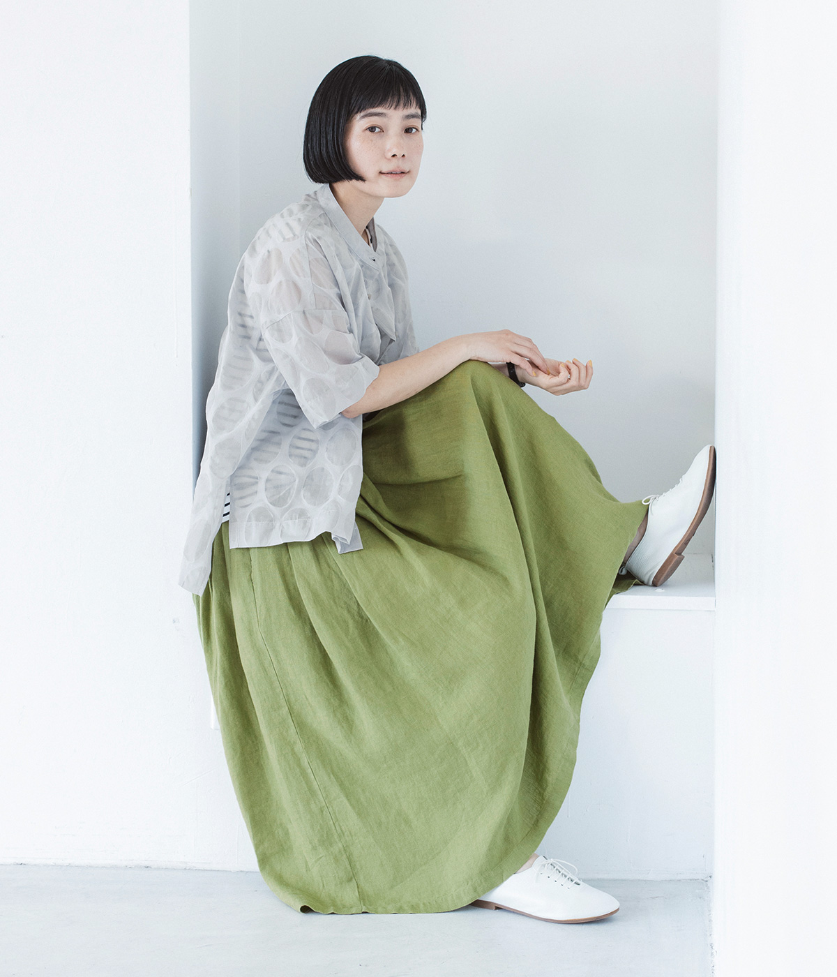 ドットシアーシャツの着用コーディネート