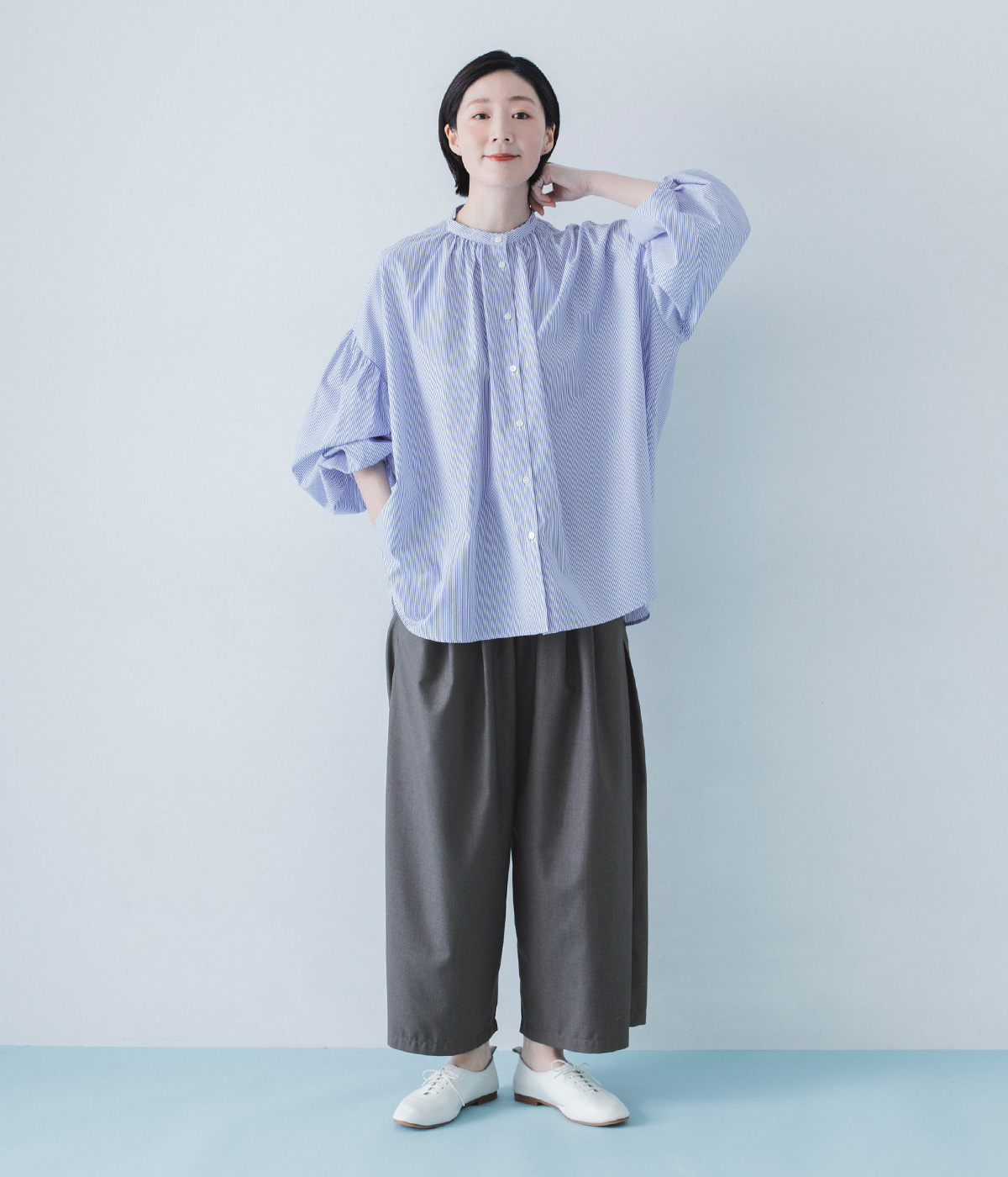 リネンキャンバスセーラーカラーブラウスの着用コーディネート