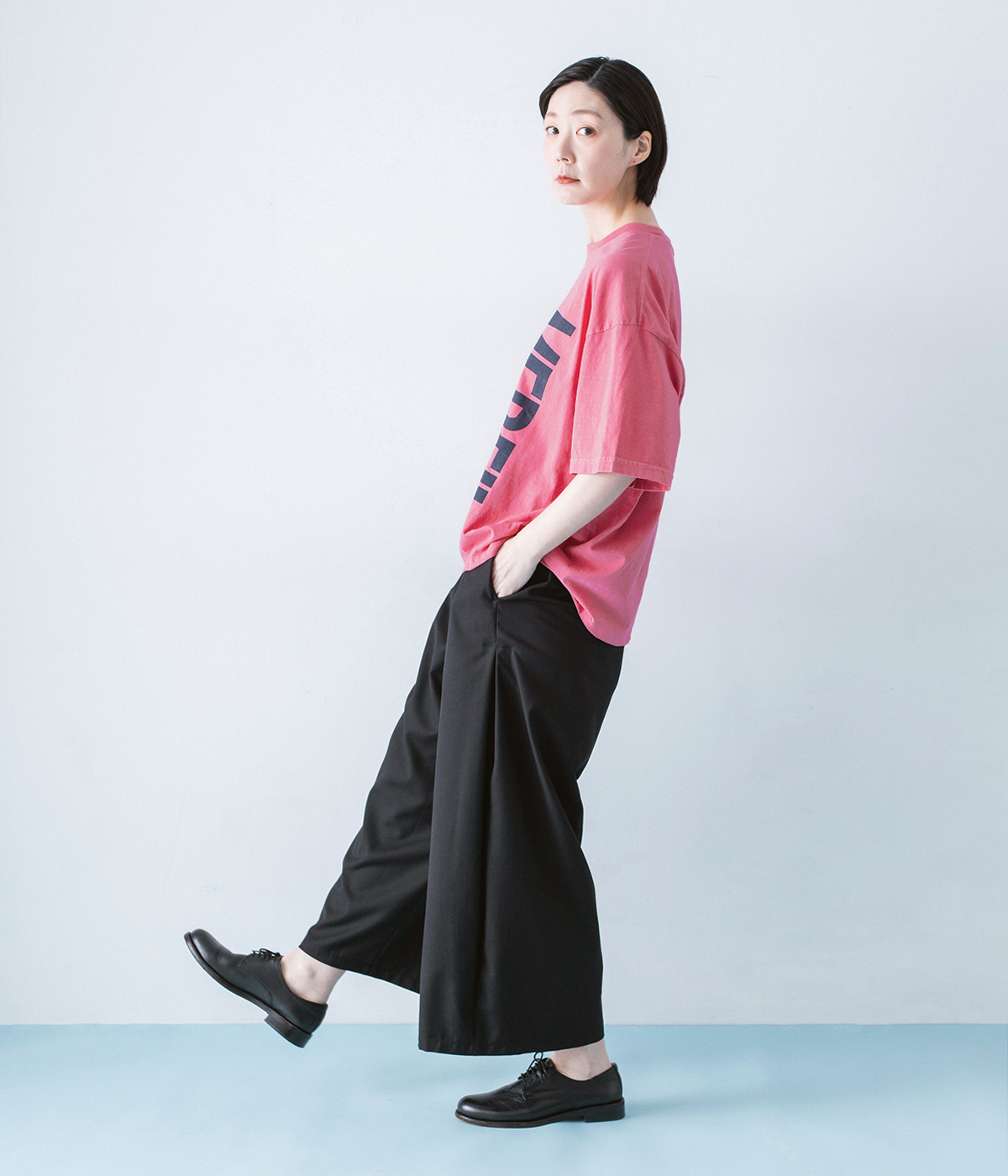 シアーリネンバンドカラーブラウスの着用コーディネート