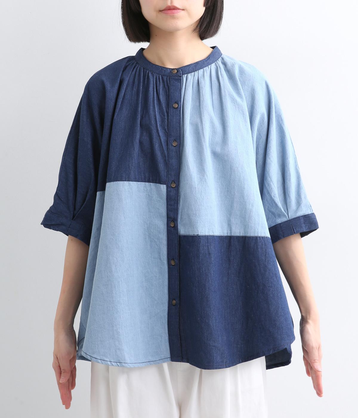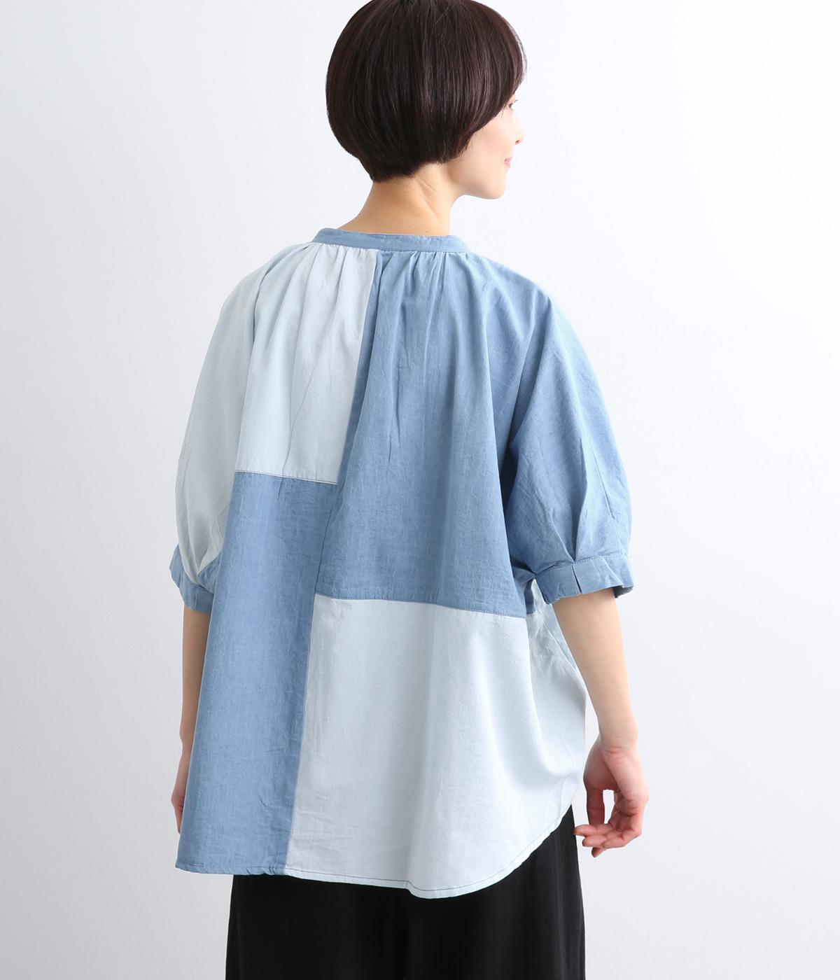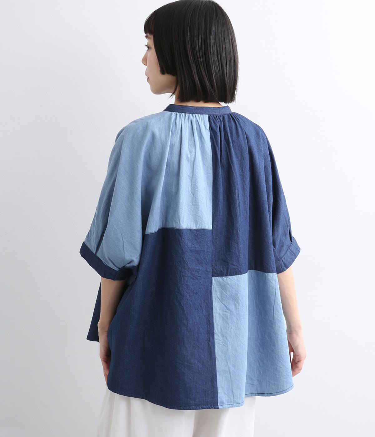 パッチワーク風の切り替えデザインが着こなしに個性をプラス。カジュアルな素材とふっくらしたボリュームスリーブのMIX感が◎。ややフレアなシルエットが着こなしやすく、羽織りスタイルもおすすめ。