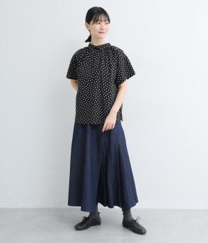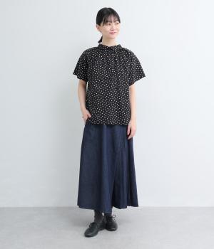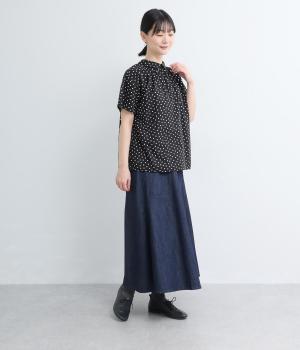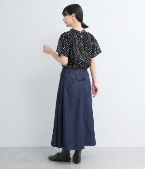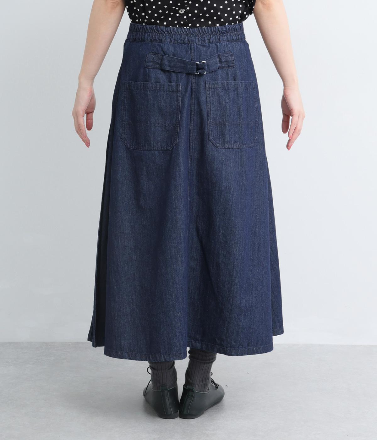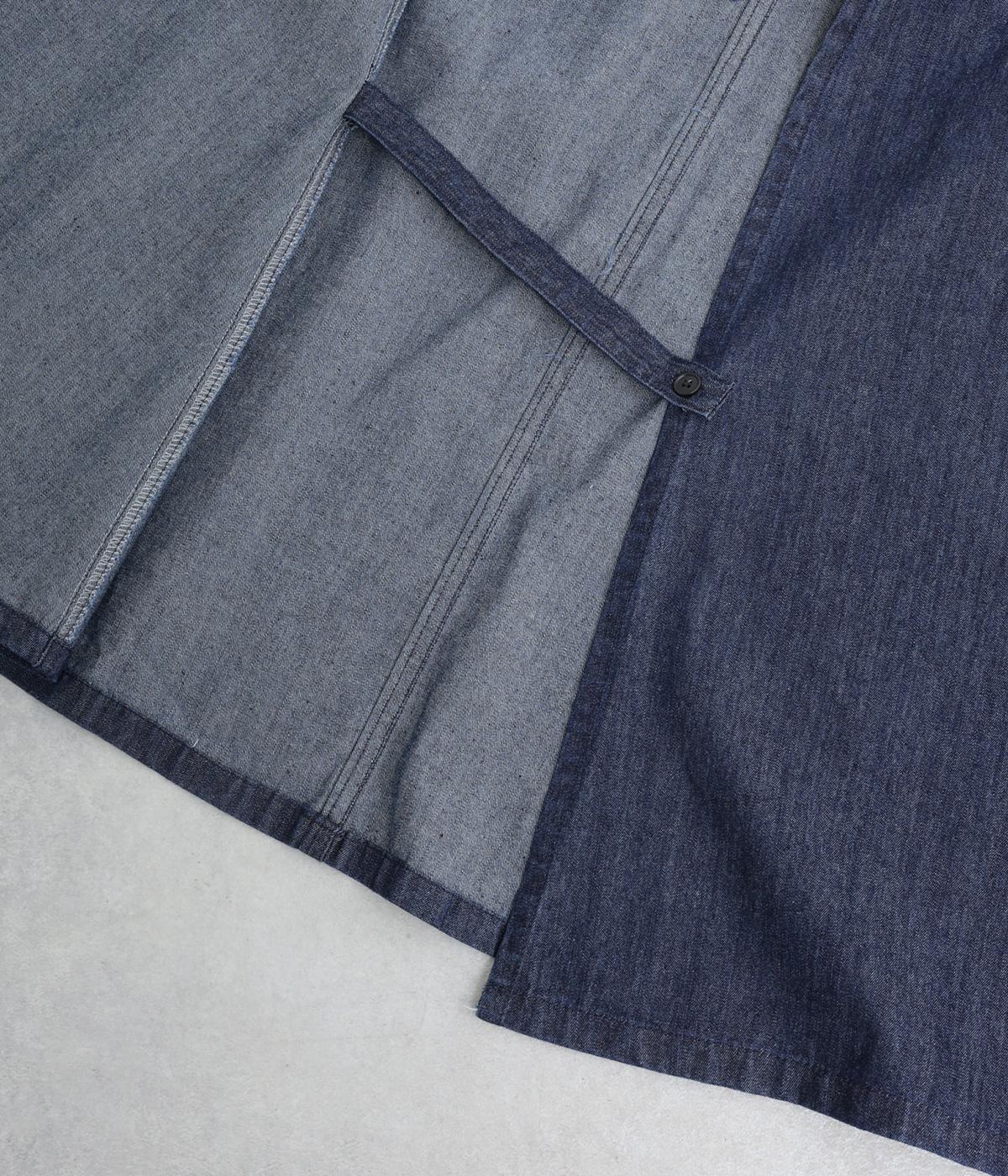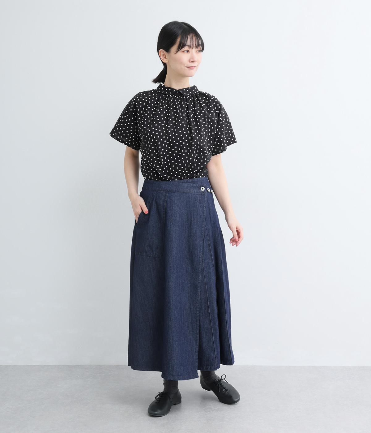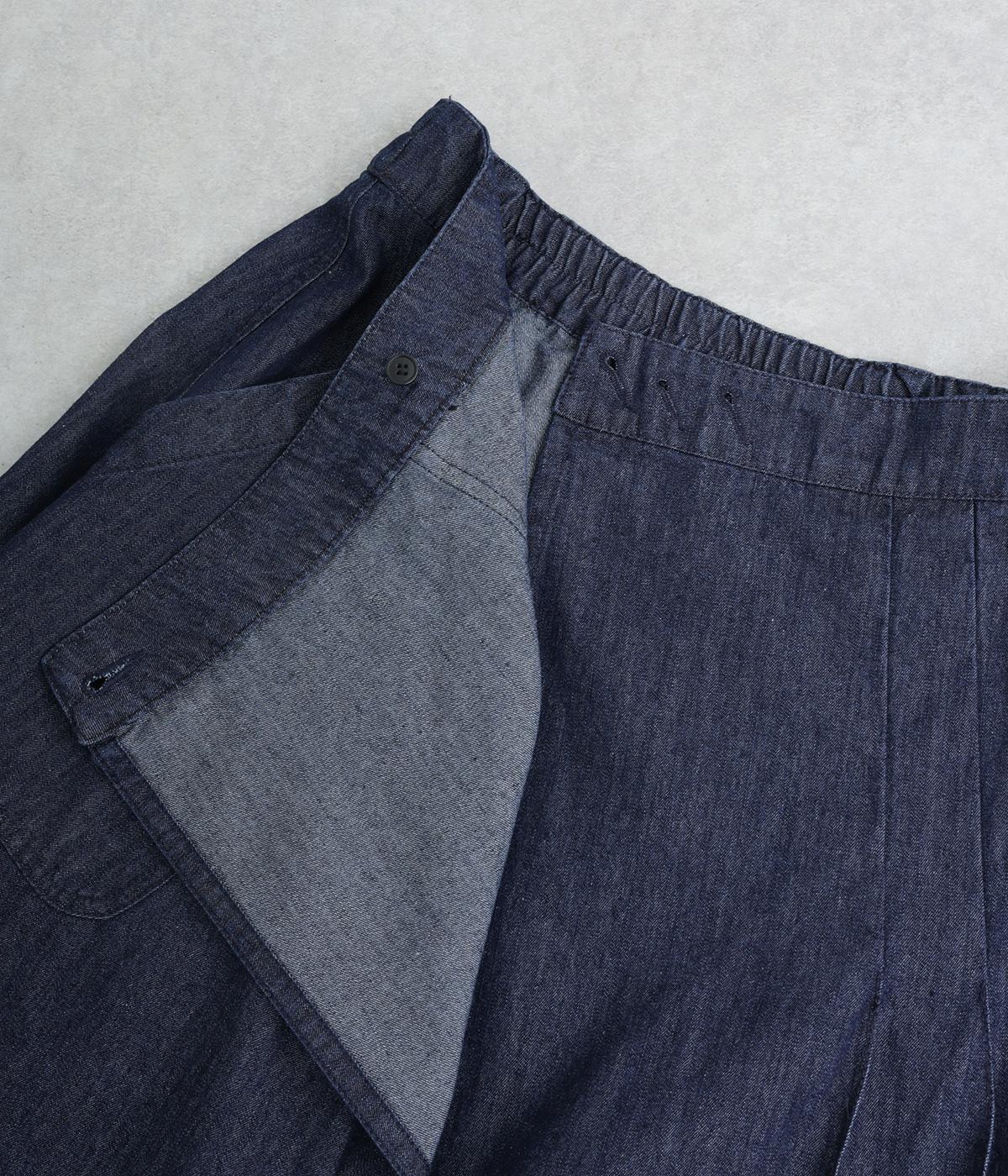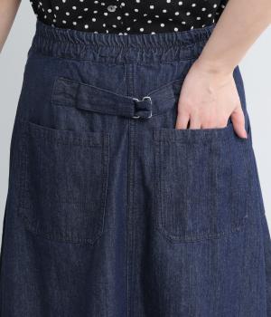アイビールック要素を取り入れた巻きスカートは、片側にタックを入れたアシンメトリーデザインが洗練された印象に。ウエストはボタンで微調整可能。後ろウエストはゴム仕様でフィット感よく仕上がっています。いつものデニムスタイルを格上げする一枚。