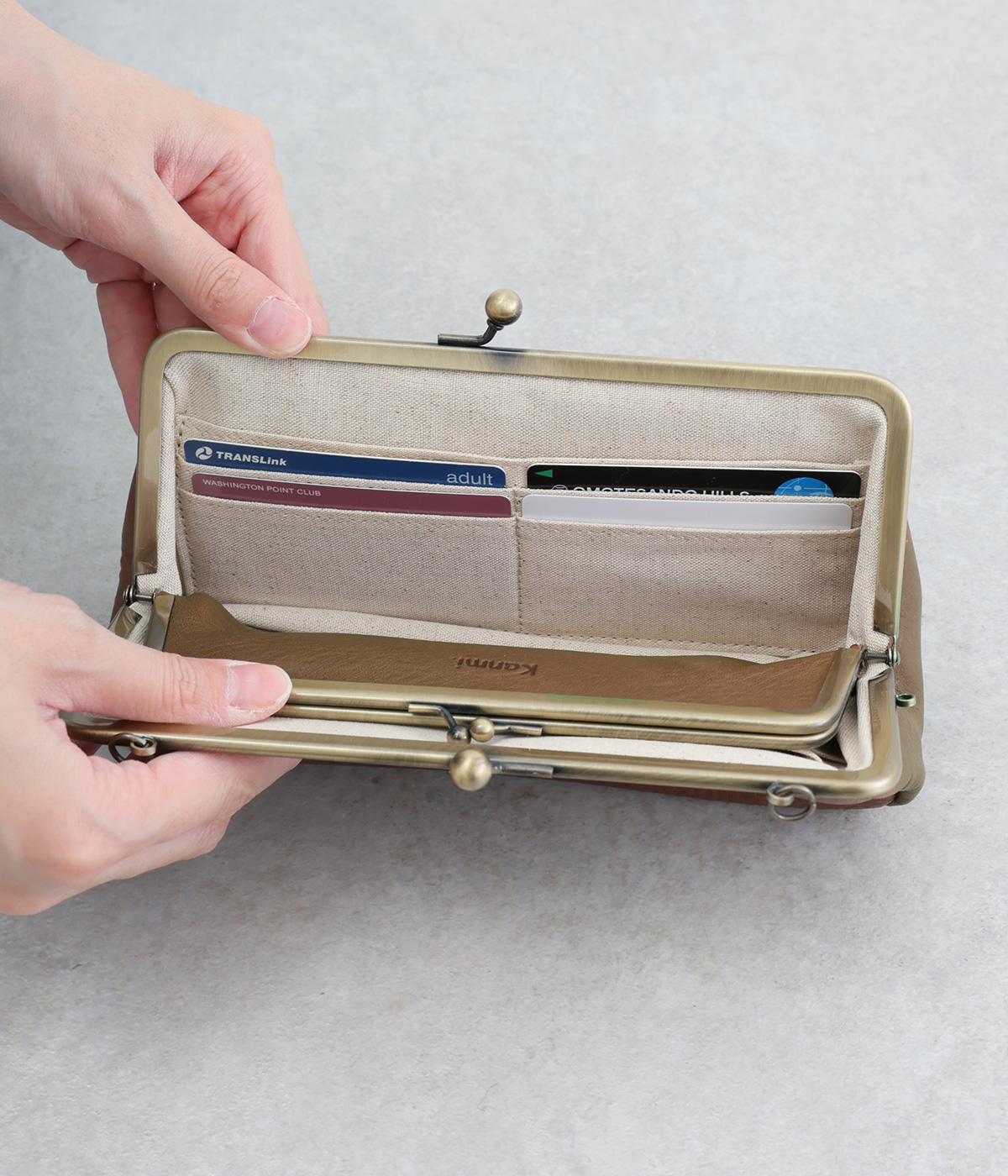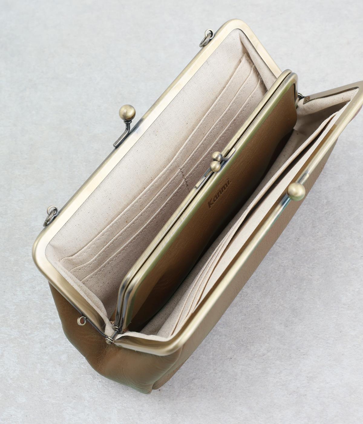 長財布としてだけでなく、スマートフォンなども入るミニウォレットポシェット。小銭やお札、カードだけでなく通帳や領収書もたっぷり入るので、ちょっとランチに出かけるときもこれひとつで◎。ショルダーを取り外すとクラッチバッグに早変わり。