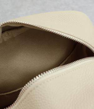 シンプルなスクエアシルエットで、幅広いコーディネートに合わせやすいポシェットです。ダブルファスナー仕様で開閉がしやすく、荷物の出し入れもスムーズ。内側の小物ポケットに加え、背面にはスマートフォンなどをさっと収納できるポケットを備えた、高い実用性がうれしいポイントです。