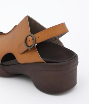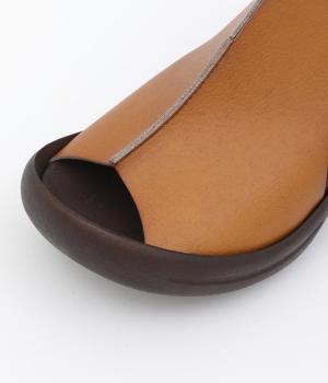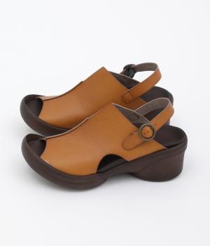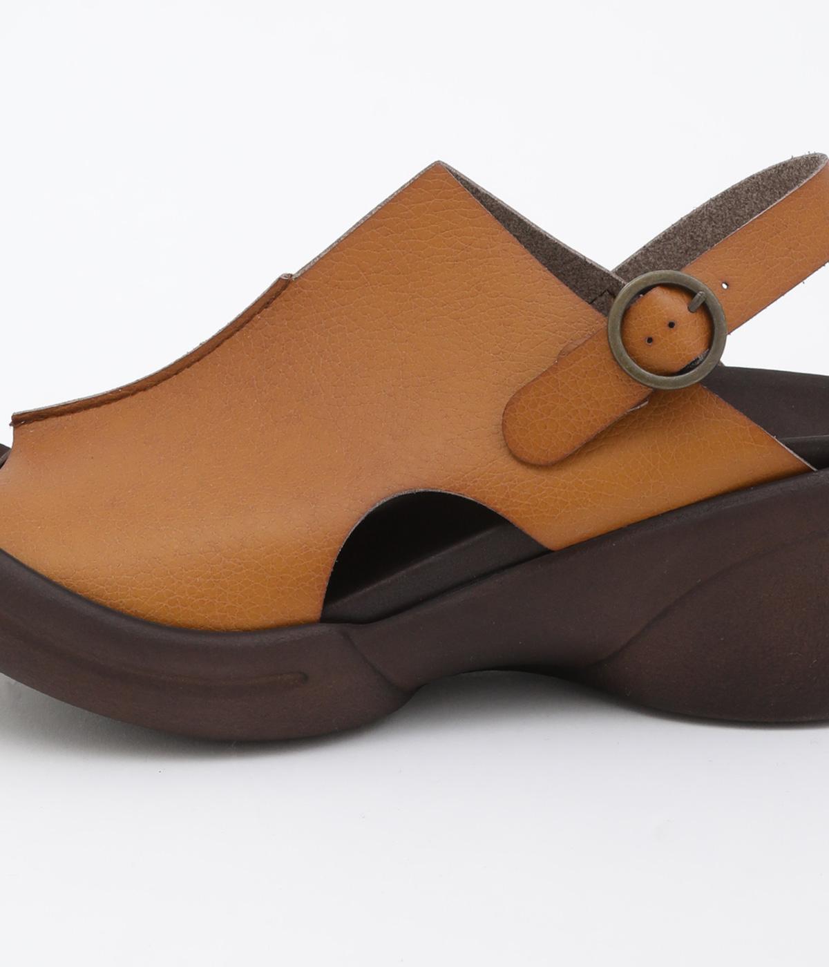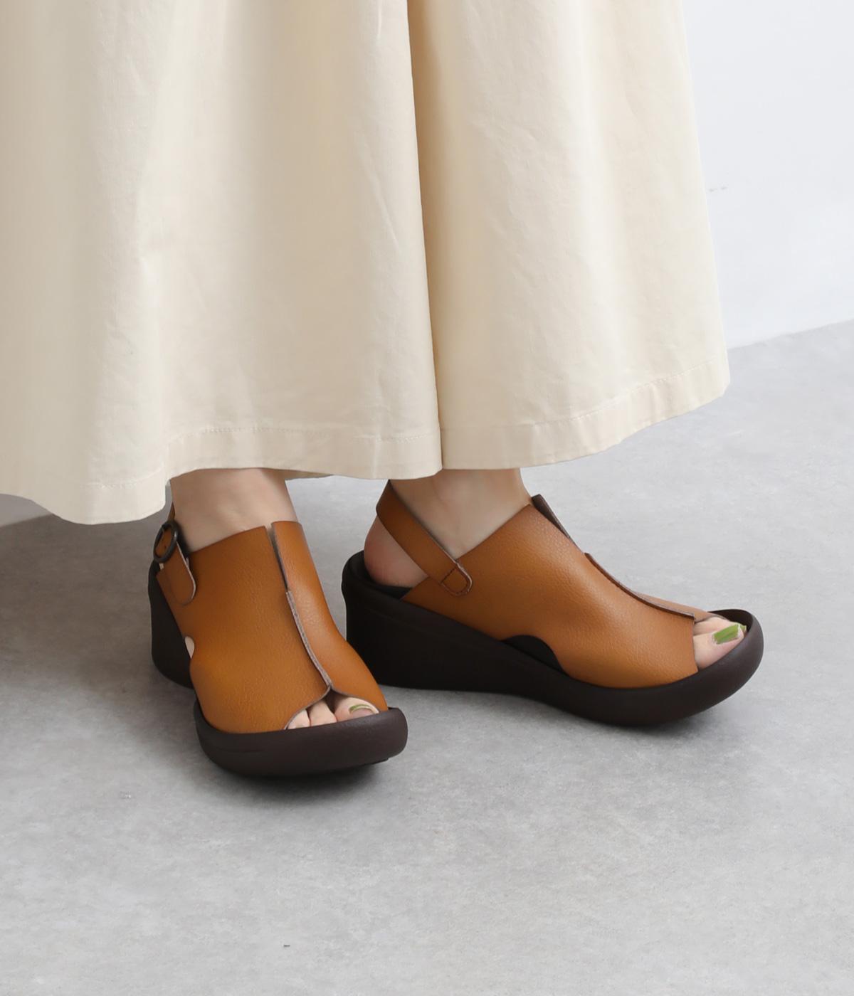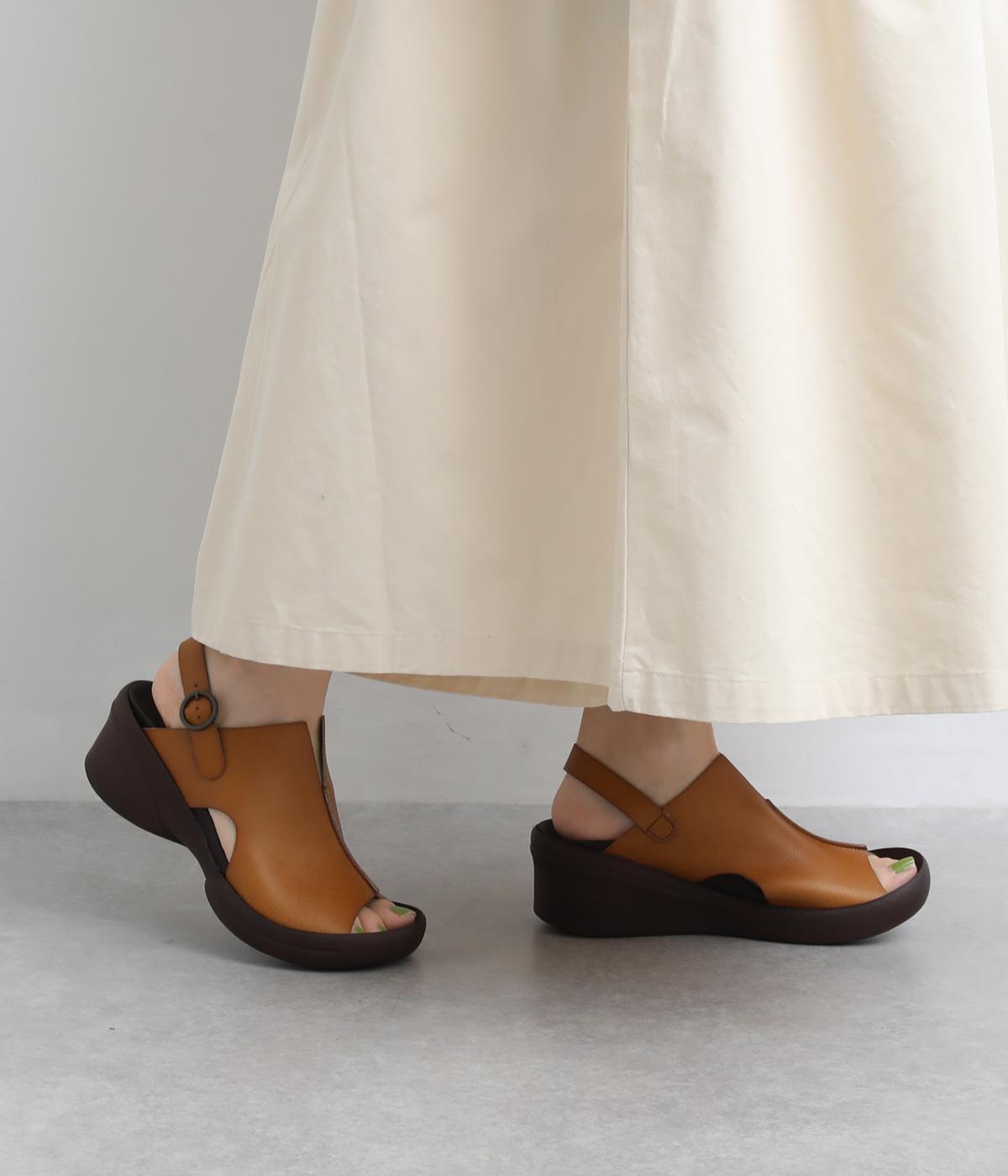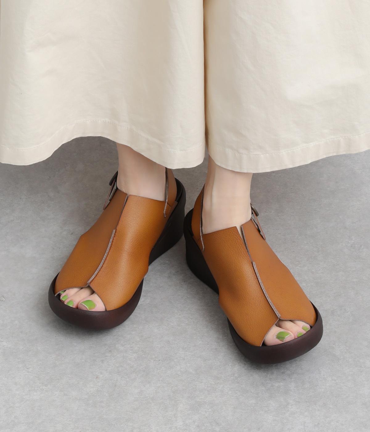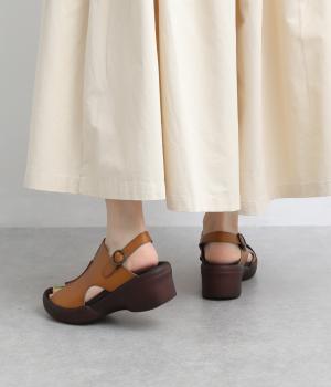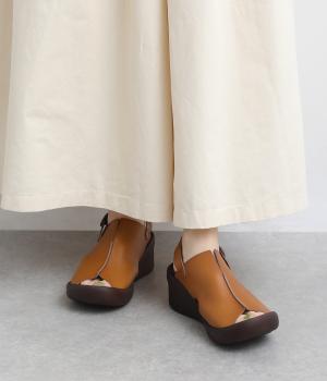 しっかりと甲をカバーして肌見せをおさえた品の良いデザイン。履き口はスリット入りでシャープさもあり、安定感のあるウェッジソールで全体をすっきり見せます。高低差をおさえたソールは理想的な「ローリング歩行」をサポート。