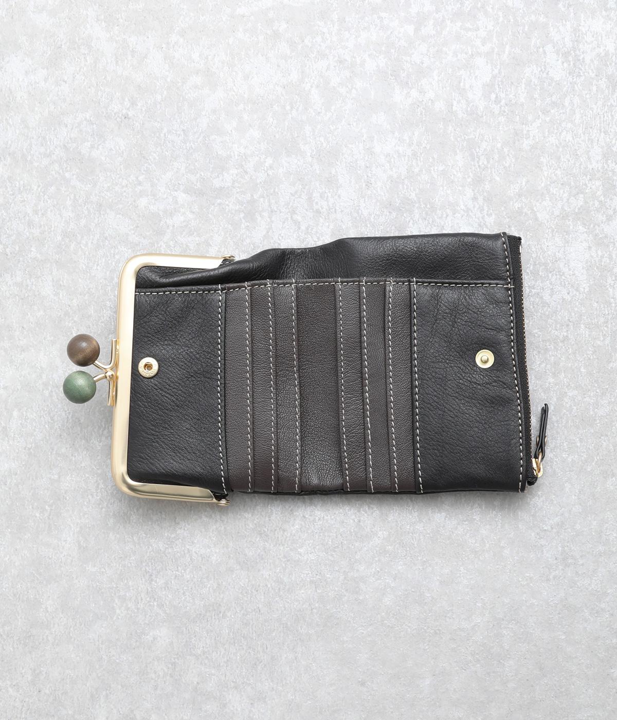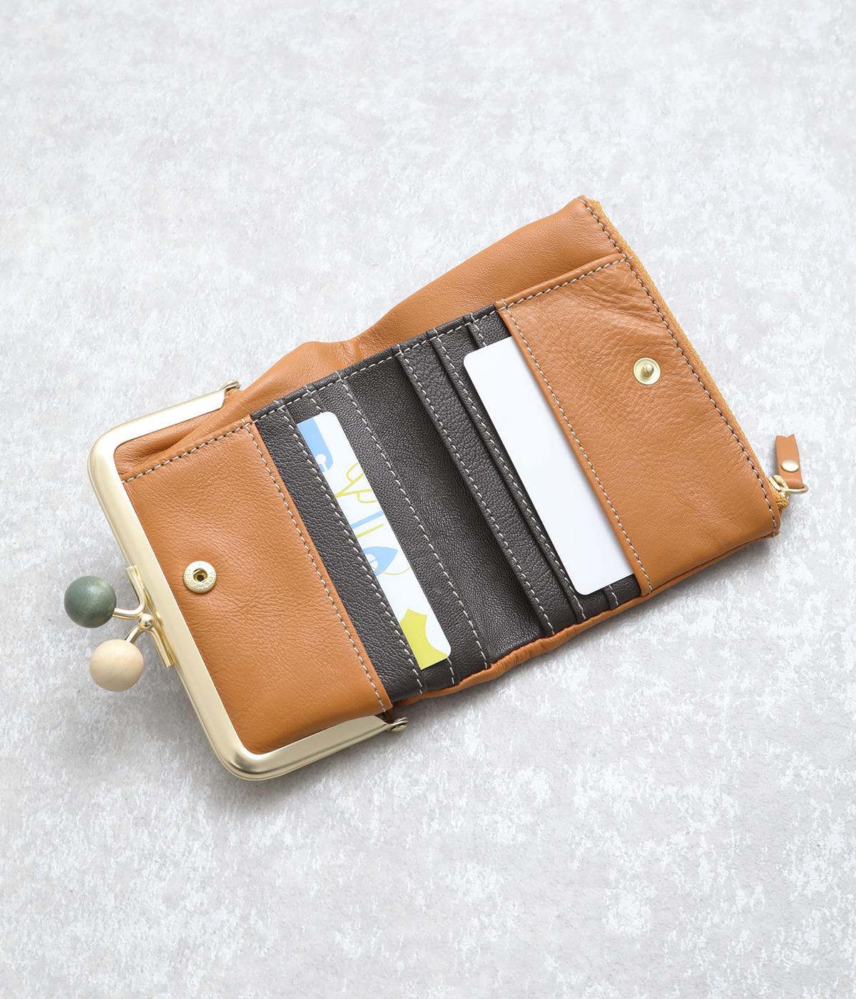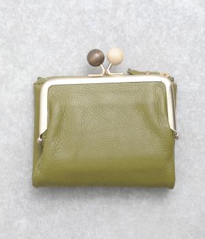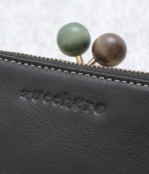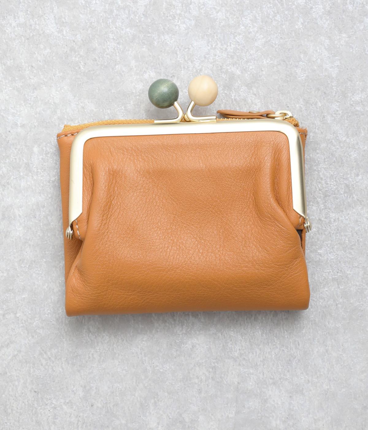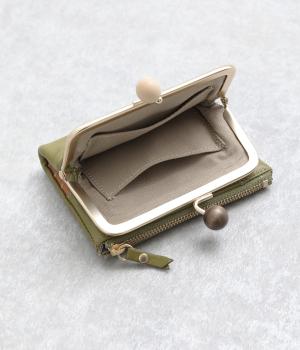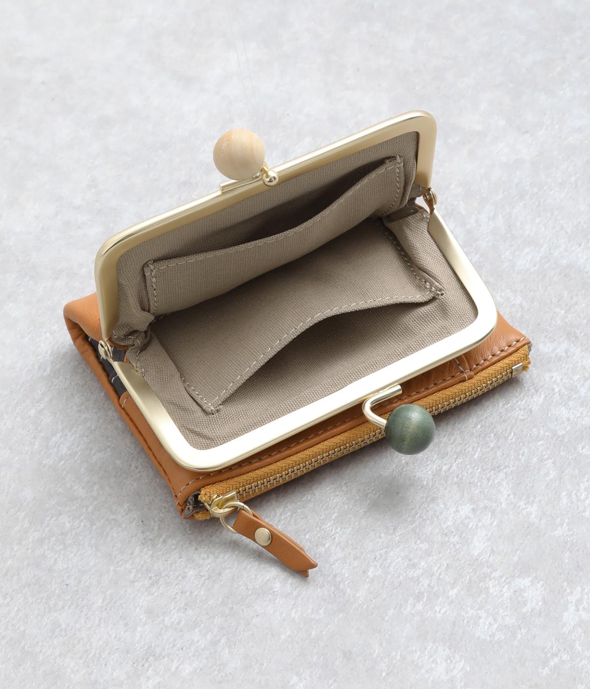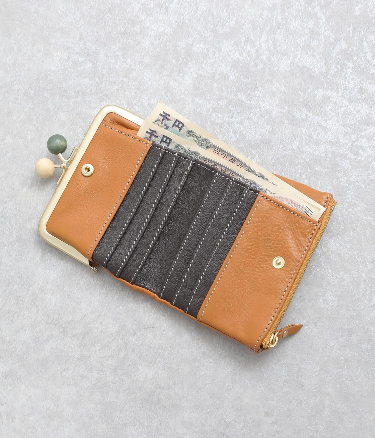 美しい木目の天然木玉がレトロなワンポイントになったがま口ウォレット。折りたたみ式なのでお札やカードも出し入れしやすく、ファスナーポケットには領収書や小物の収納にも便利。がま口内もポケットがついているので小銭を仕分けしても◎。