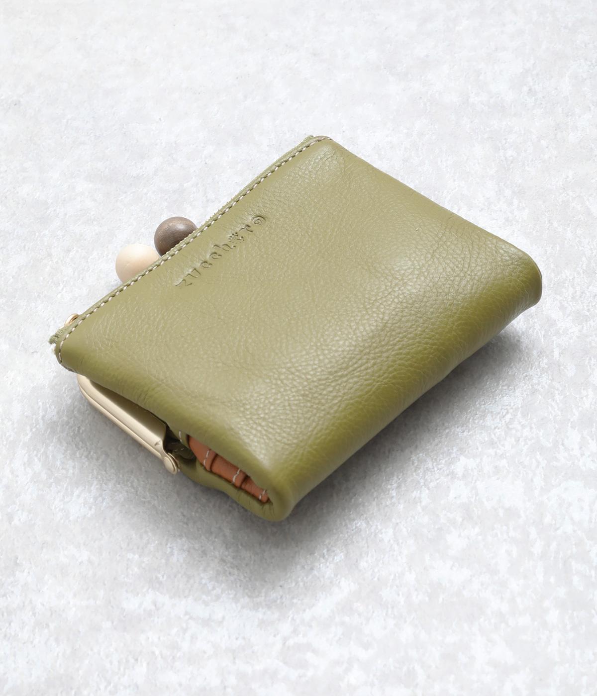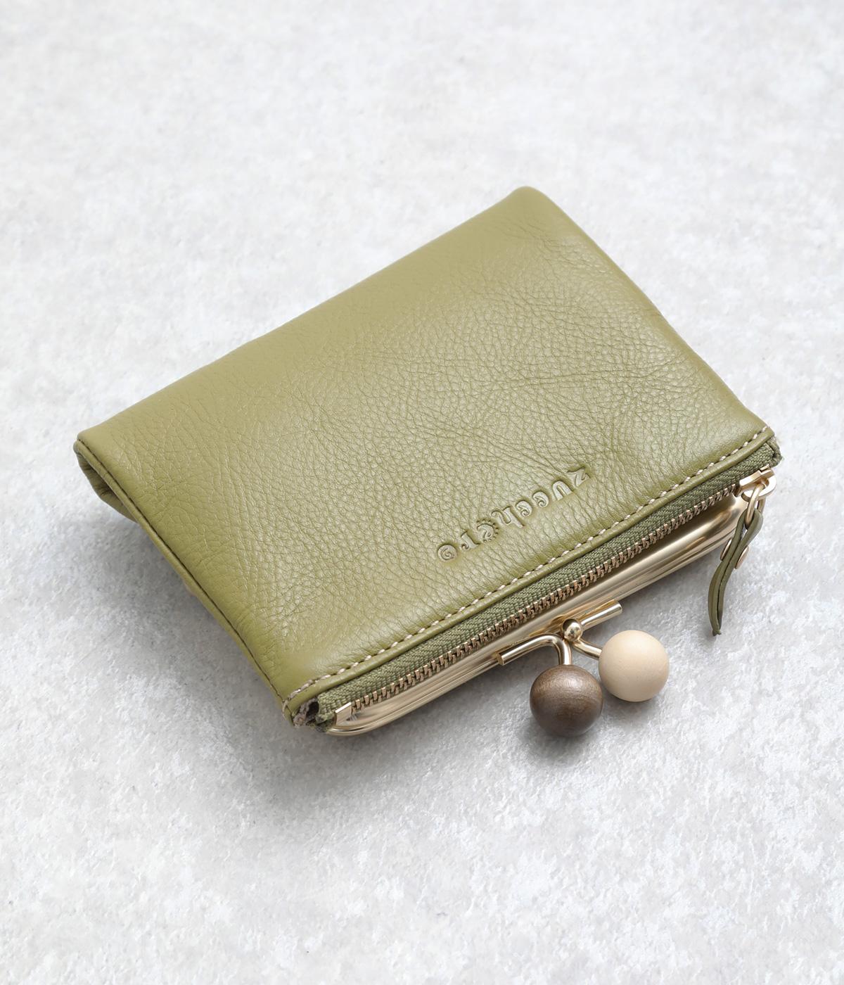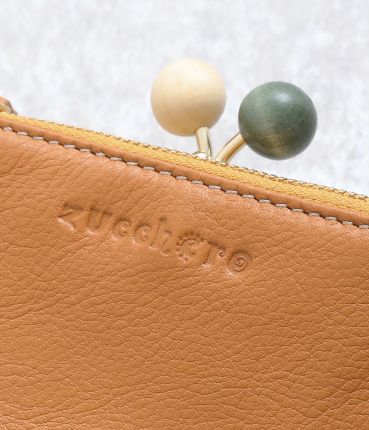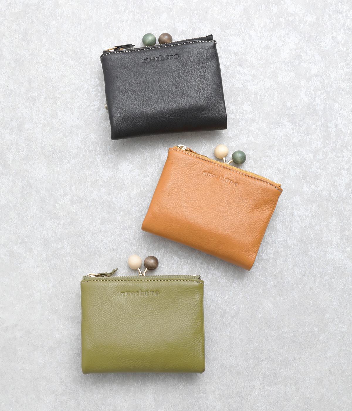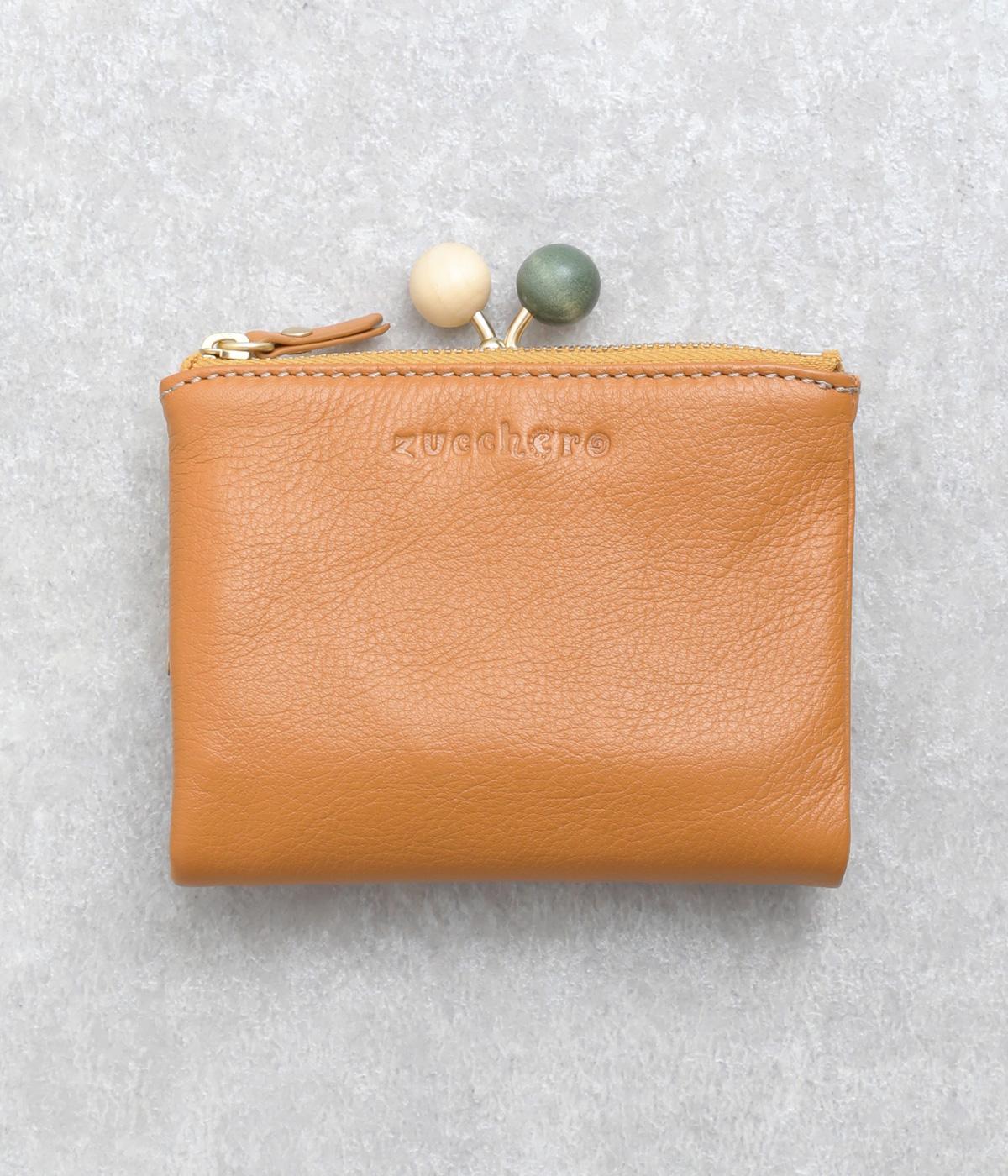 美しい木目の天然木玉がレトロなワンポイントになったがま口ウォレット。折りたたみ式なのでお札やカードも出し入れしやすく、ファスナーポケットには領収書や小物の収納にも便利。がま口内もポケットがついているので小銭を仕分けしても◎。