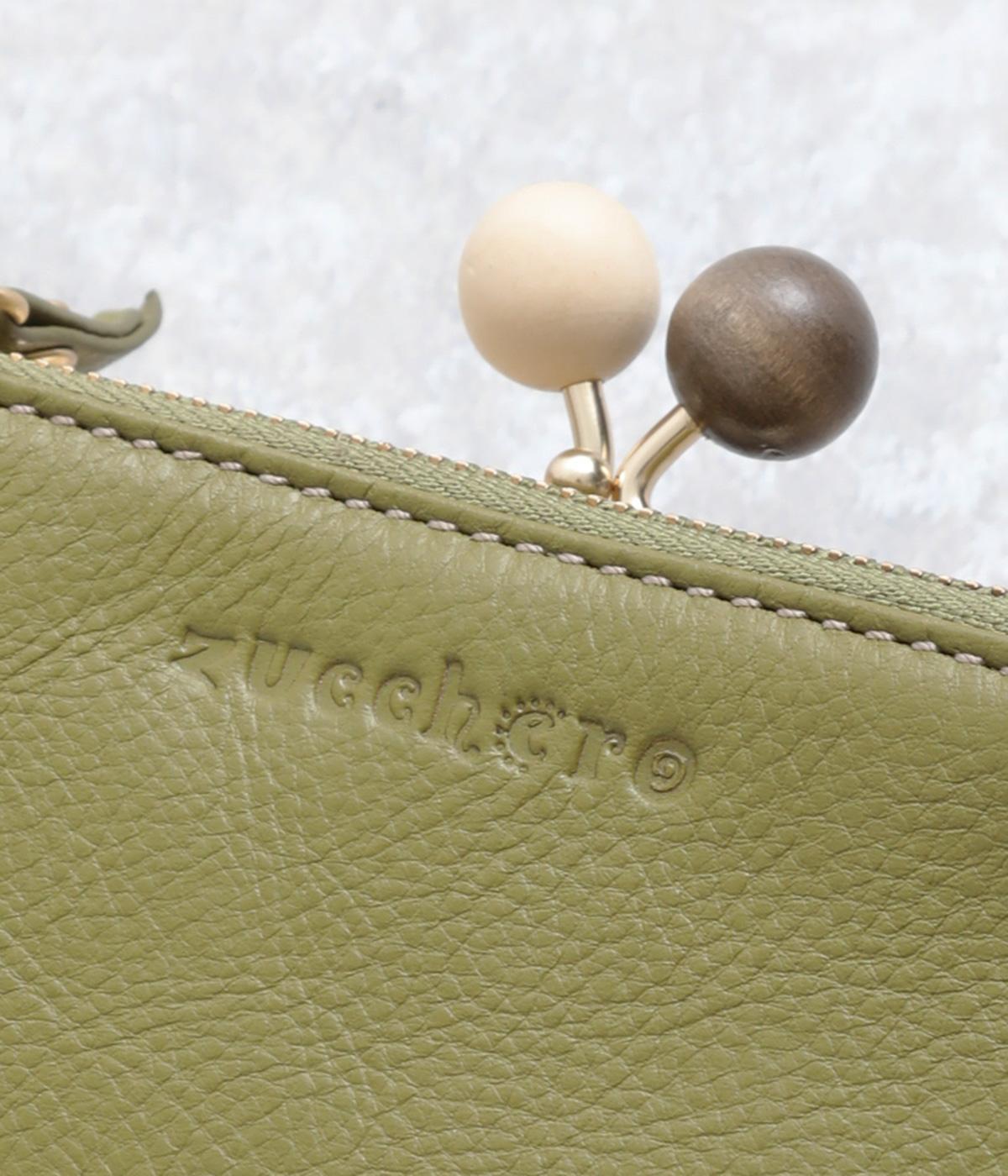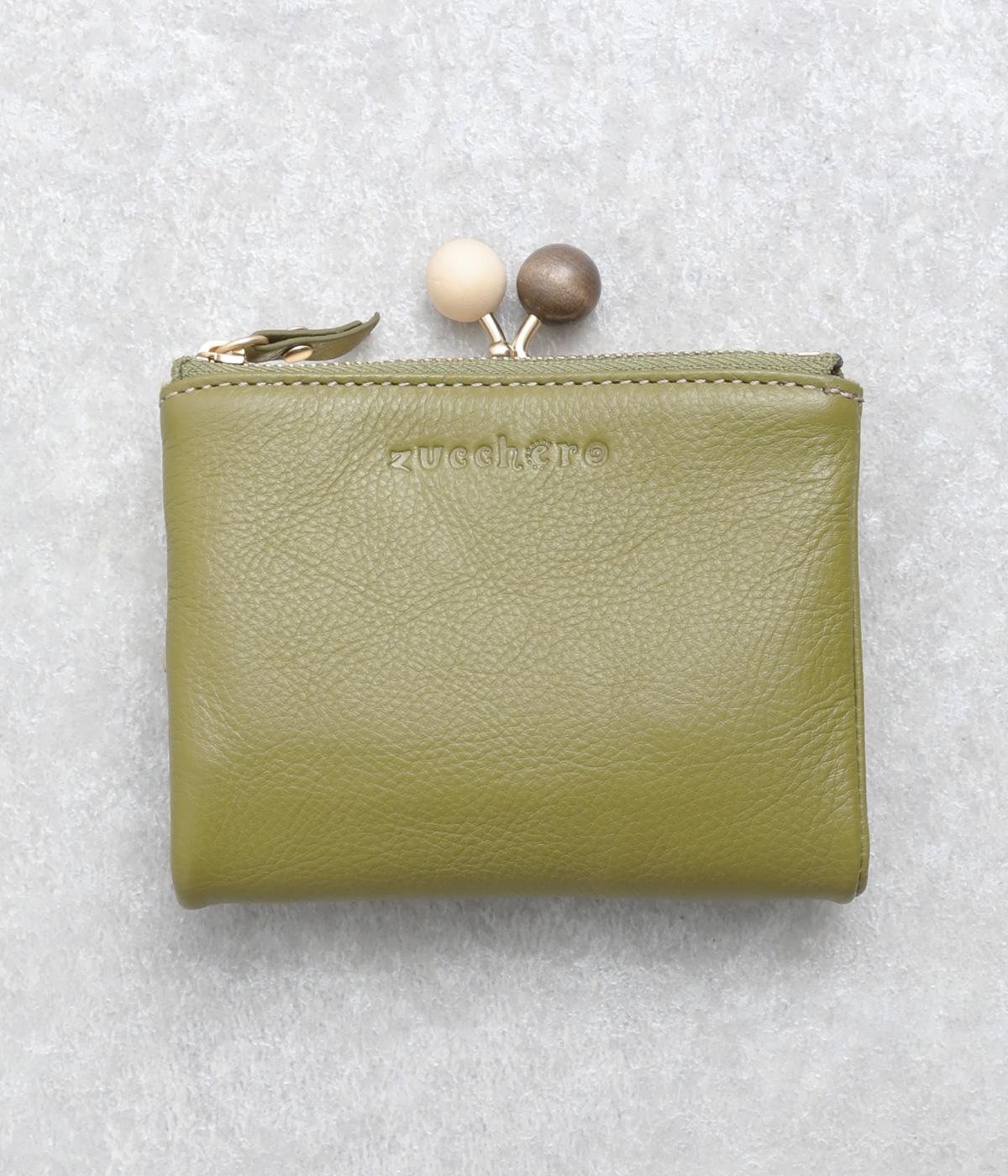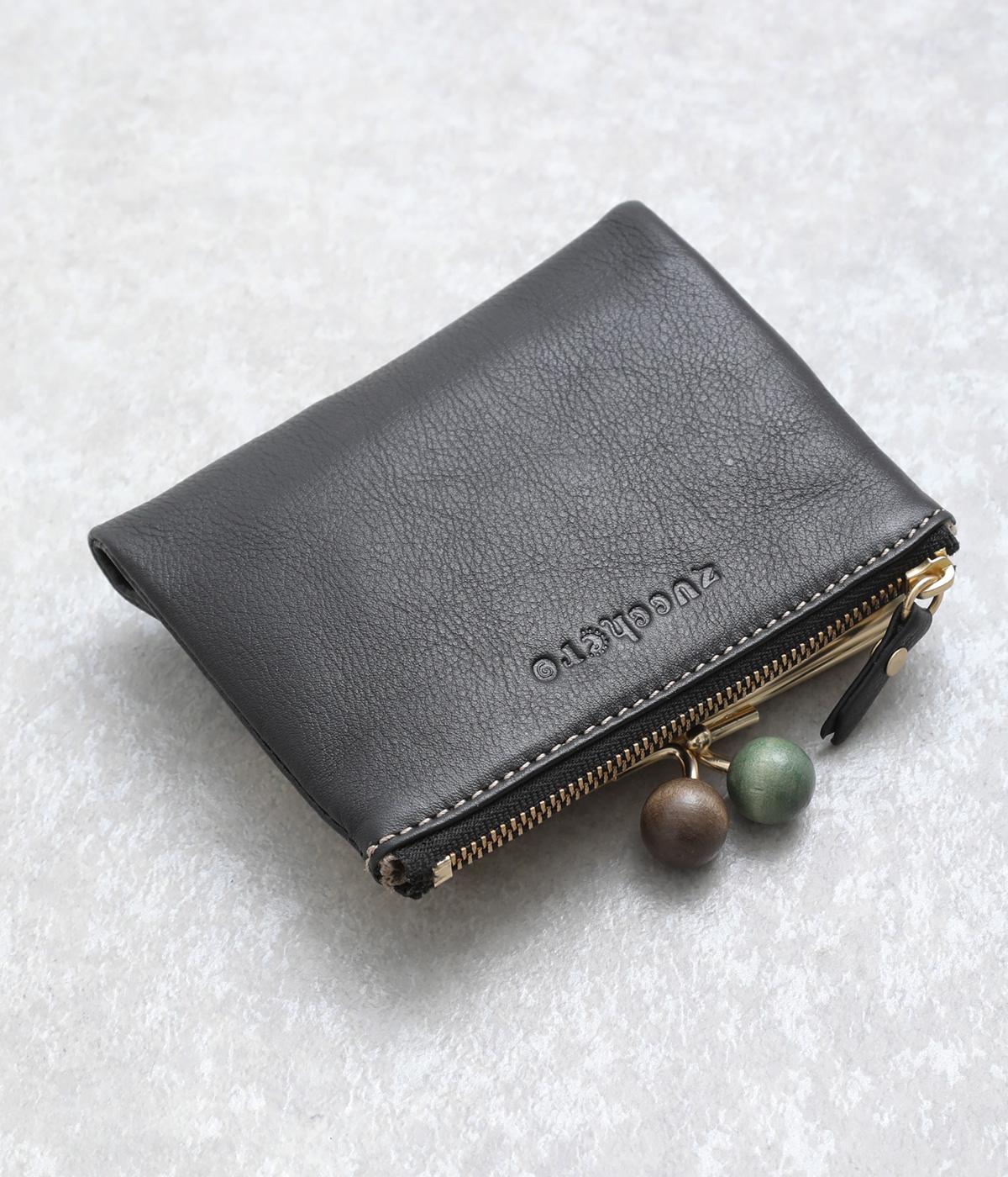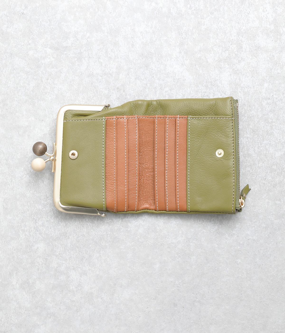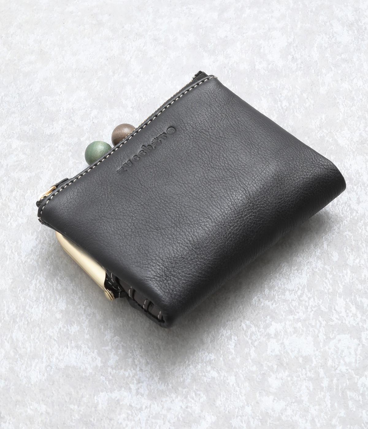 美しい木目の天然木玉がレトロなワンポイントになったがま口ウォレット。折りたたみ式なのでお札やカードも出し入れしやすく、ファスナーポケットには領収書や小物の収納にも便利。がま口内もポケットがついているので小銭を仕分けしても◎。