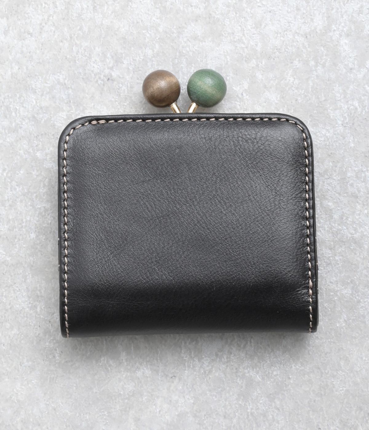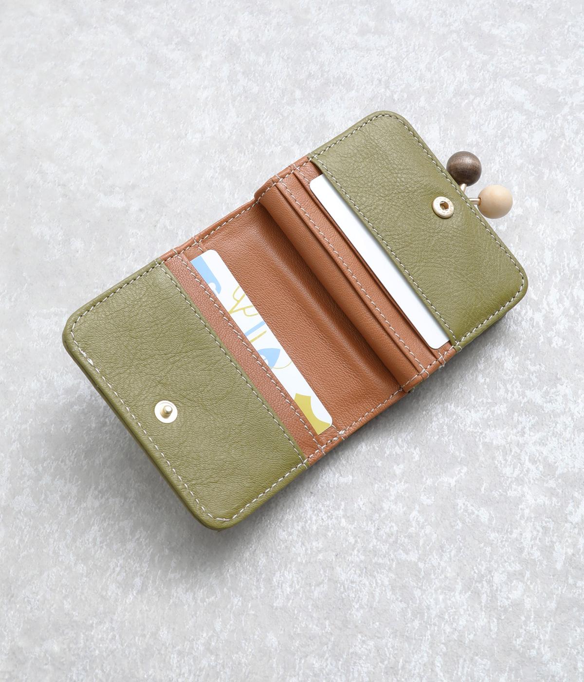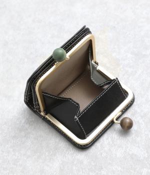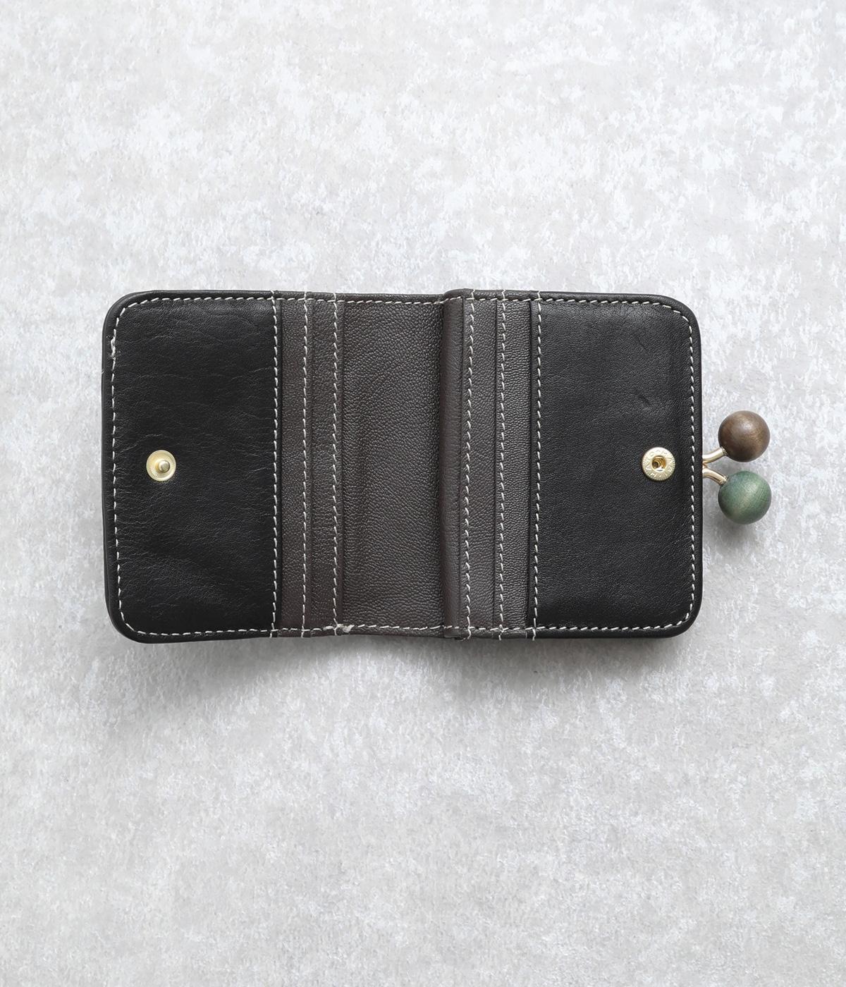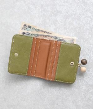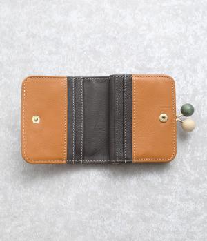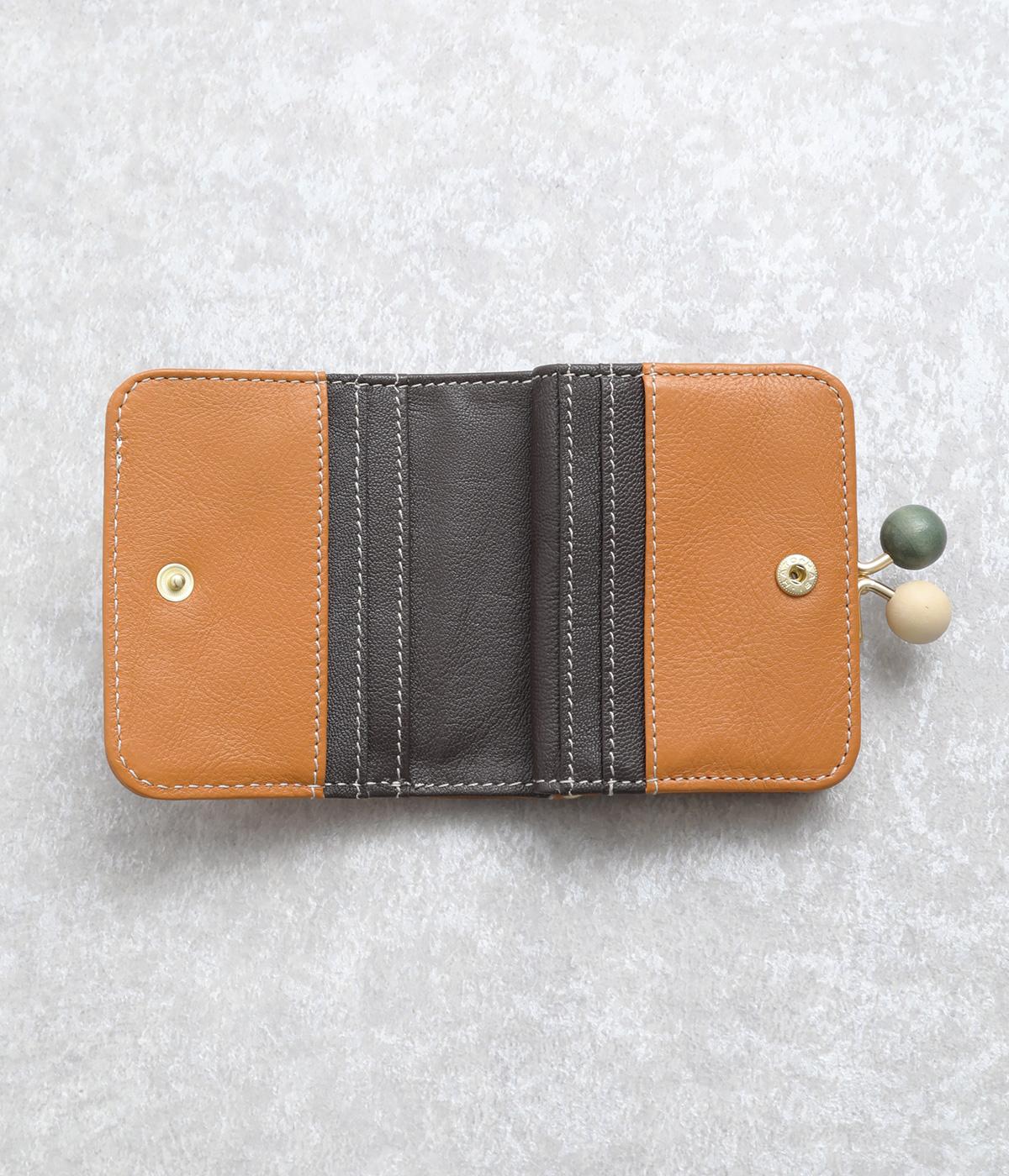 中身が一目瞭然なボックス型小銭入れが使いやすく、一度使うと手放せなくなる折りたたみ財布。がま口部分の木玉がレトロなワンポイントに。バッグに収まりのいいサイズ感ながら、カードもお札もたっぷり入ります。内側のバイカラーも◎。