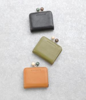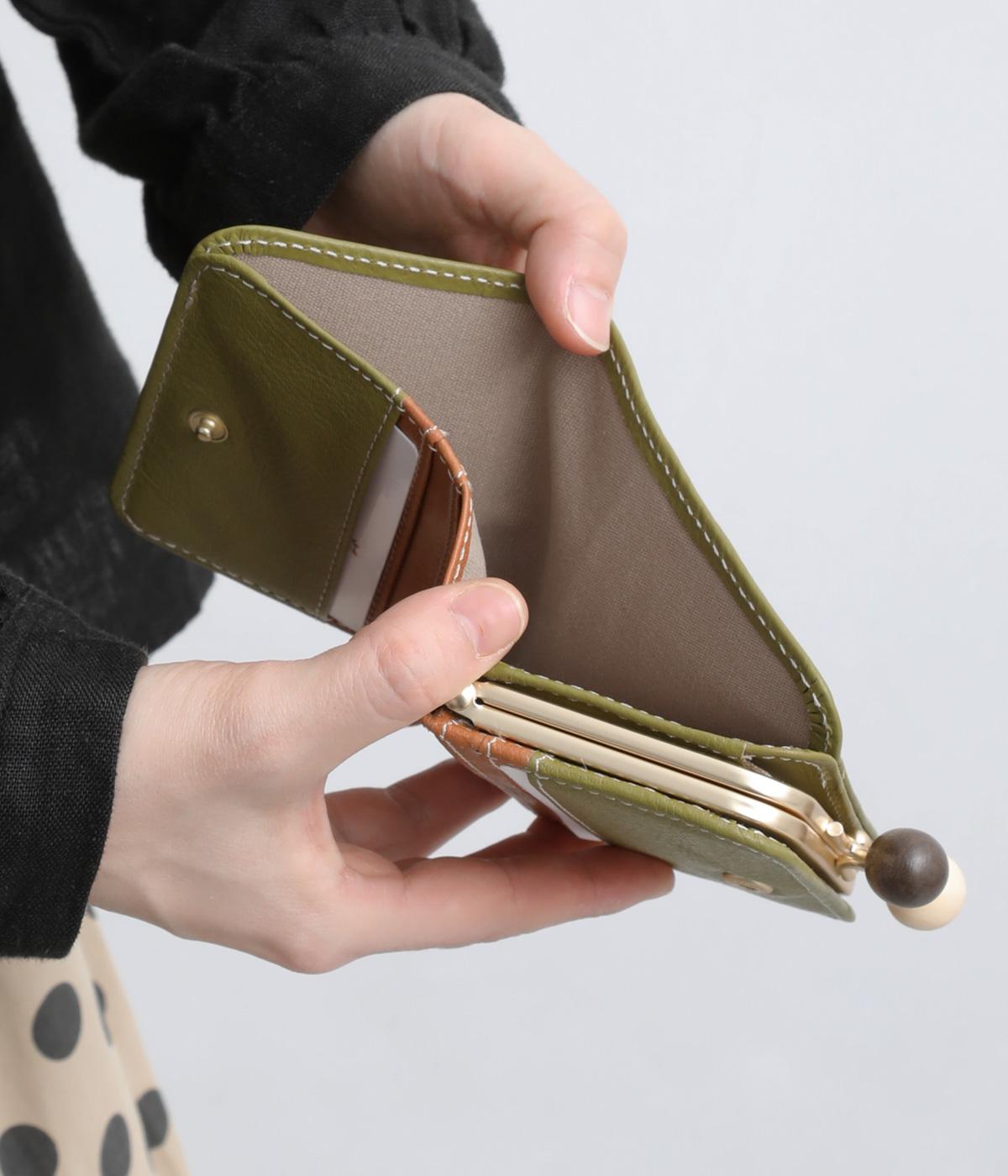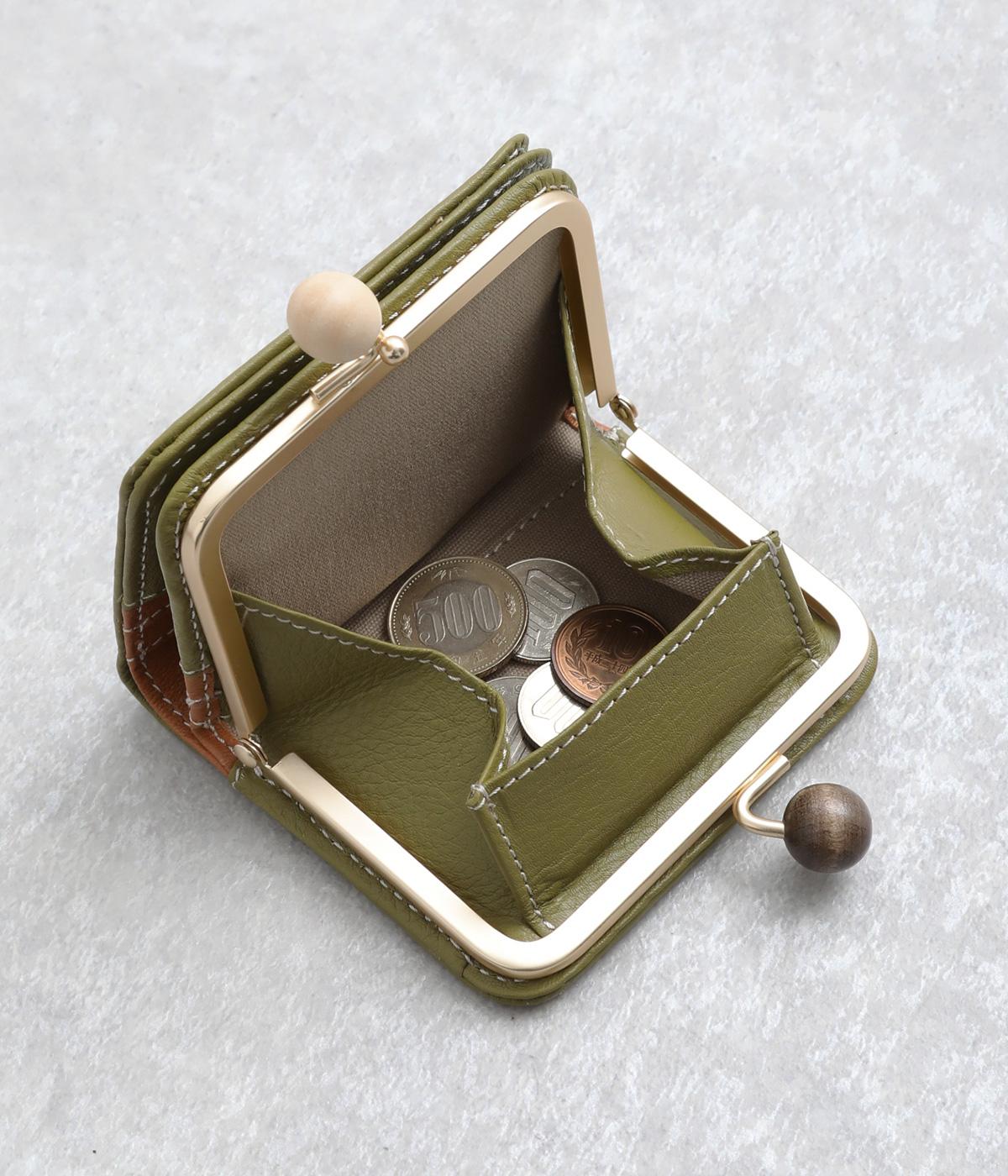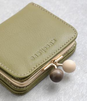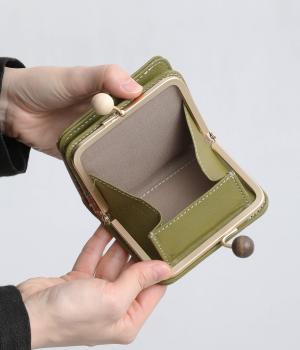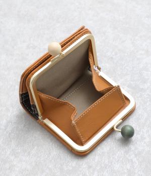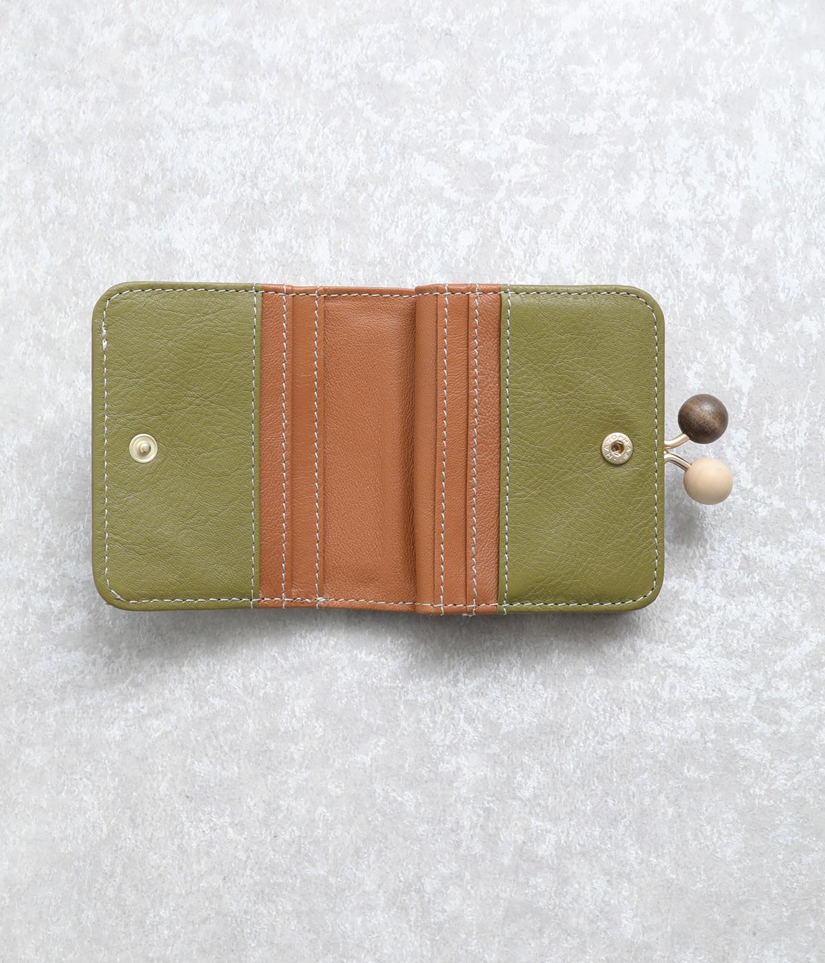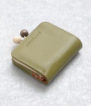 中身が一目瞭然なボックス型小銭入れが使いやすく、一度使うと手放せなくなる折りたたみ財布。がま口部分の木玉がレトロなワンポイントに。バッグに収まりのいいサイズ感ながら、カードもお札もたっぷり入ります。内側のバイカラーも◎。