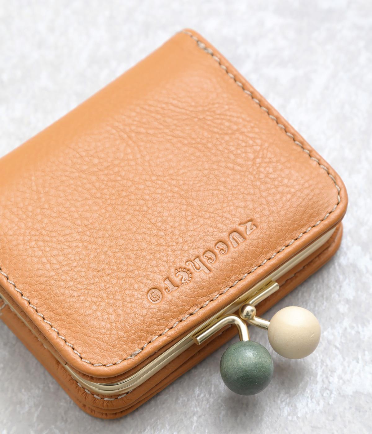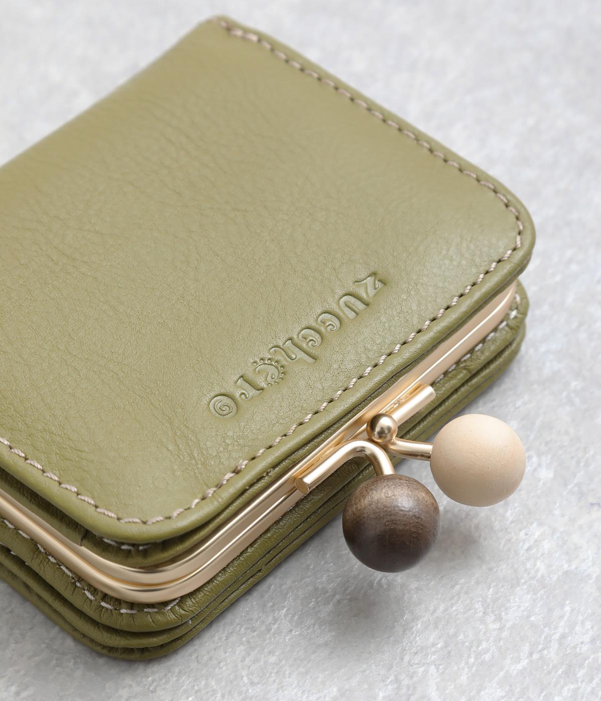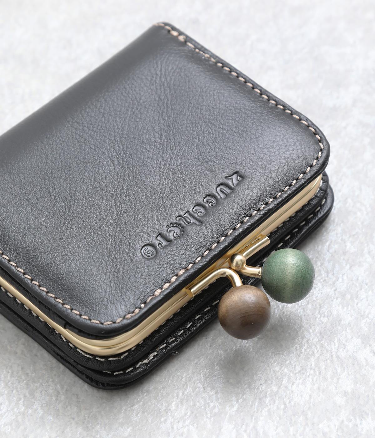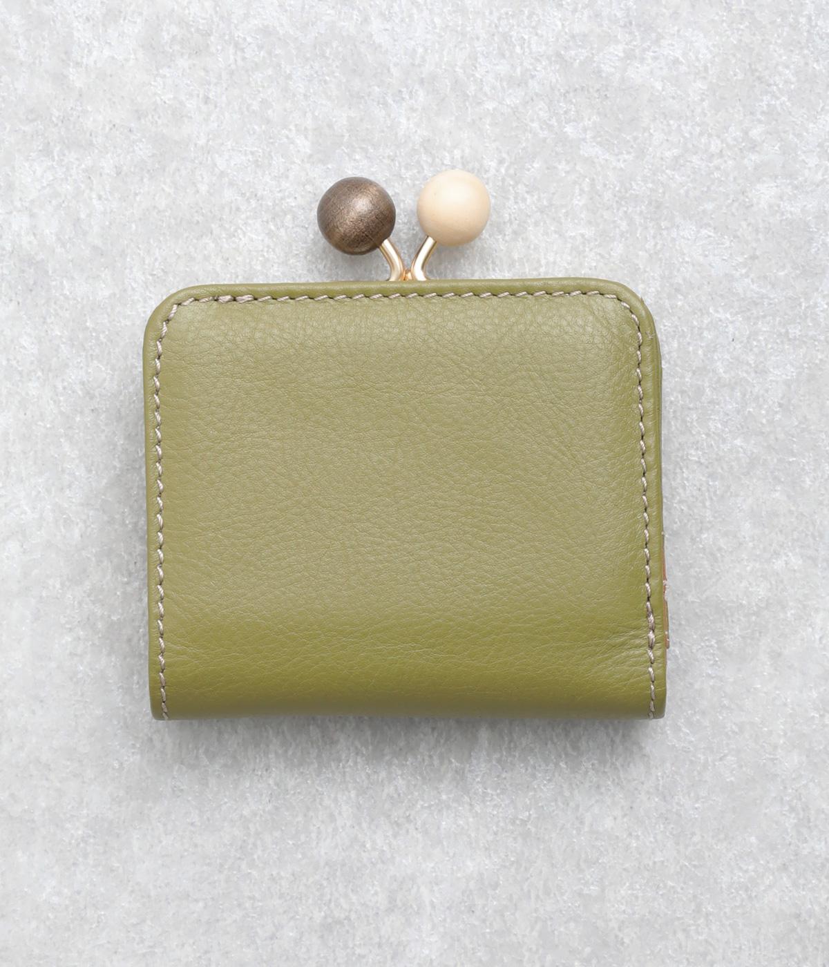中身が一目瞭然なボックス型小銭入れが使いやすく、一度使うと手放せなくなる折りたたみ財布。がま口部分の木玉がレトロなワンポイントに。バッグに収まりのいいサイズ感ながら、カードもお札もたっぷり入ります。内側のバイカラーも◎。