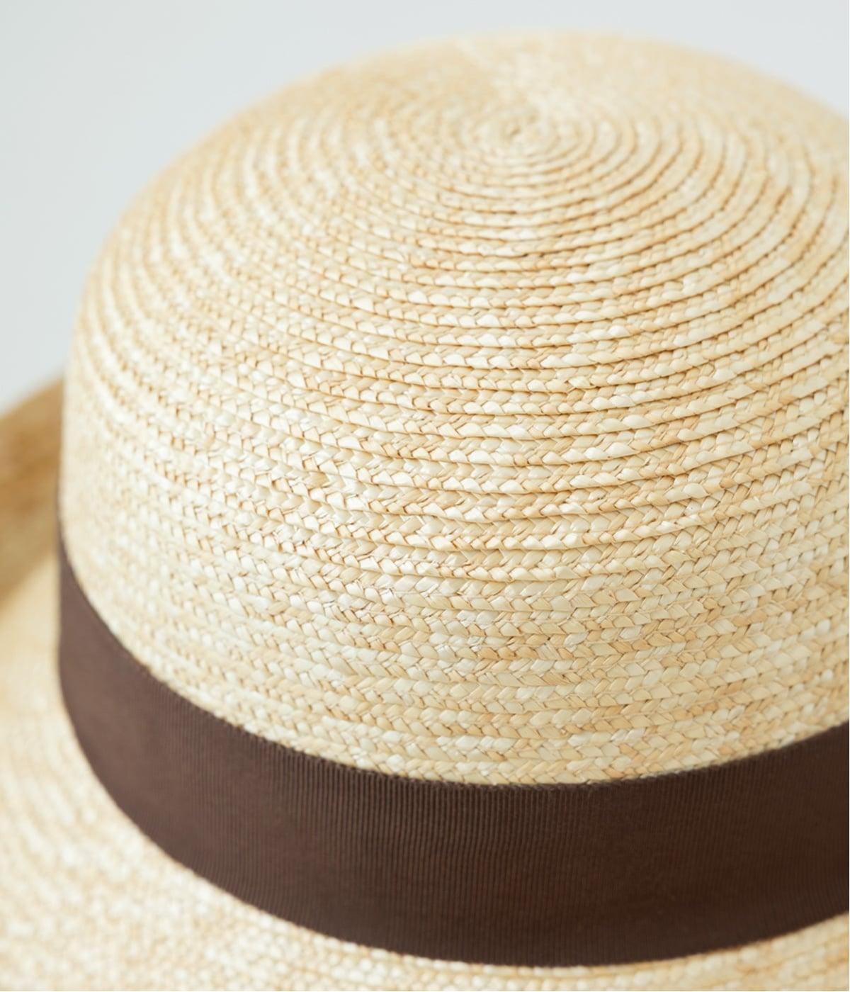 天然の麦わらを丁寧に編み立てた、通気性のよい涼しげなかぶり心地。 広めのつば先をやさしく上げたアップブリムが、顔まわりをぱっと明るく見せ、コーデ全体も軽快な印象に。
