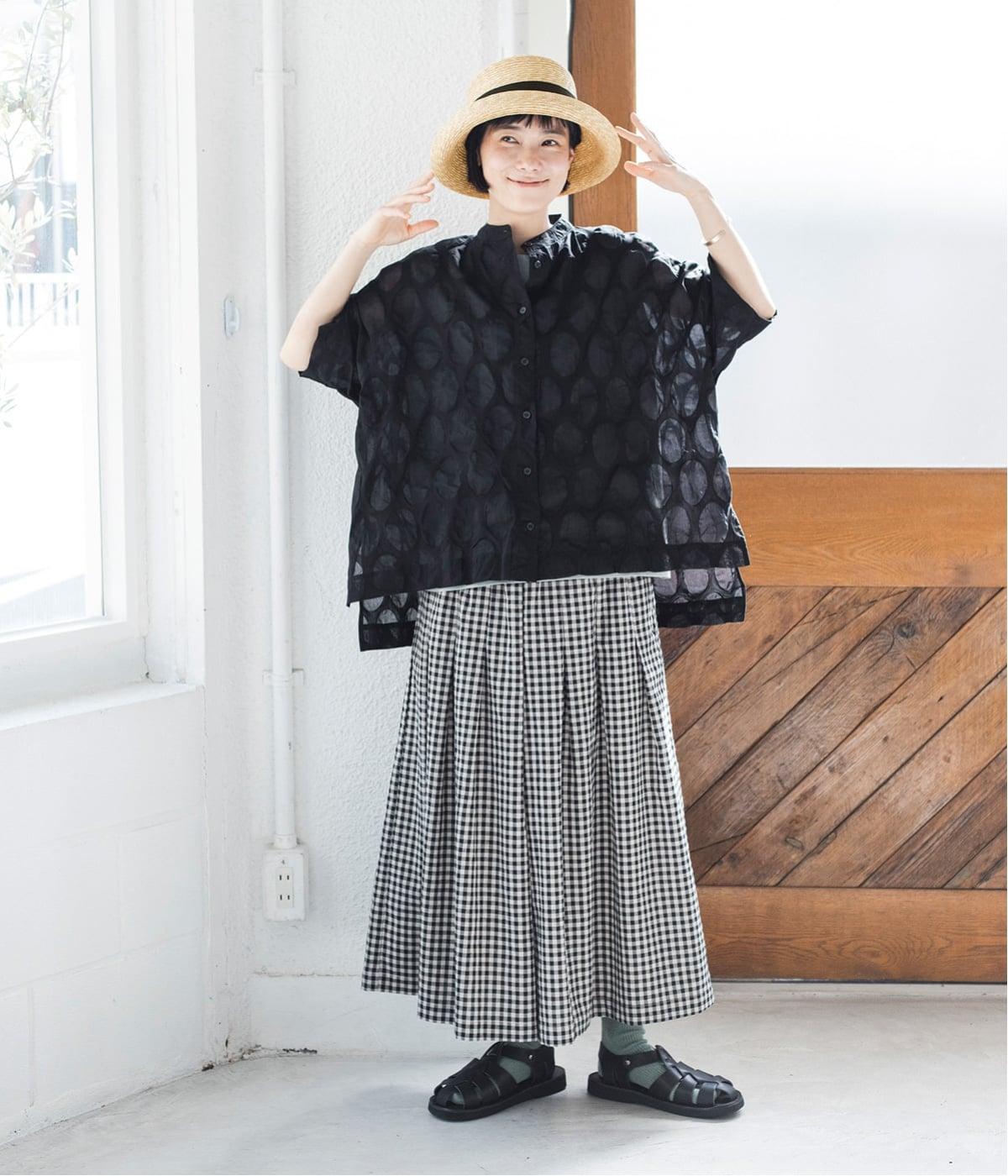 ドット×ギンガムの組み合わせを、モノトーンでまとめた軽やかなスタイル。 カラーソックスを効かせ、ほんのりこなれたバランスに仕上げました。