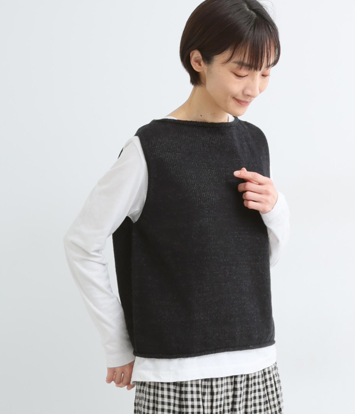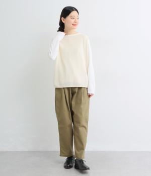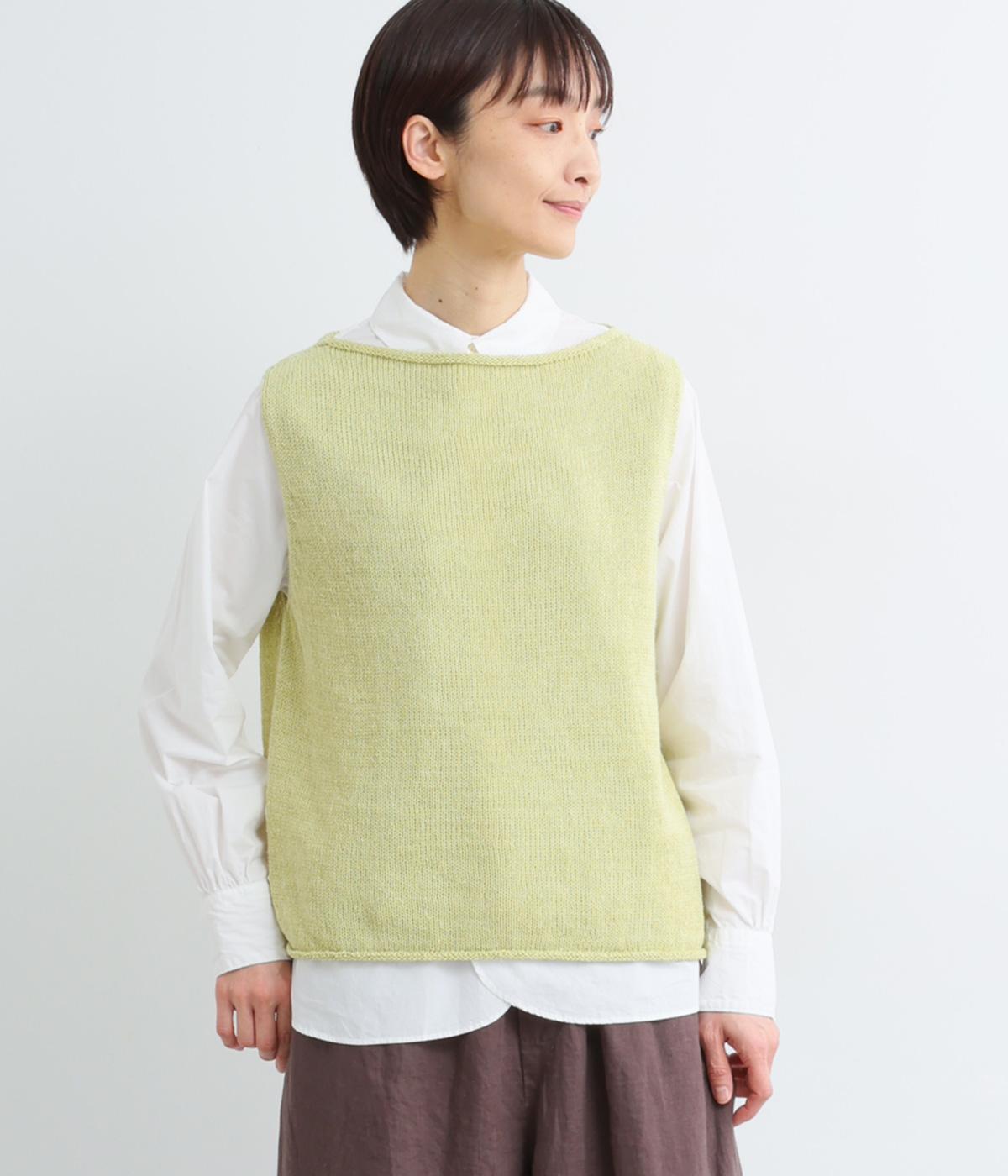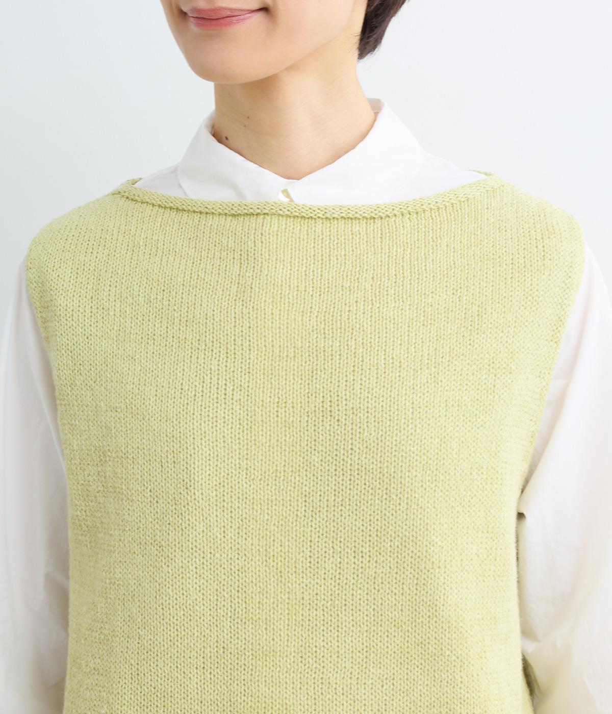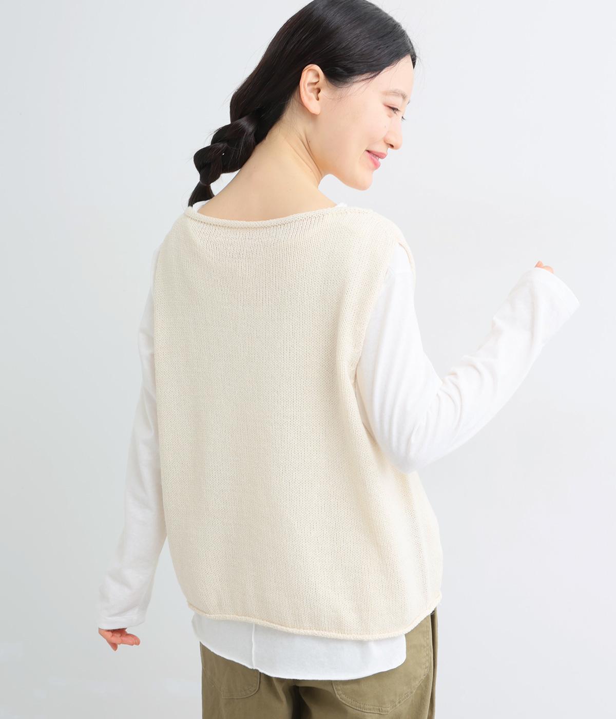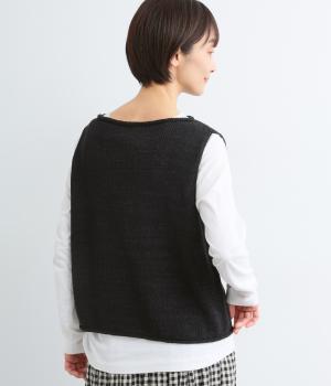 ヘンプのドライな質感がナチュラルな雰囲気を運びます。ローゲージで、ざっくりと軽やか。ごわつき感の少ないしなやかな肌ざわりで、心地よく着られます。