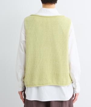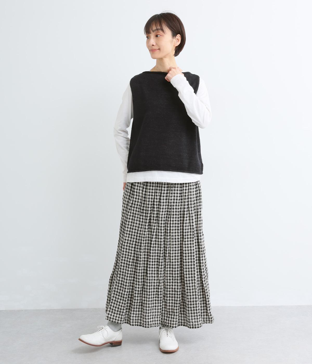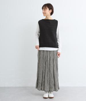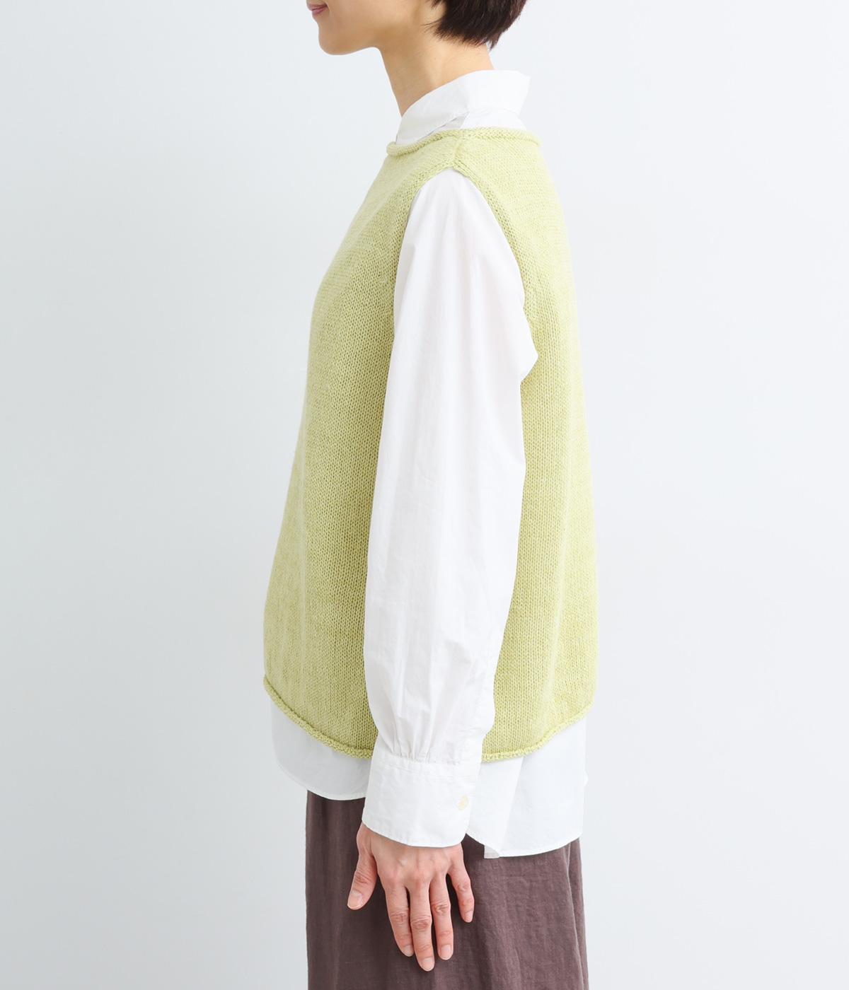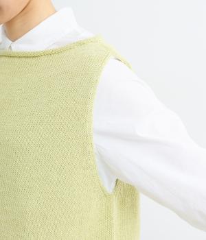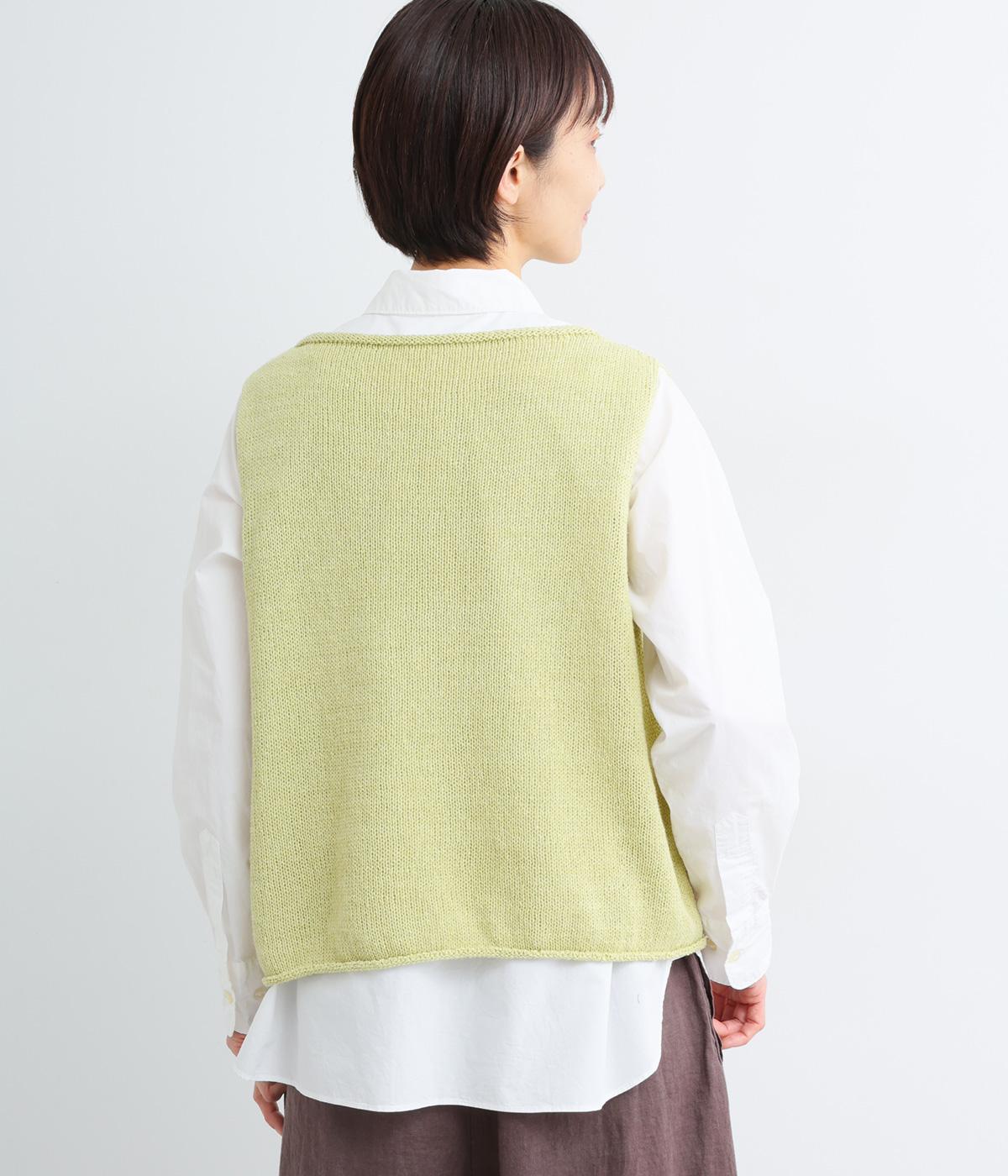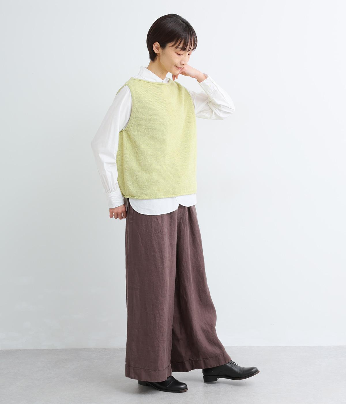 ヘンプのドライな質感がナチュラルな雰囲気を運びます。ローゲージで、ざっくりと軽やか。ごわつき感の少ないしなやかな肌ざわりで、心地よく着られます。