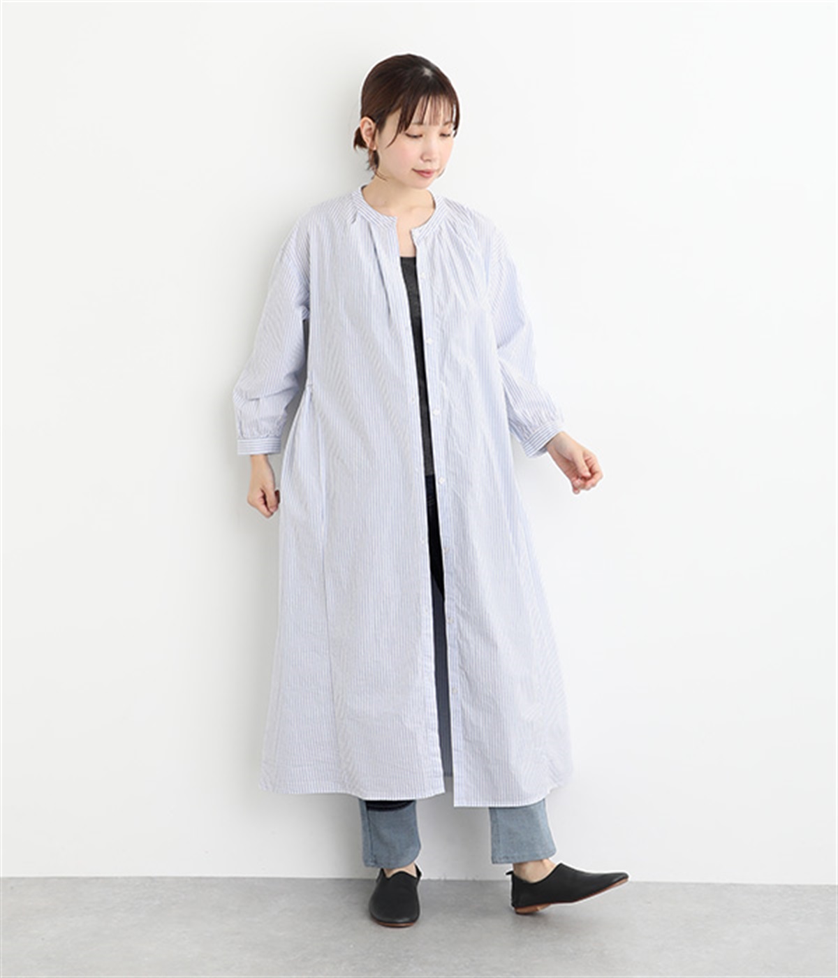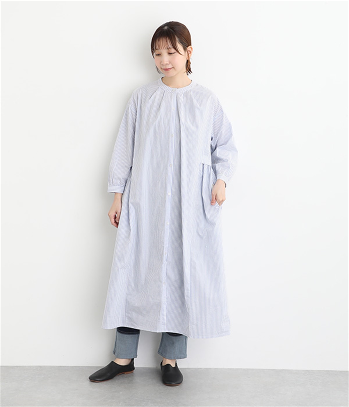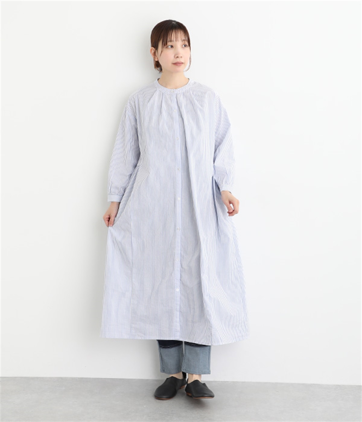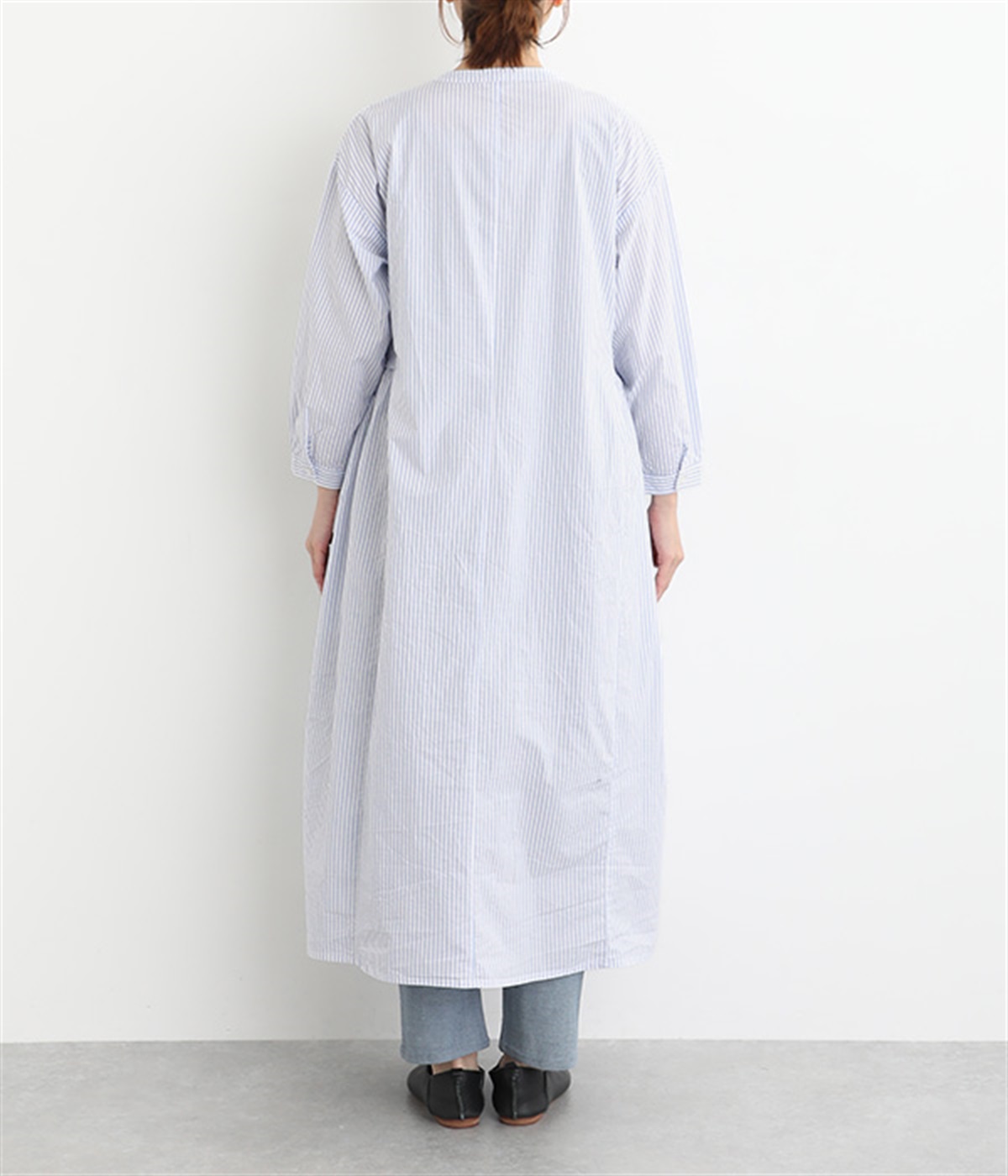 お祝いモチーフ付きシャツワンピース(オフ×ブルーストライプ-M)