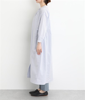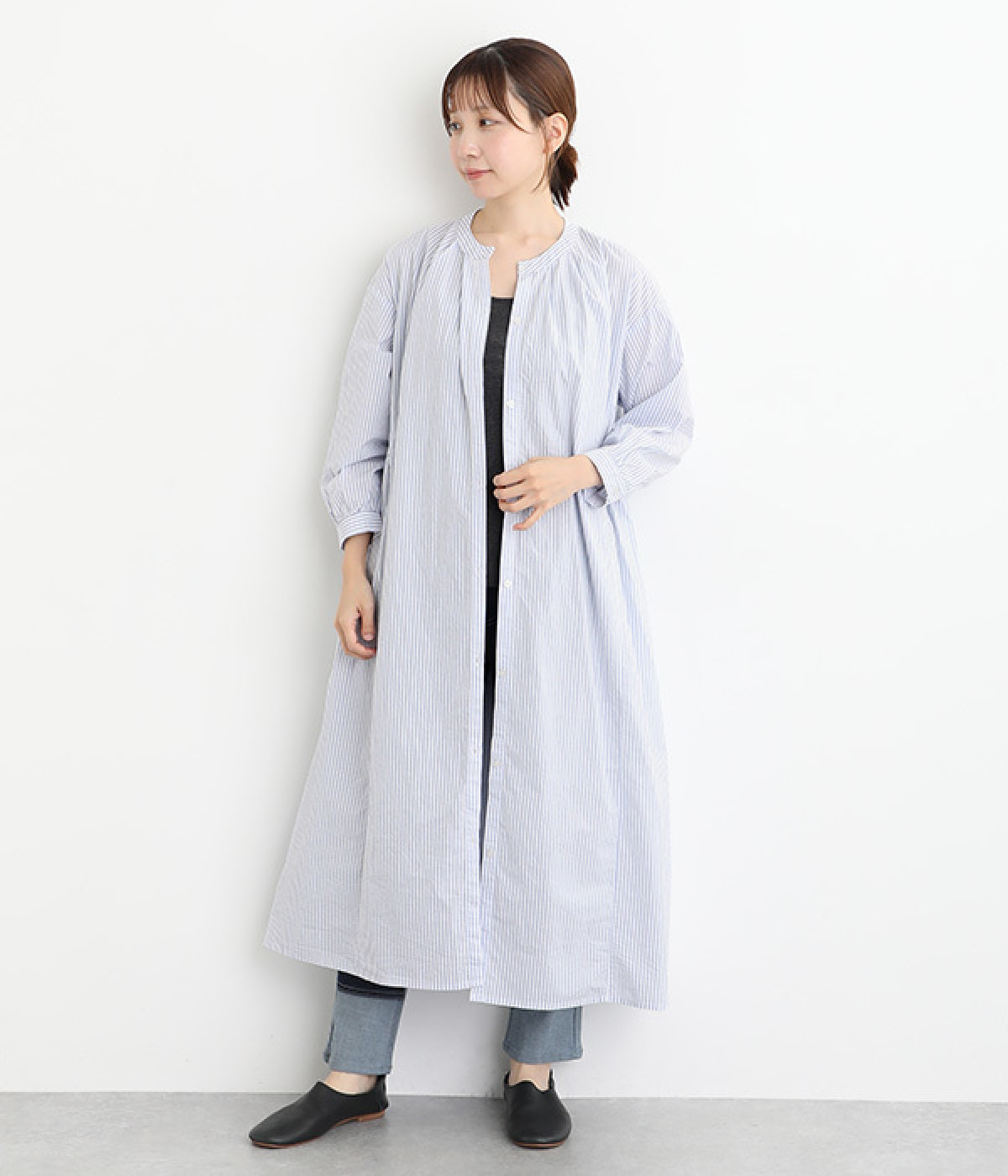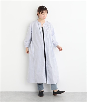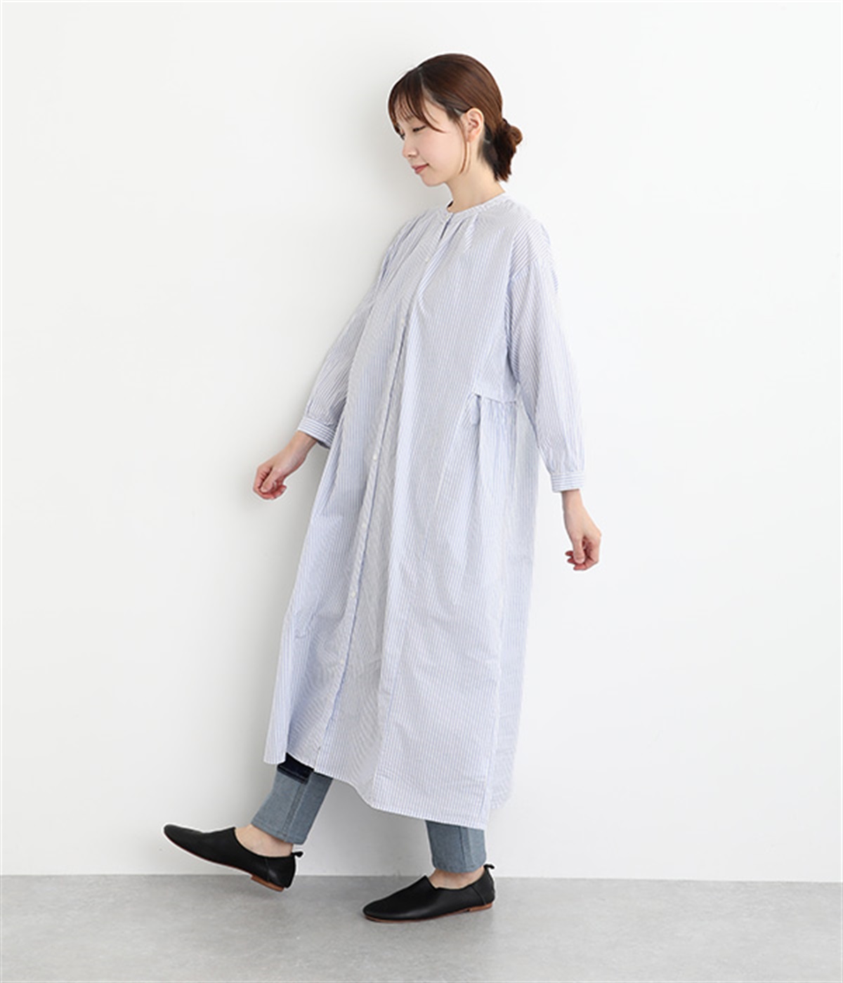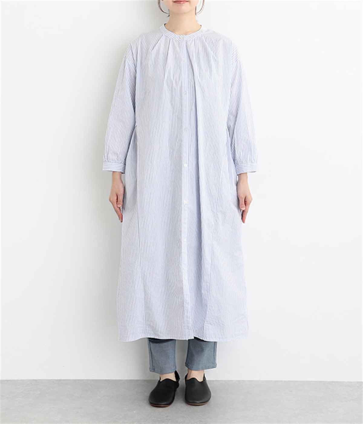 お祝いモチーフ付きシャツワンピース(オフ×ブルーストライプ-M)
