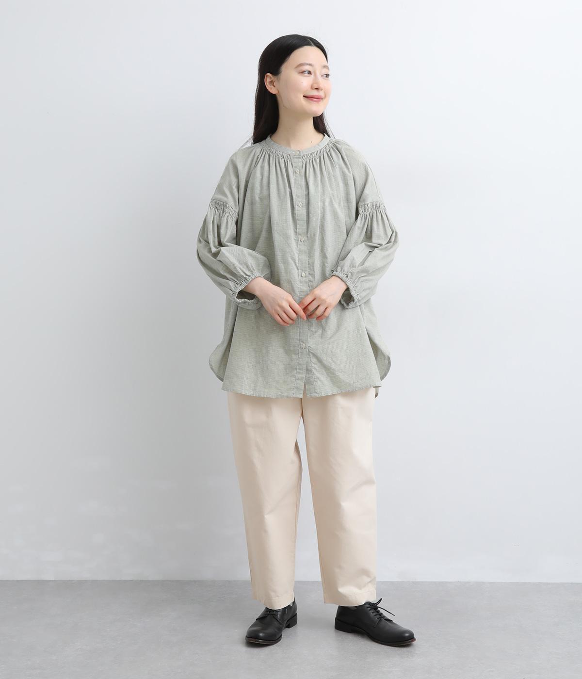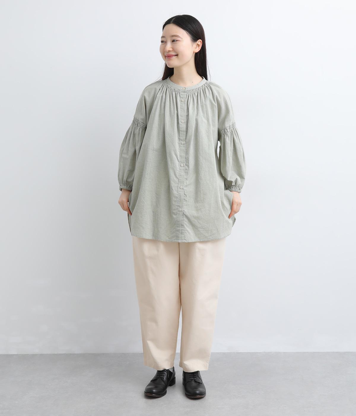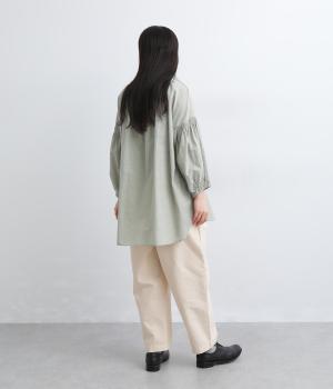 麻のような質感が特徴的なコットンオックス生地を採用。ソフトな肌あたりにふくらみのある質感が心地よく、ナチュラルな風合いが魅力です。