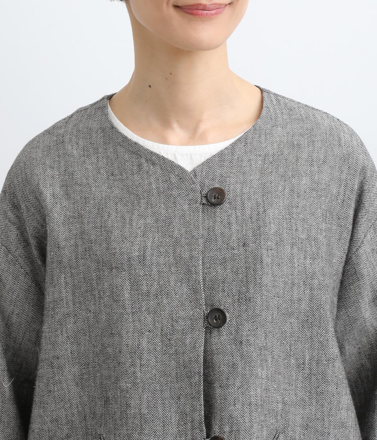 コットンにリネンをミックスさせてナチュラル感を高めました。V字が連なるジグザグ模様が特徴的なヘリンボーンのクラシカルな雰囲気が魅力。