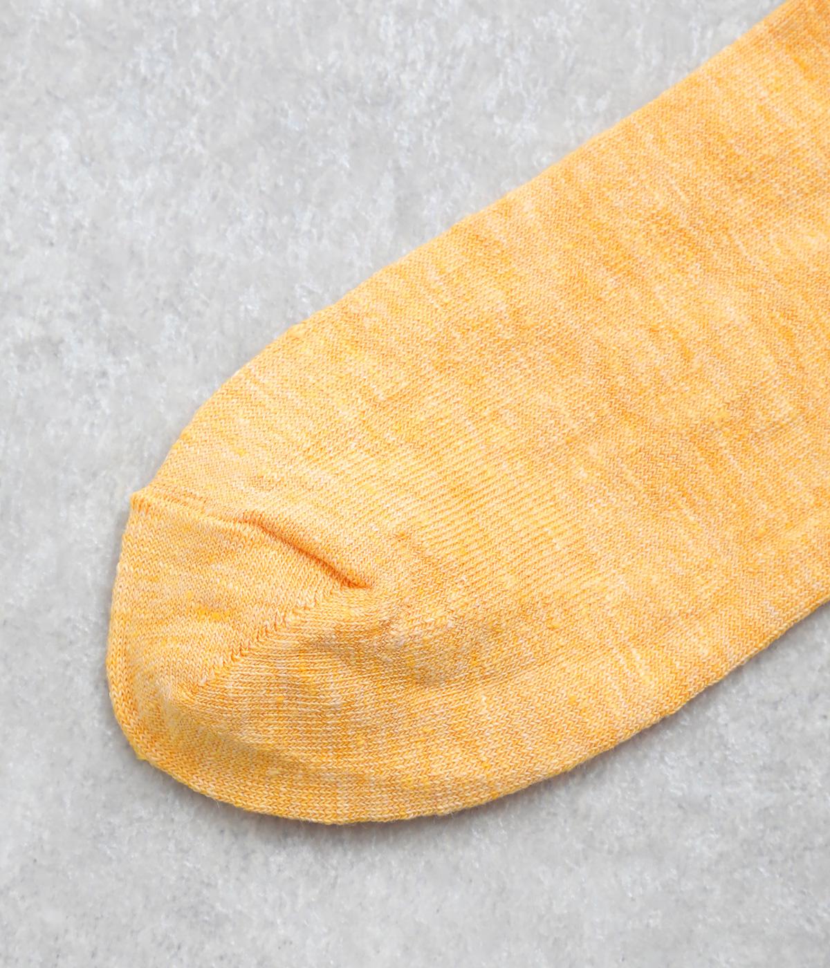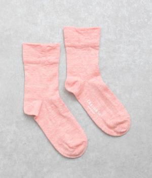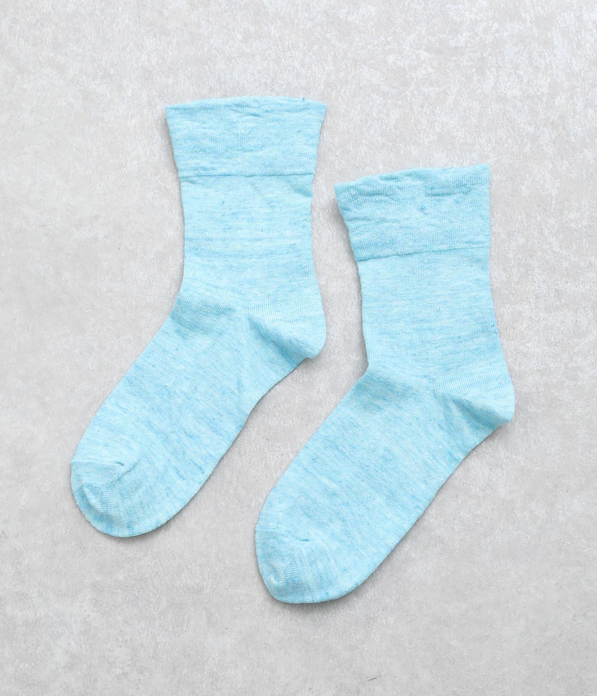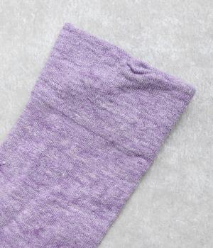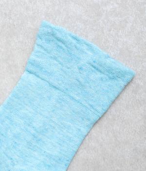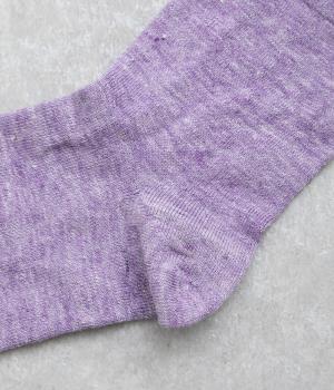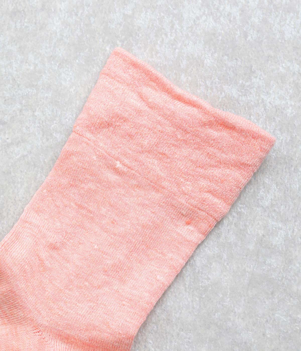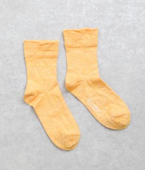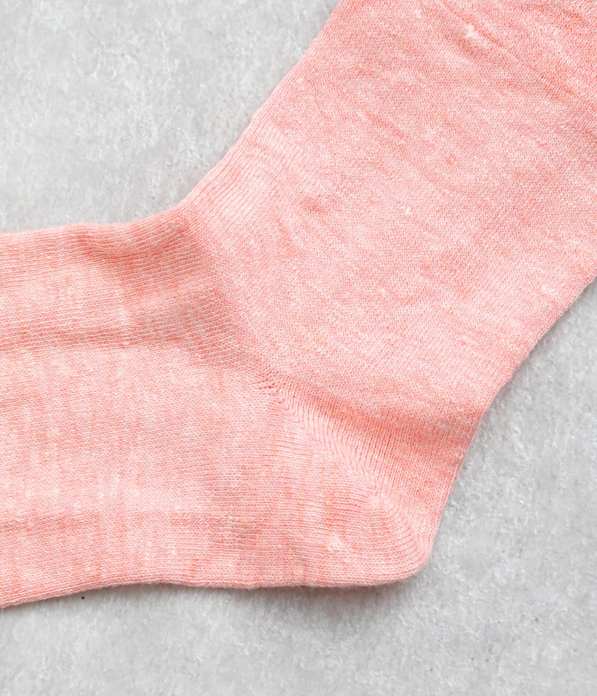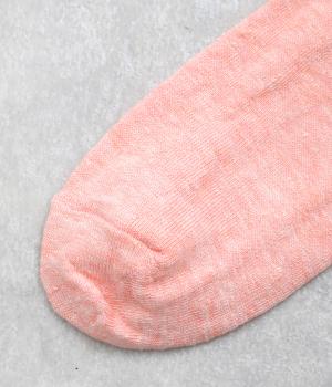リネンをベースに肌触り良く仕上げた薄め中厚手生地ソックス。シャーベットカラーが映える麻特有の微光沢のある素材で、軽やかに足もとを彩ります。