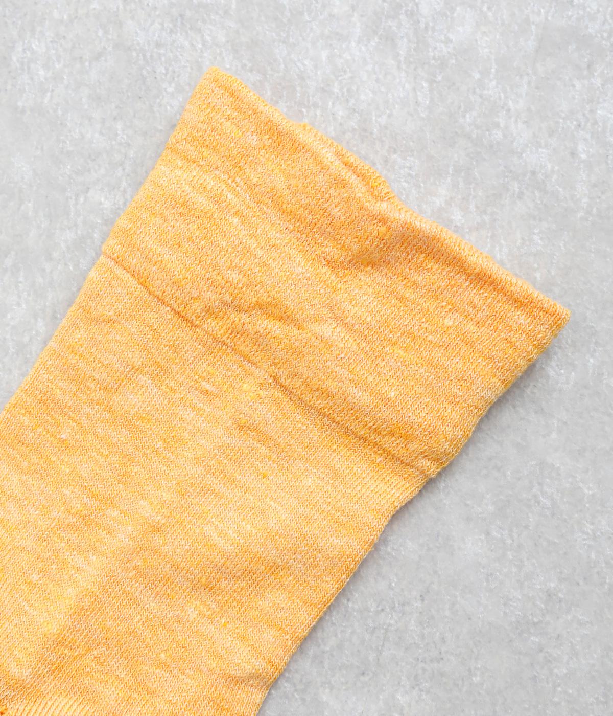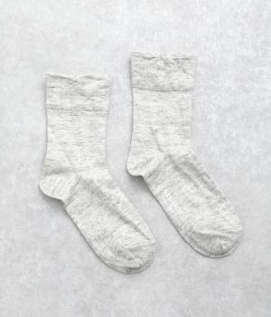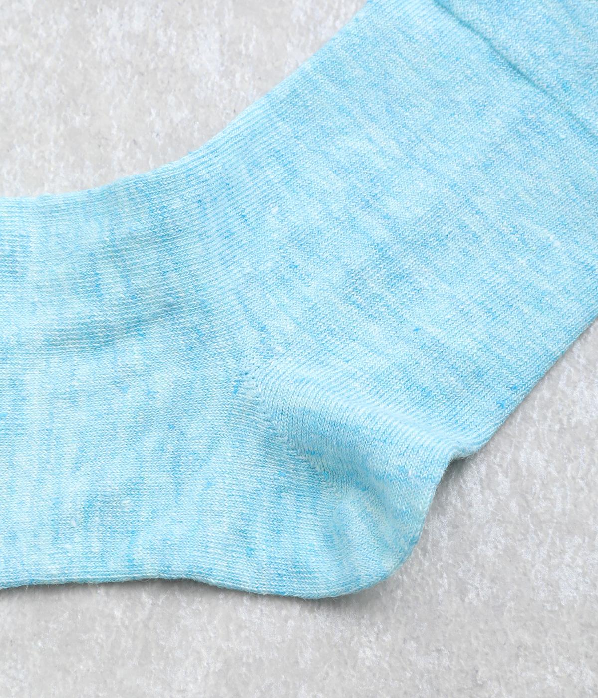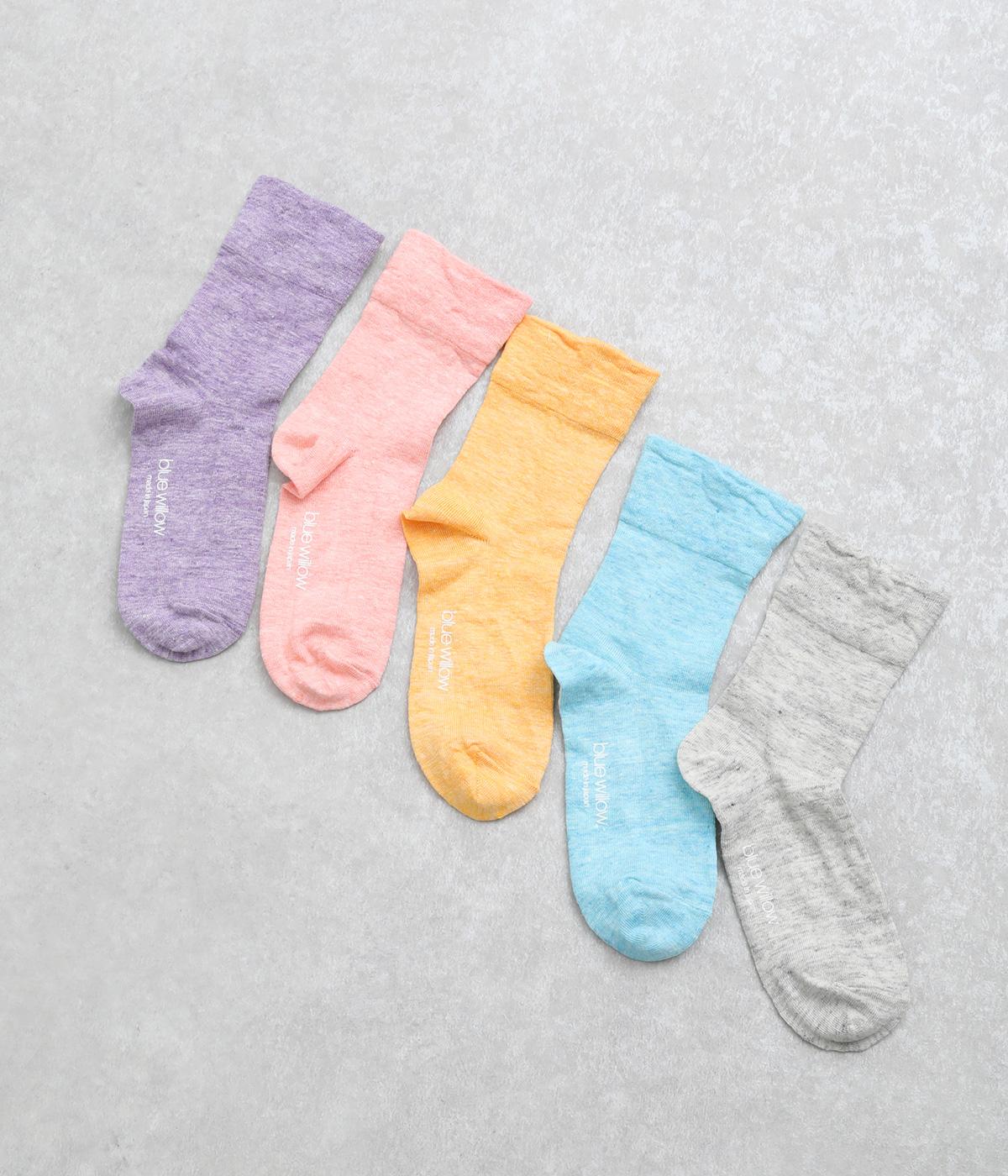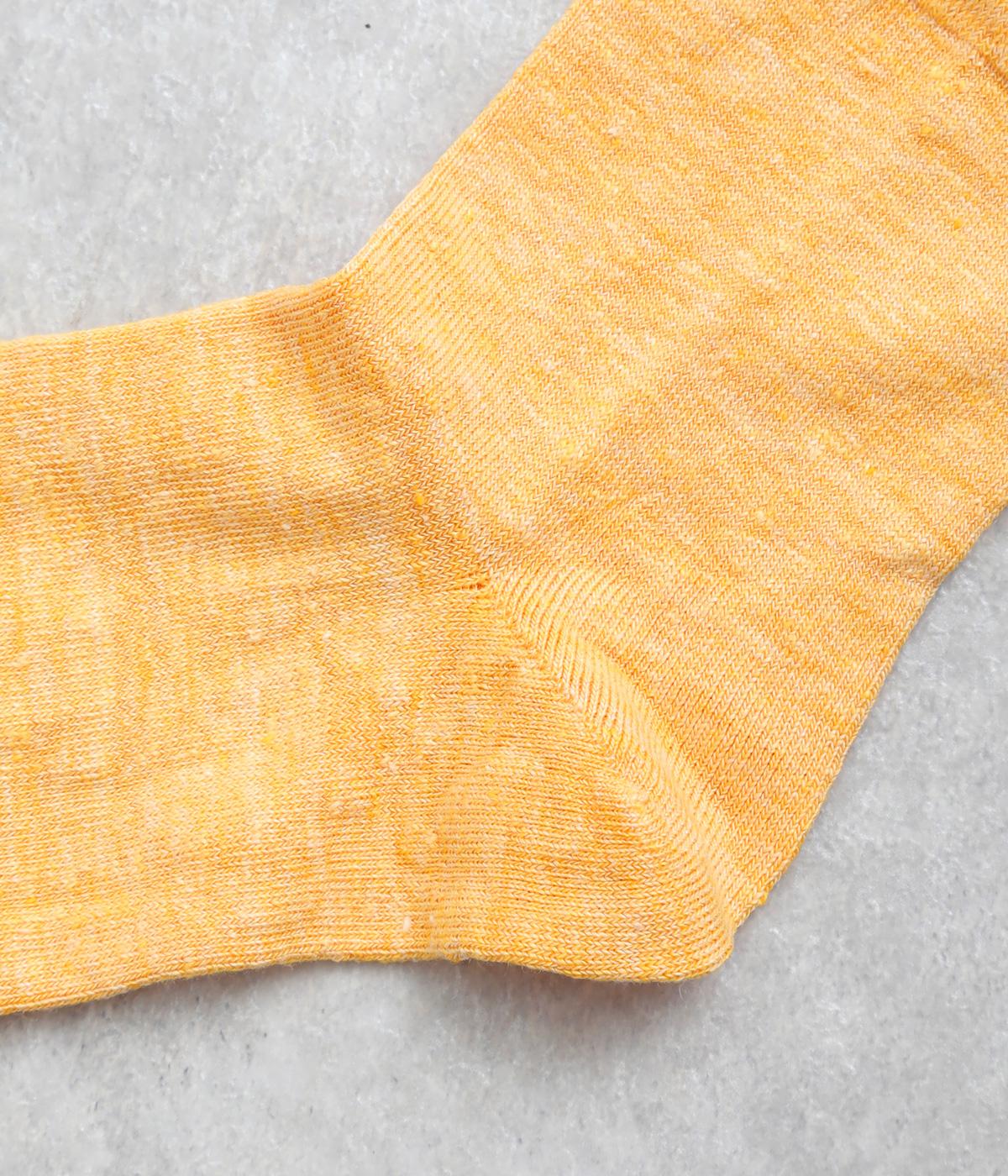リネンをベースに肌触り良く仕上げた薄め中厚手生地ソックス。シャーベットカラーが映える麻特有の微光沢のある素材で、軽やかに足もとを彩ります。