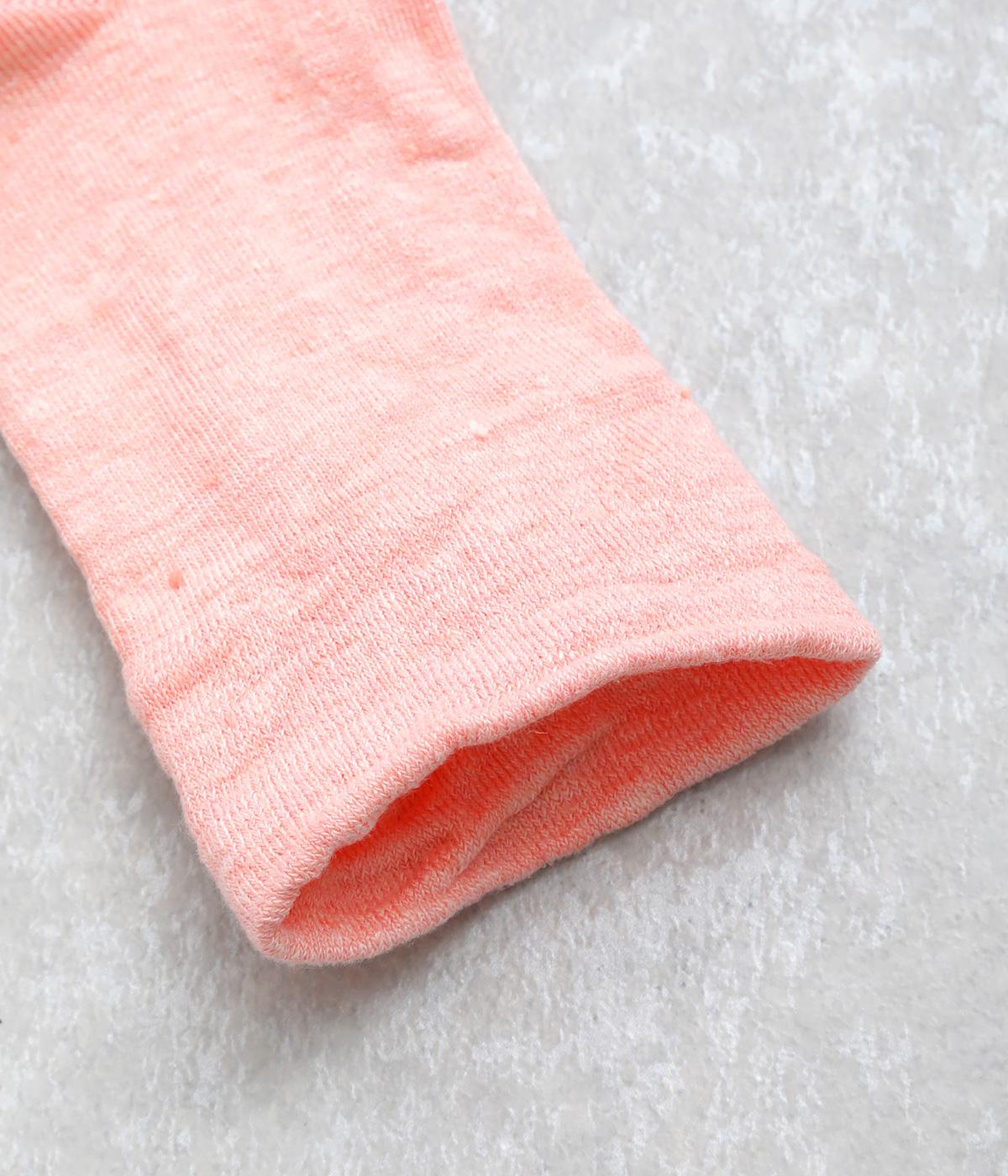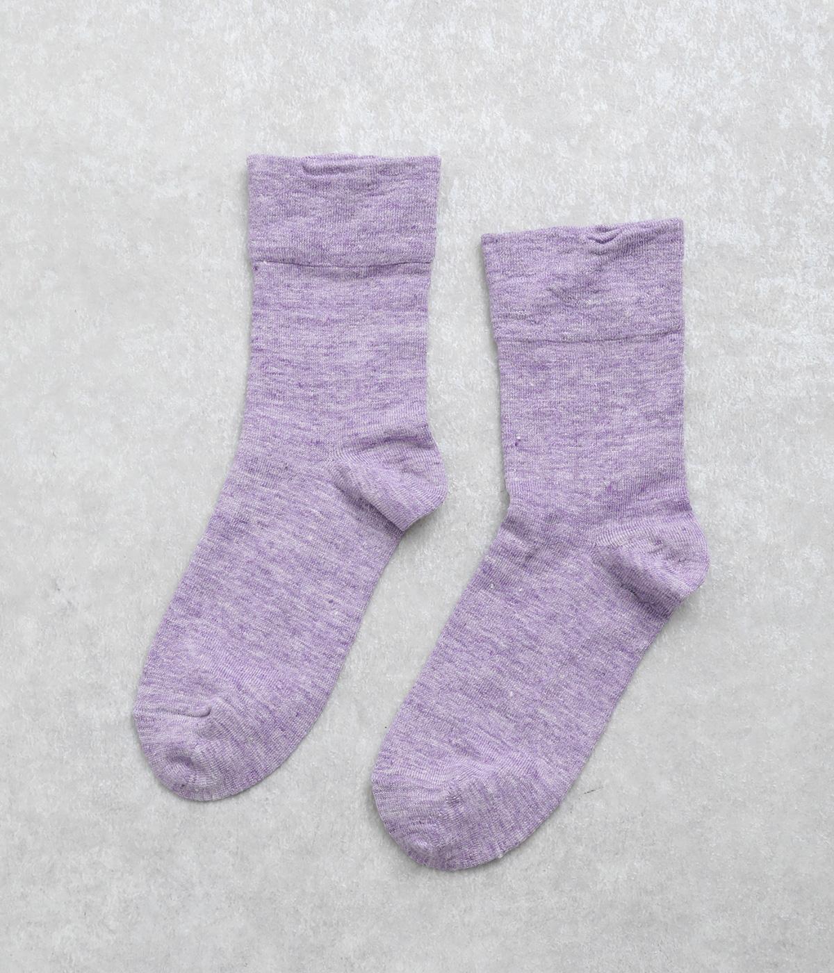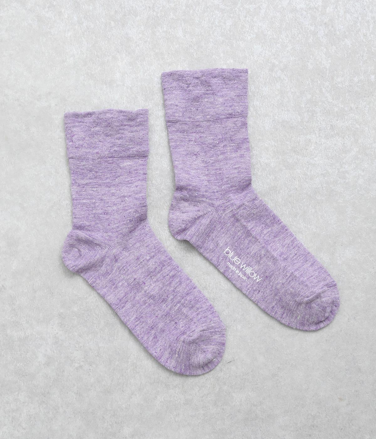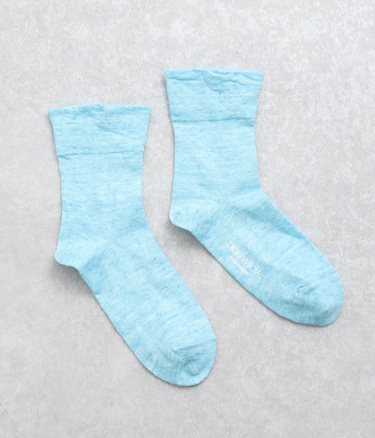 リネンをベースに肌触り良く仕上げた薄め中厚手生地ソックス。シャーベットカラーが映える麻特有の微光沢のある素材で、軽やかに足もとを彩ります。