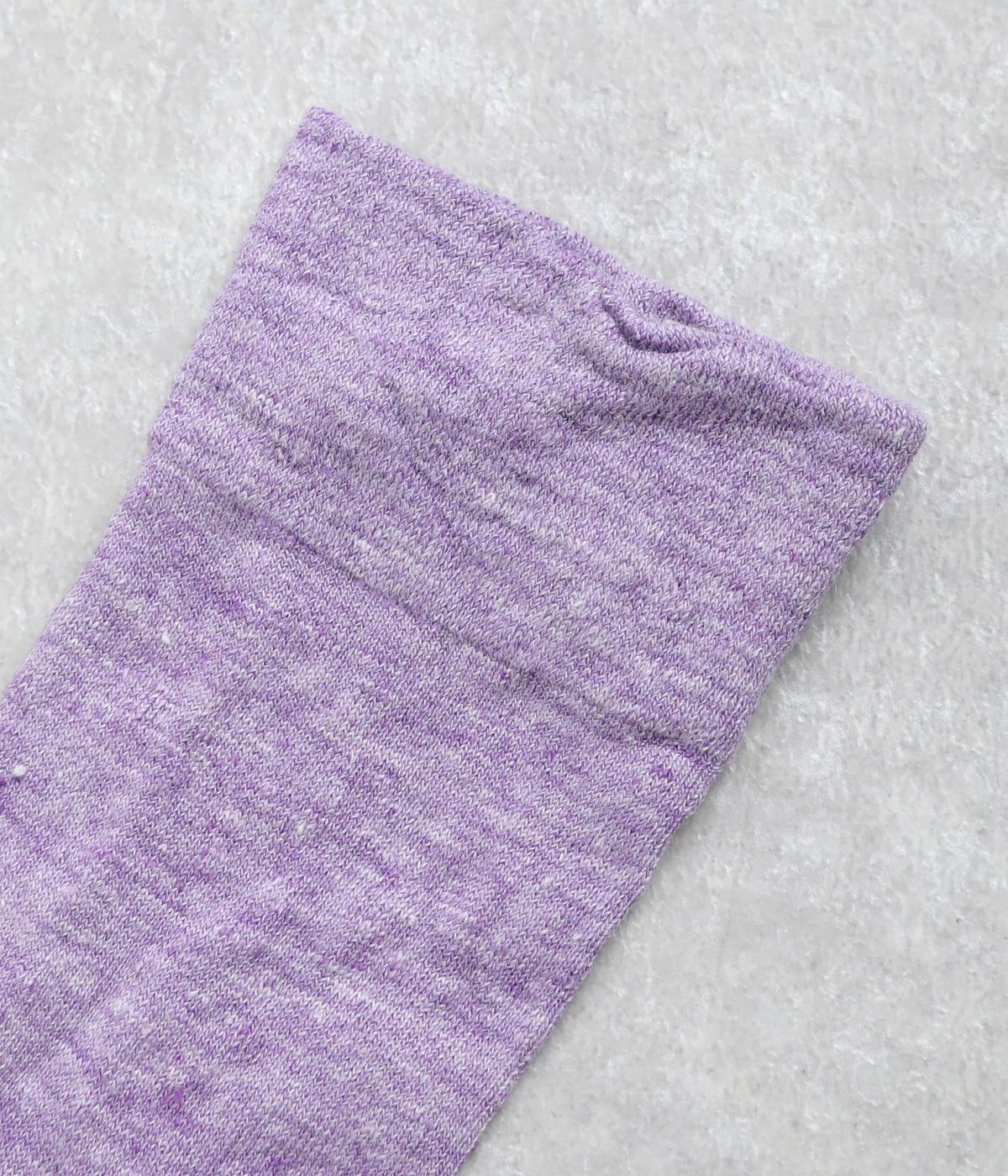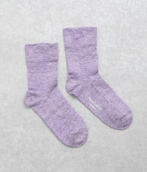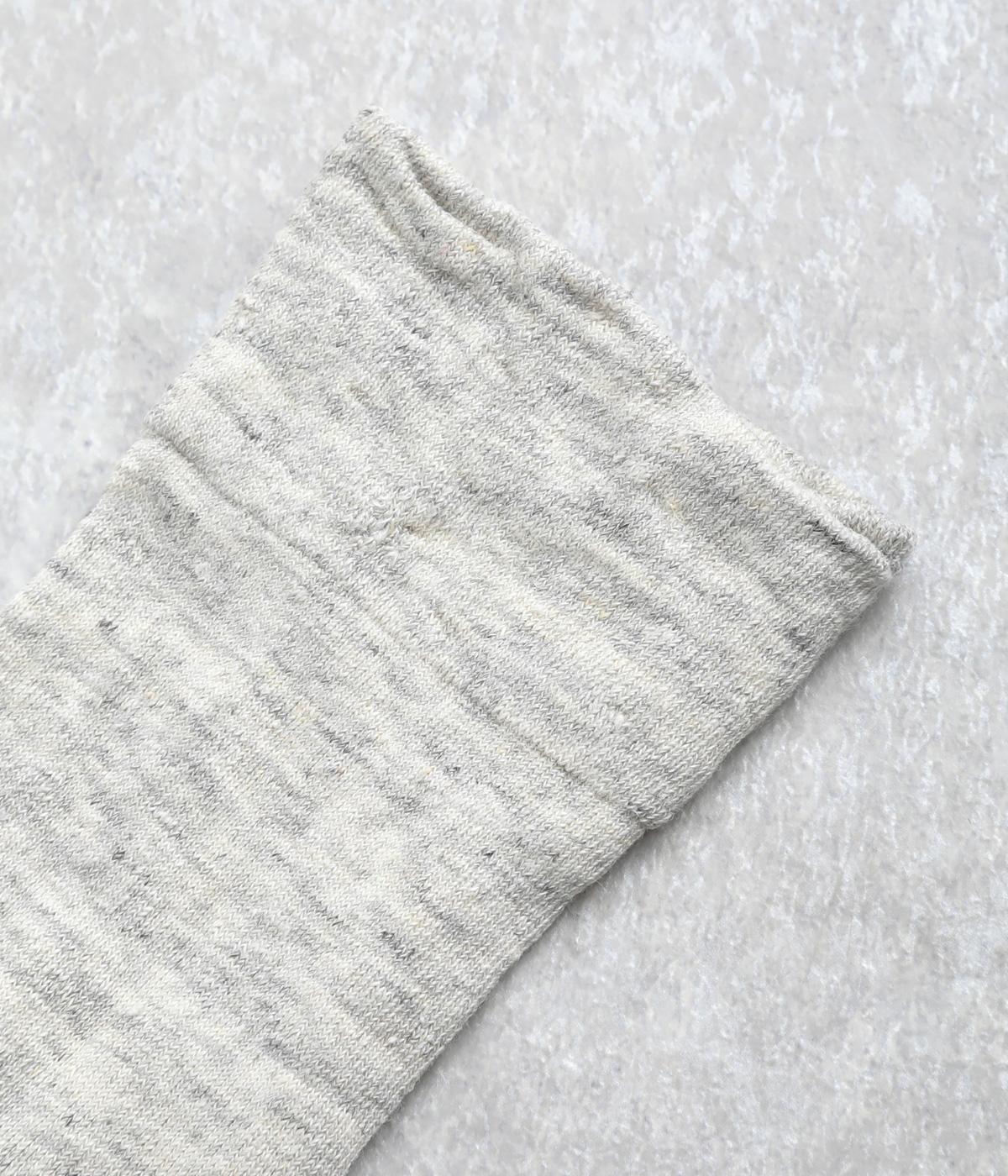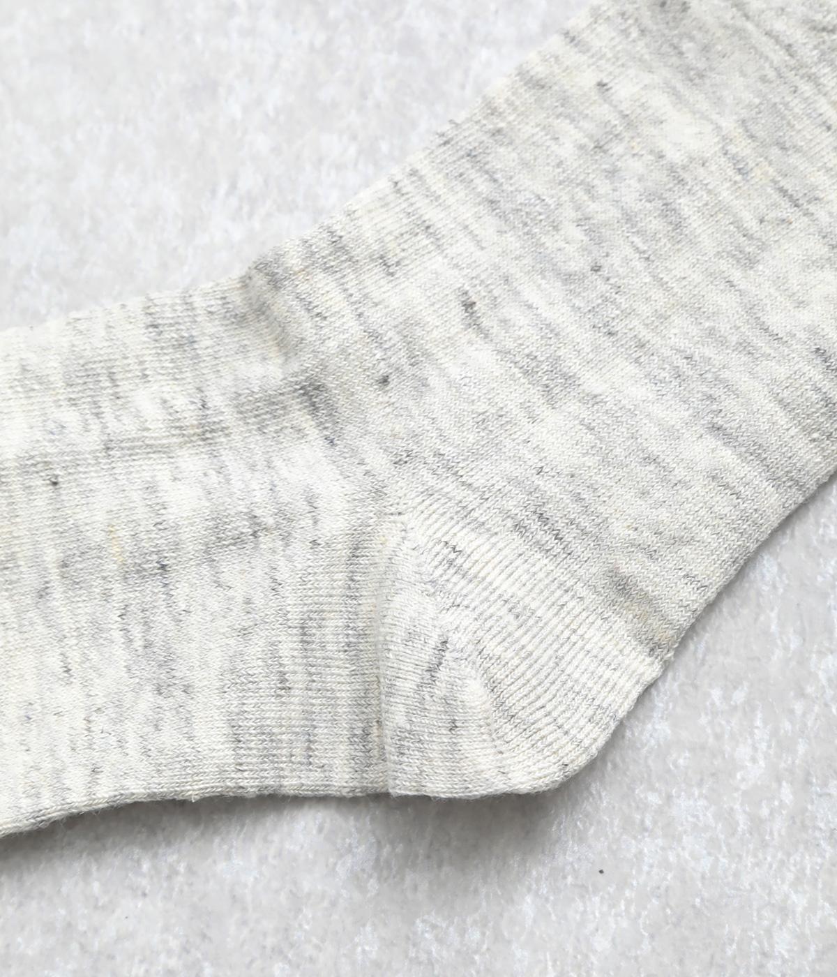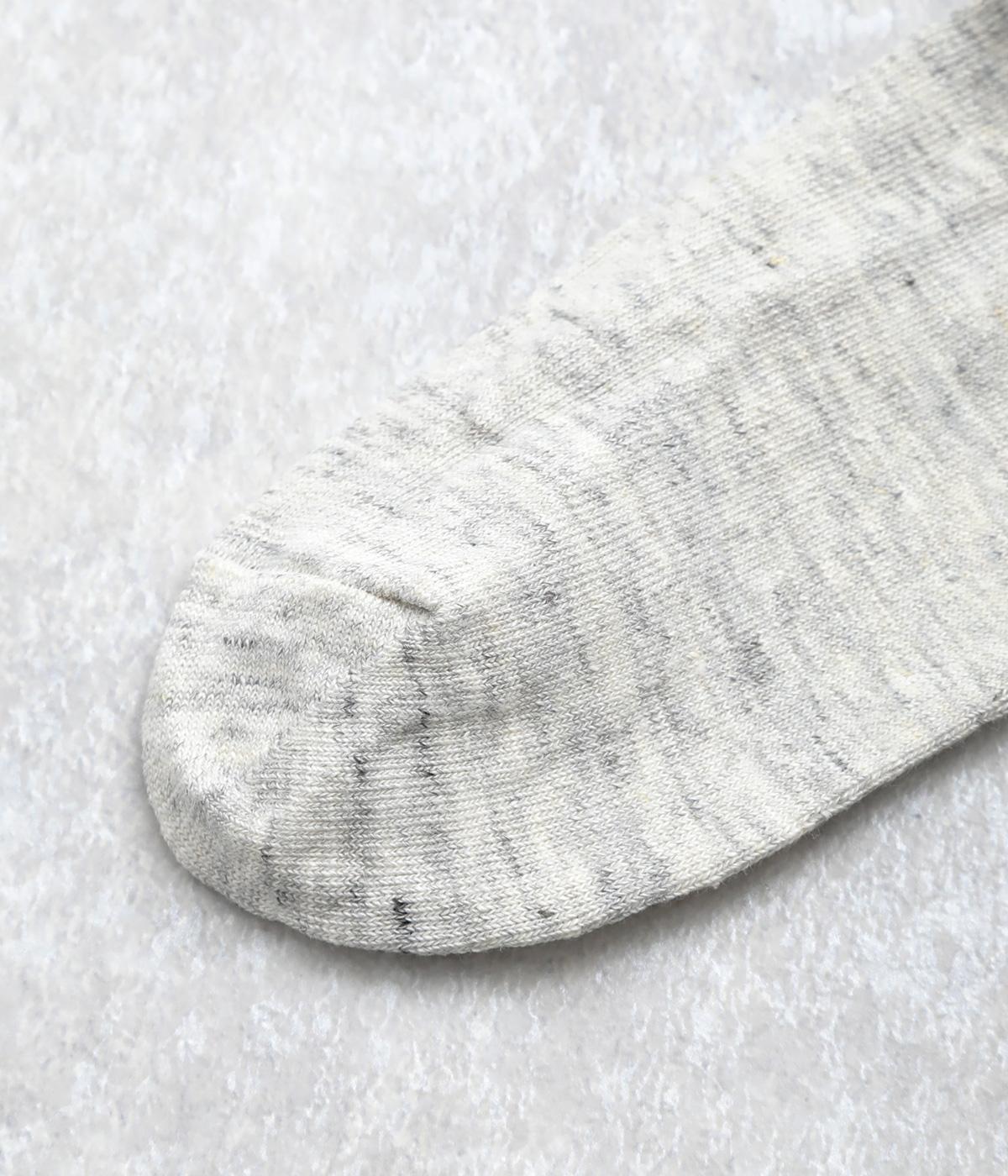 杢調の風合いに淡く軽やかな色みが着こなしを彩りさわやかな風を運びます。履き口の締めつけ感を軽減させたゆったり仕様で、跡がつきにくくなっています。シンプルなワントーンで柄ボトムやシューズとの相性も◎。