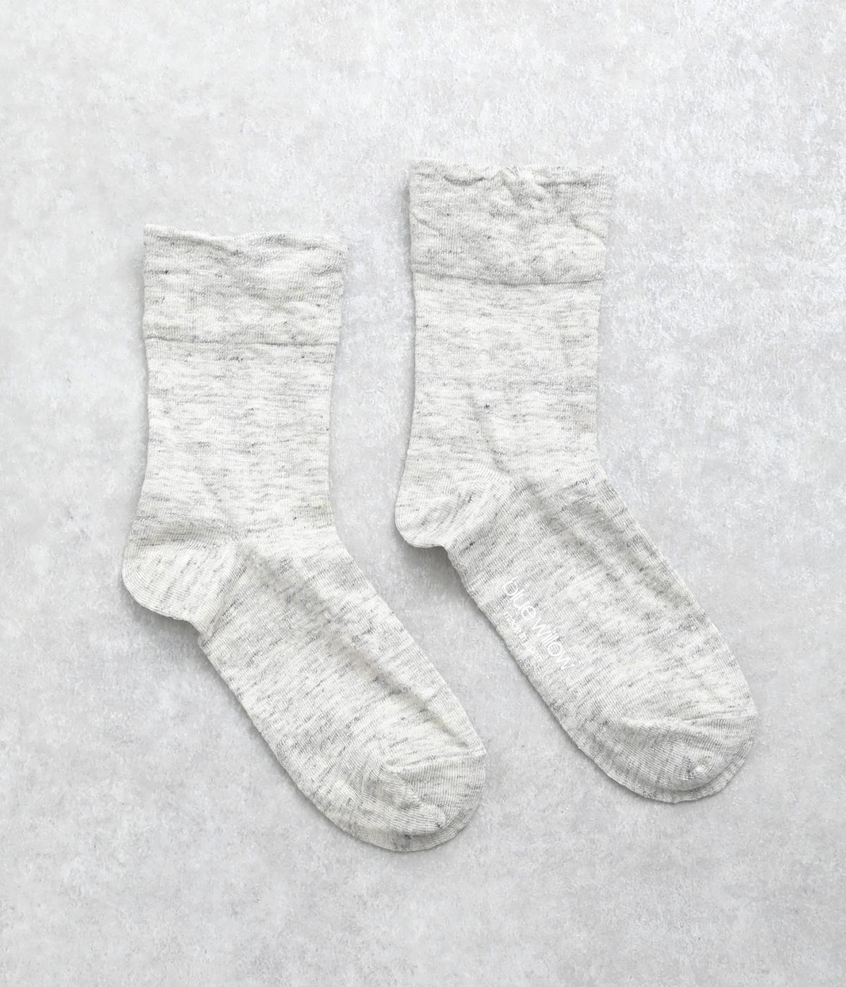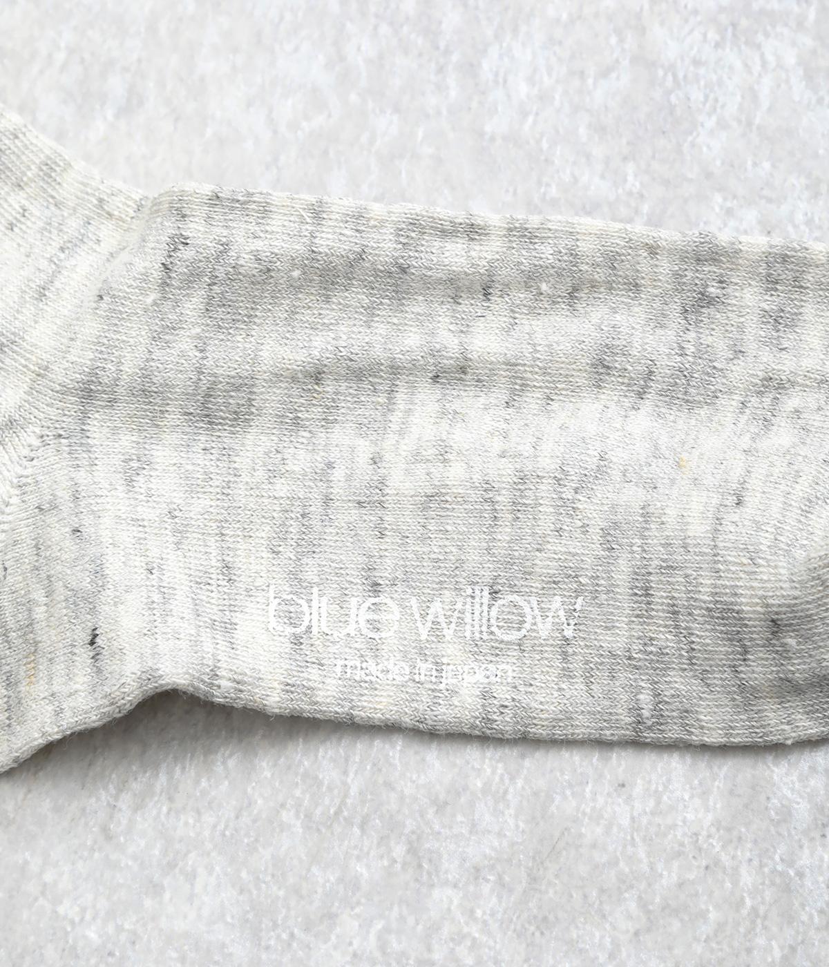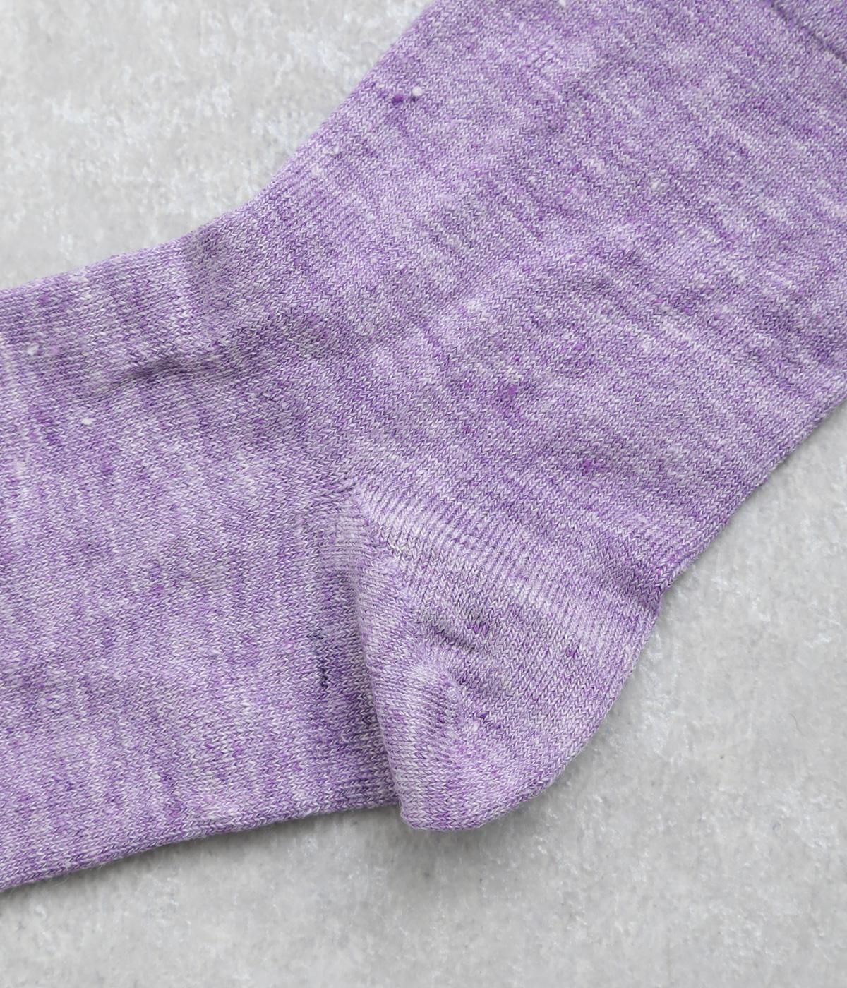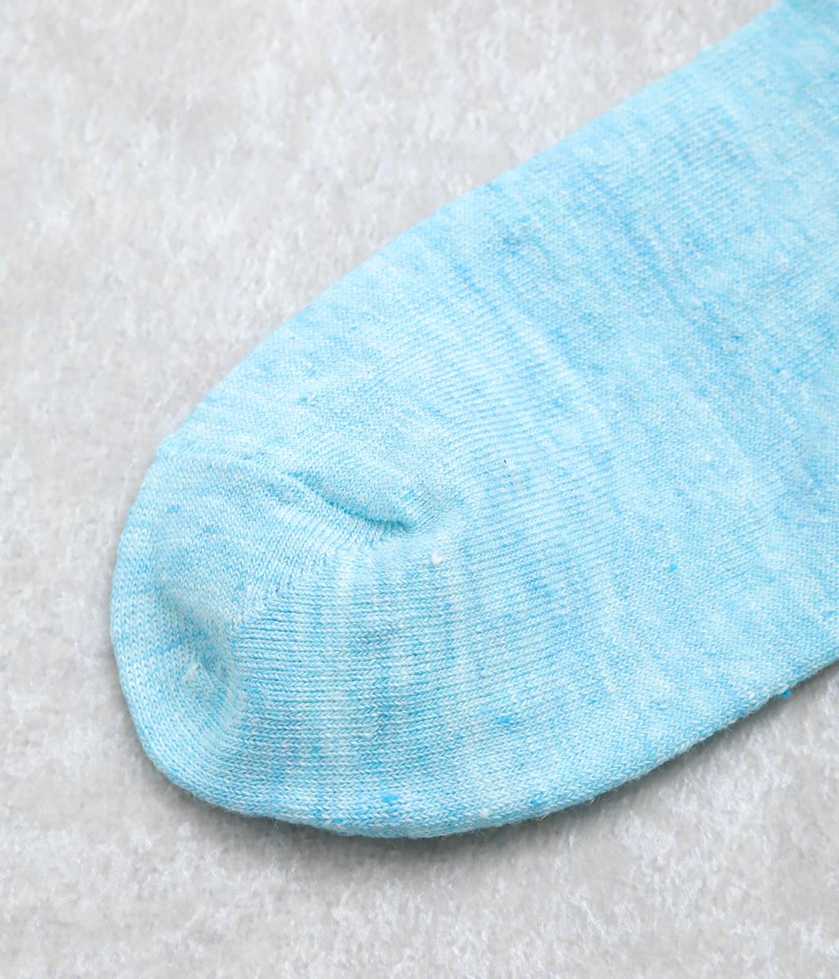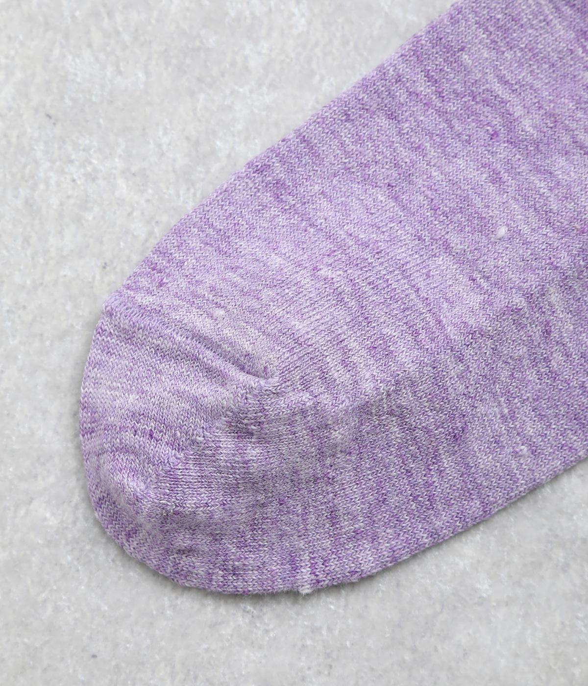 杢調の風合いに淡く軽やかな色みが着こなしを彩りさわやかな風を運びます。履き口の締めつけ感を軽減させたゆったり仕様で、跡がつきにくくなっています。シンプルなワントーンで柄ボトムやシューズとの相性も◎。
