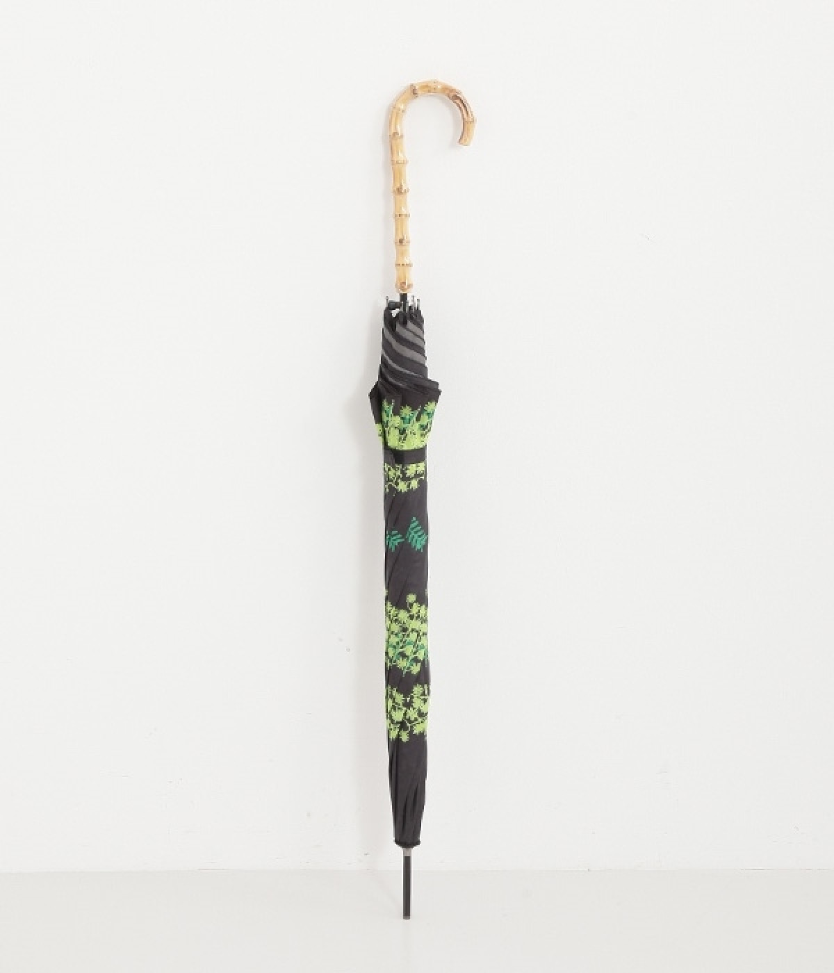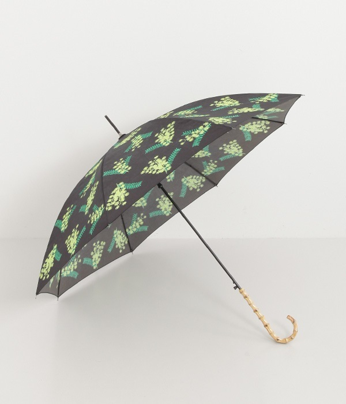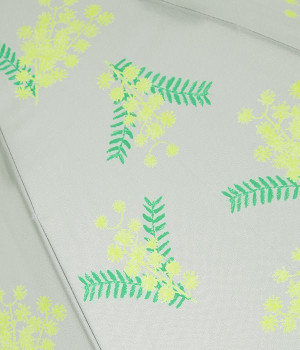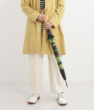 春の訪れを知らせる花・ミモザのプリントをあしらった、晴雨兼用の長傘。すっきりとした華奢なシルエットながら、特殊なバネ構造により強風にも耐えられる丈夫さを持っています。持ち手部分には竹を使い、ナチュラルな女性らしさをプラスしました。ジャンプ式の開閉で使いやすいのも嬉しいポイント。持ち手は天然素材を使用しているため、使用後は水分を拭き取り、室内での保管がおすすめです。
