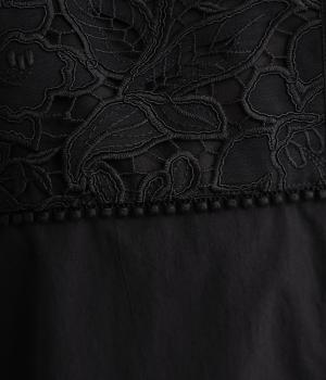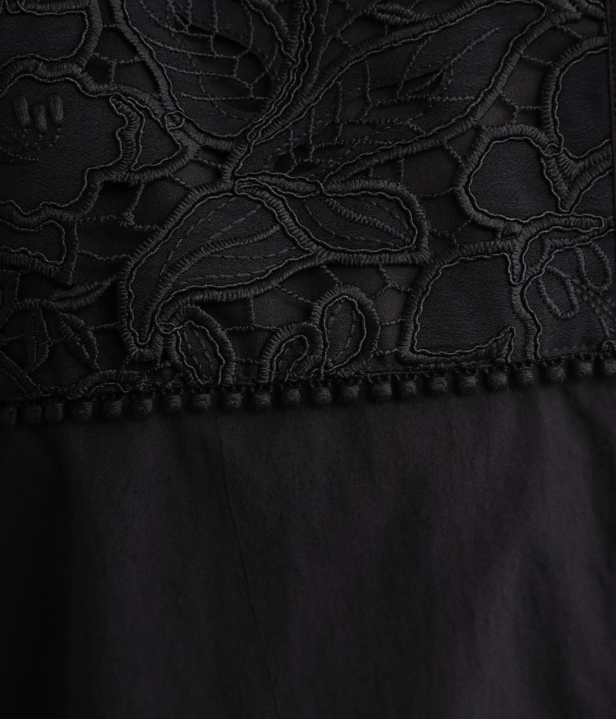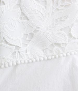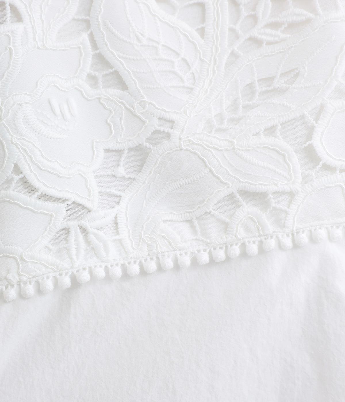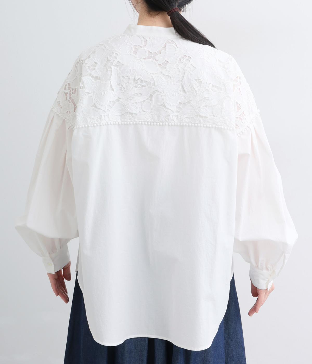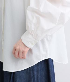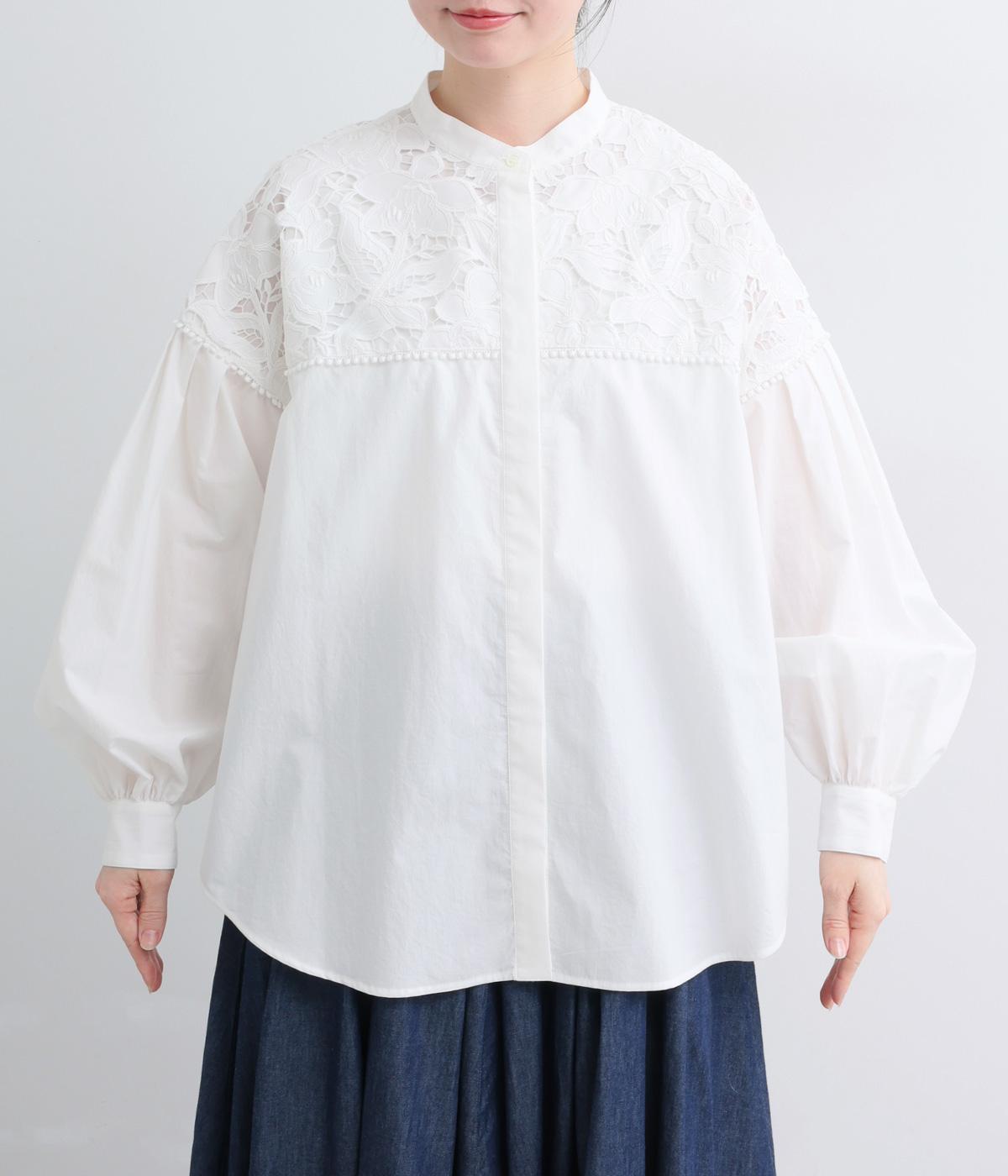 身頃部分には軽やかなハリが特徴のコットンタイプライターを。ヨーク部分には刺しゅう生地を配しています。全体的にさらりとした肌触りで、華やかながらも快適な着心地です。