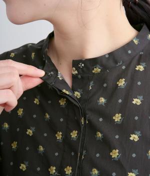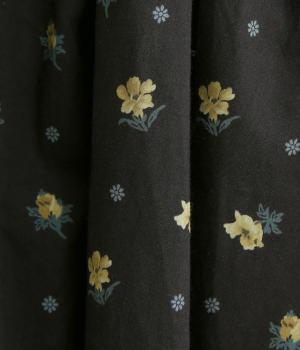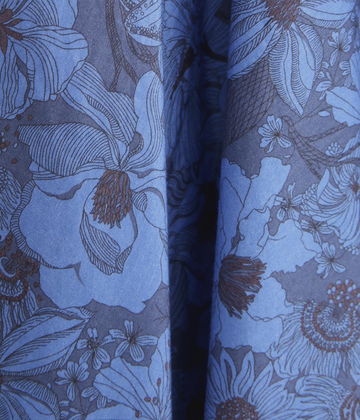 軽やかさとしなやかさを両立したコットン生地。ふんわりと揺れる生地が繊細なリバティプリントを引き立てます。小花柄を、ブルーはグラフィカルに、ブラックはクラシカルに表現しています。