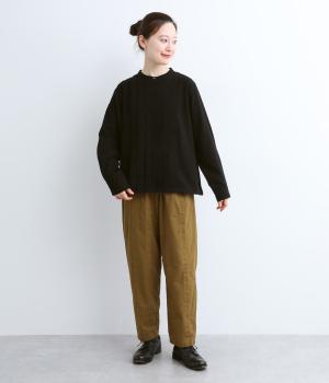 滑らかでしっとりとしたコットンビエラ生地に、桃の産毛のようなピーチ起毛を施した風合いが特徴。肌触りはさらりとしているので、心地よく着用いただけます。