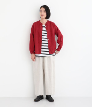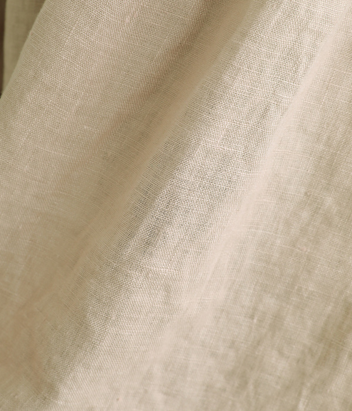 節の見えるナチュラルな表面感とさらりとした心地よい肌触りが魅力のリネン生地。国内で職人さんの手によって製品染めされた、独特なやわらかさと一点一点異なる豊かな風合いにも注目です。