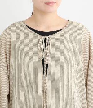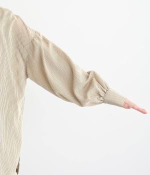 オリジナルのストライプ柄がポイントの混紡生地をセレクト。レーヨンをベースにしているので適度なハリとしなやかな落ち感、ほのかな光沢が特徴的で大人の魅力を惹き出します。