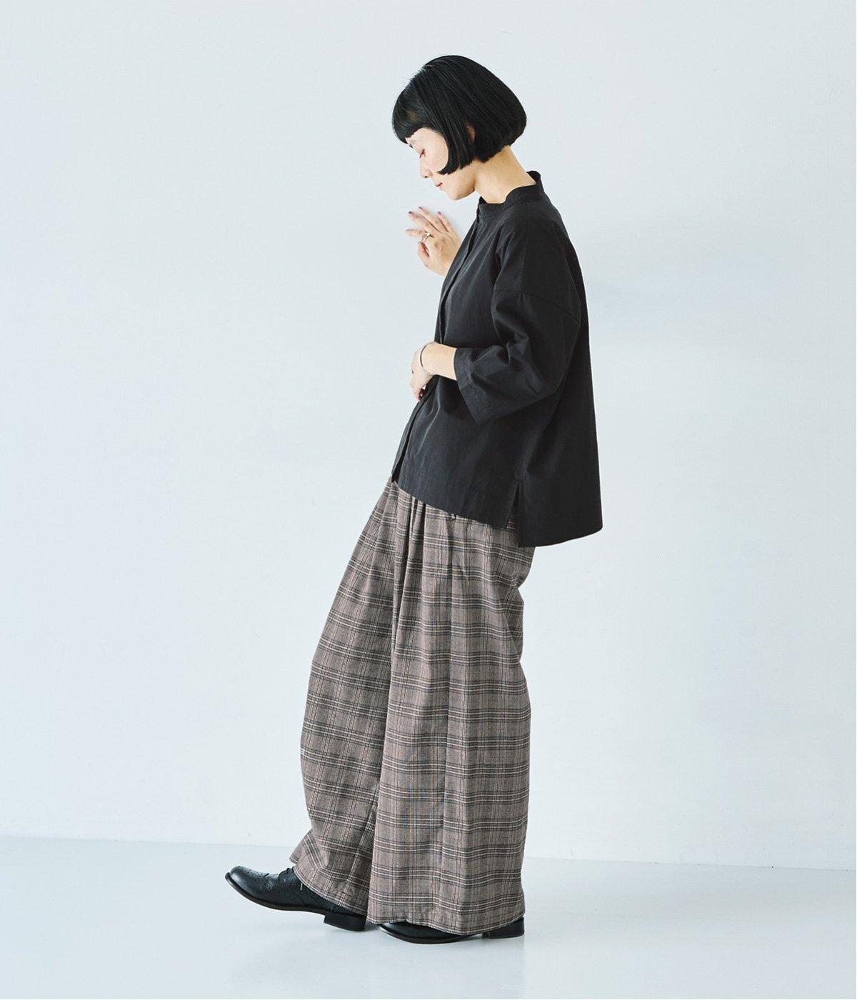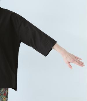 スタンドカラーは高さを控えめに設計し、首まわりをすっきり見せる工夫を。袖は先に向かってやや広がるシルエットで、自然に腕を細く華奢に見せてくれます。