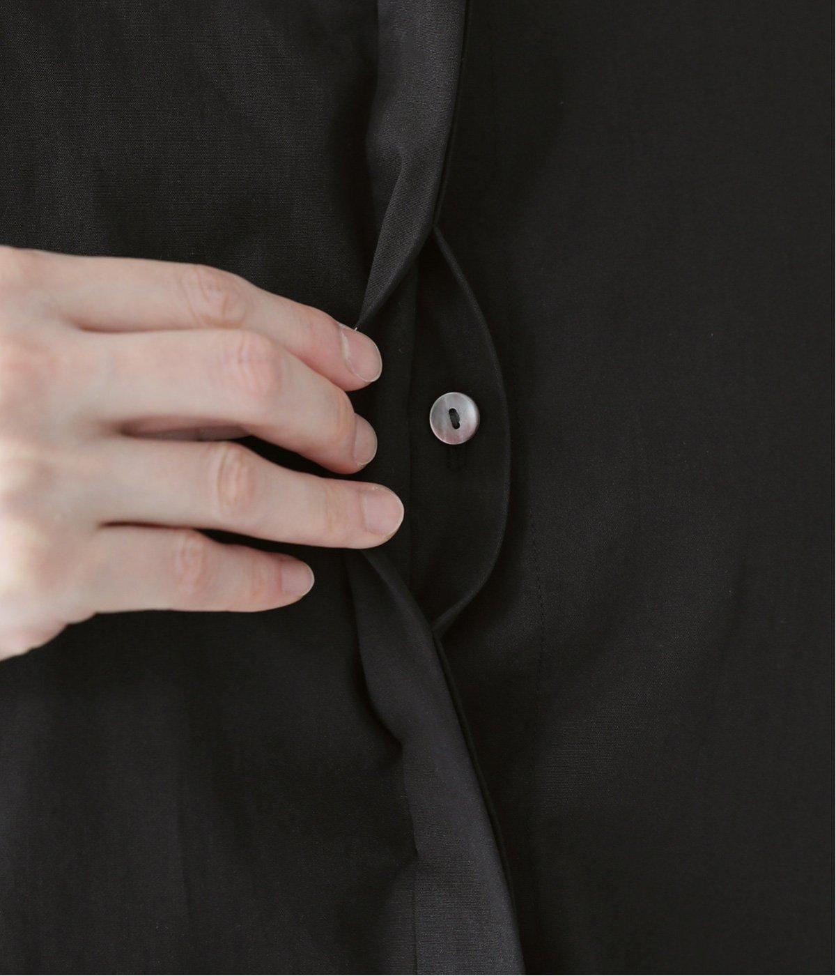 比翼仕立てのすっきりとした前立てと、ほどよく立ち上がるスタンドカラーが、さりげないポイントに。