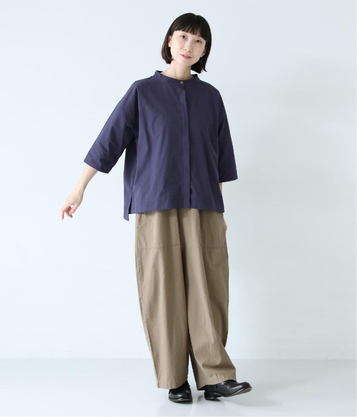 きれいめな印象を引き立てる、目の詰まったコットン素材を使用。ほどよい厚みとハリがあり、季節の変わり目にもぴったりです。