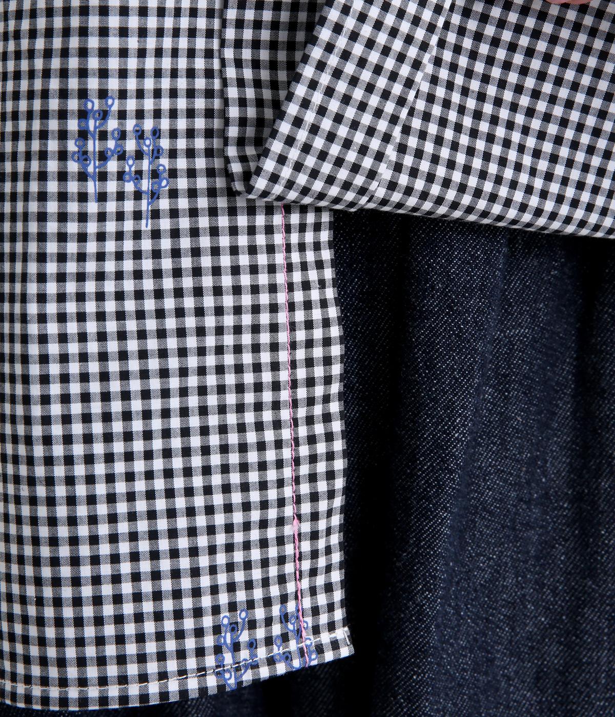 きちんと見えする、ほどよいハリ感のコットン生地で仕立てました。さらりと肌ばなれよく、心地よく着用できます。前立ての内側には配色のステッチをあしらいました。