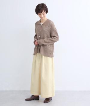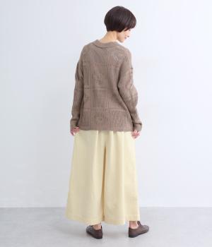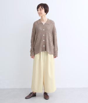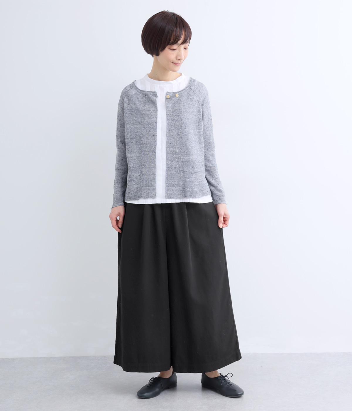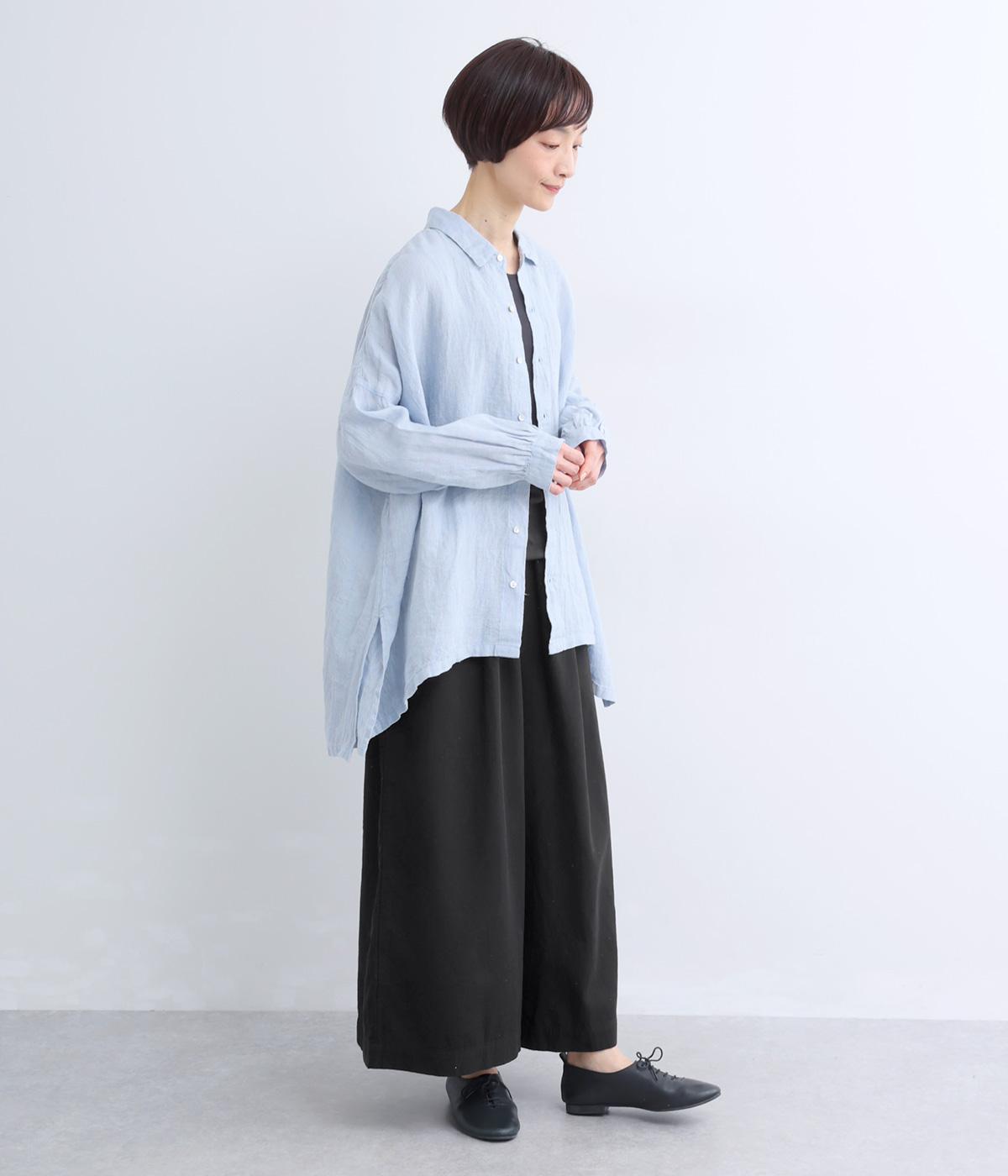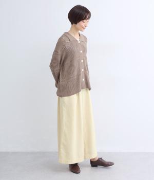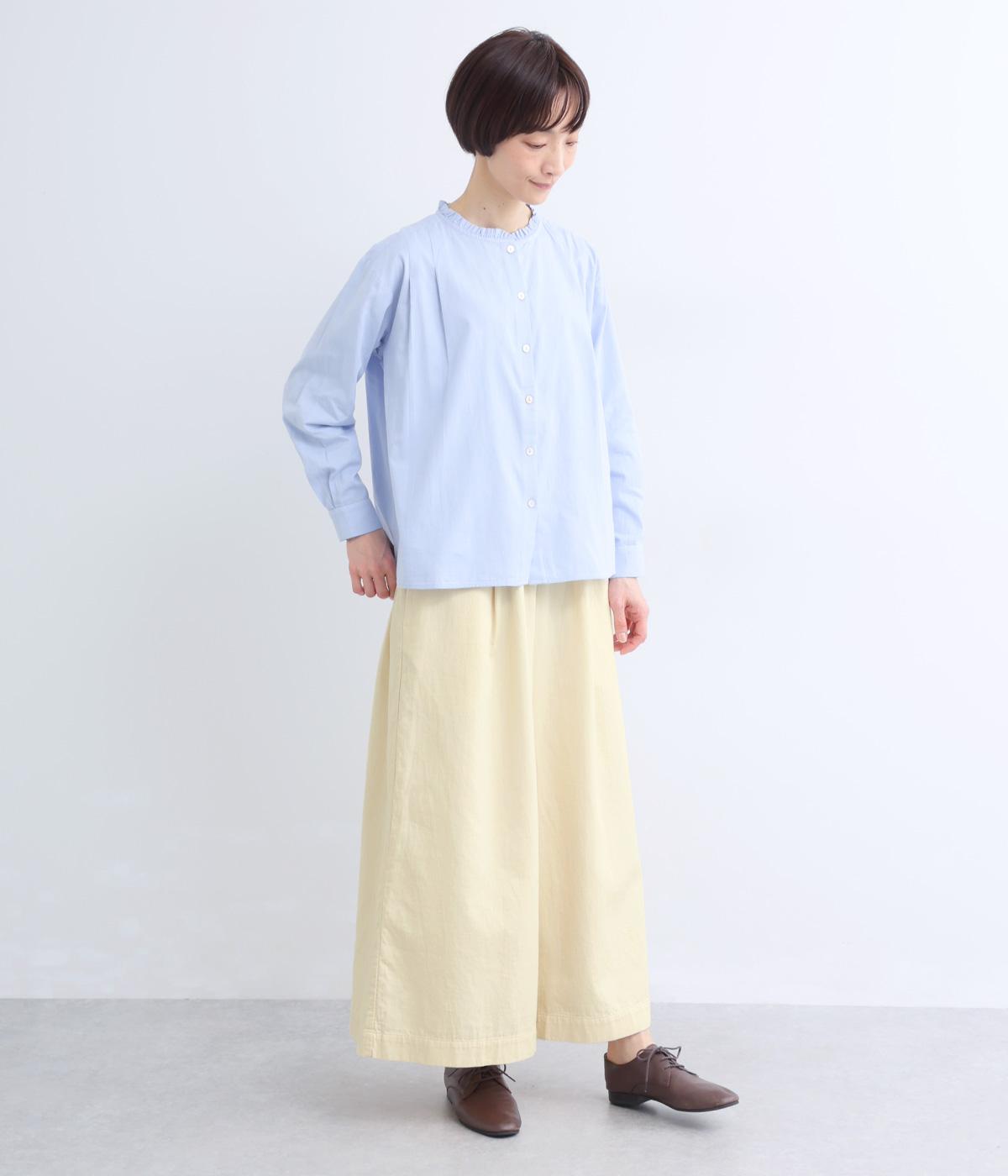 ウエストに入れたタックとギャザーが、やわらかな表情を生むガウチョパンツです。たっぷりとしたワイドシルエットで、スカートのような印象に仕上げました。ウエストはゴム仕様、股上は深めで、ゆったりと安心感のあるはき心地。幅広いコーディネートに合わせやすい、着まわしに便利な一枚です。
