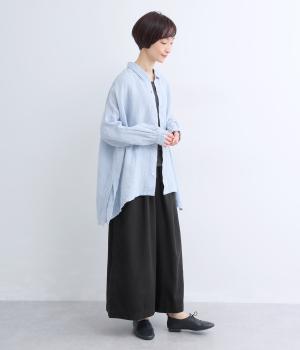 コットンガーゼを二重に仕立てた、ふっくらとやわらかな風合いが魅力です。表面はさらりと軽やかで吸水性にも優れ、季節の変わり目も快適に着用できます。洗いをかけた自然なシワが、奥行きのある表情に。