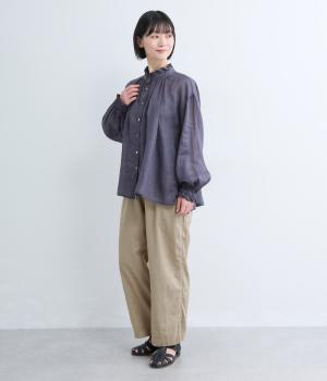 コットンリネン前ちびポケット付きバルーン風パンツ