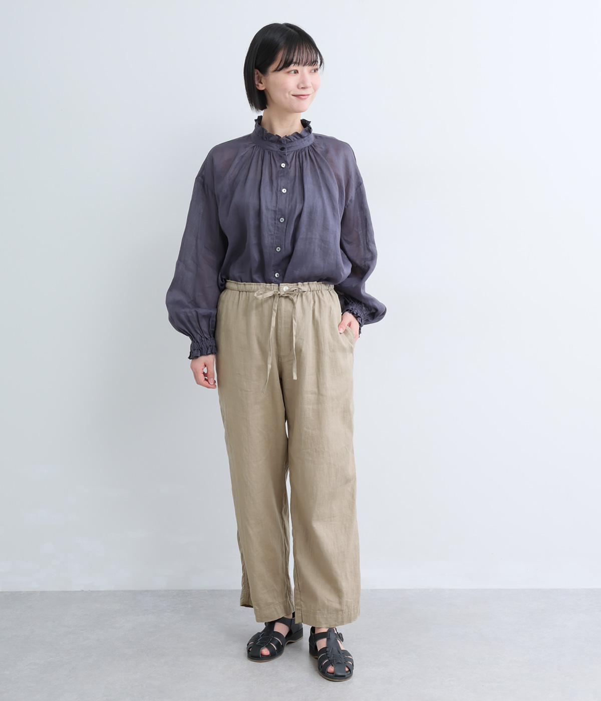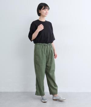 コットンリネン ウエストゴムデニムバルーンパンツ
