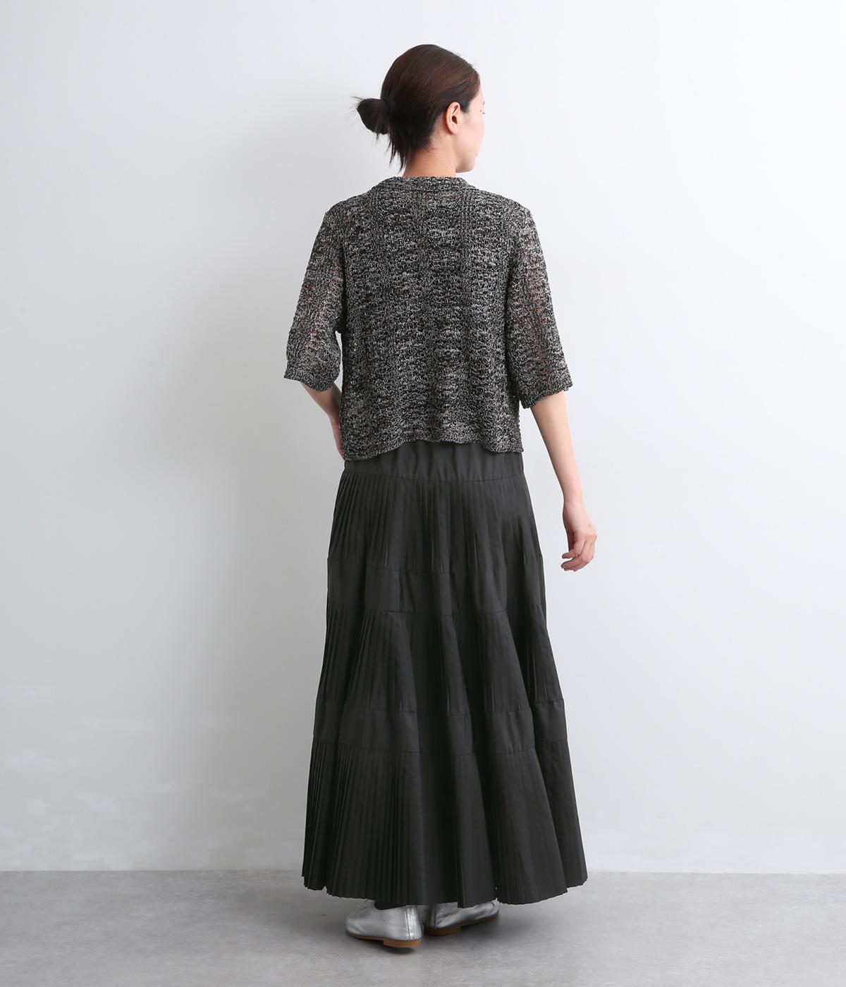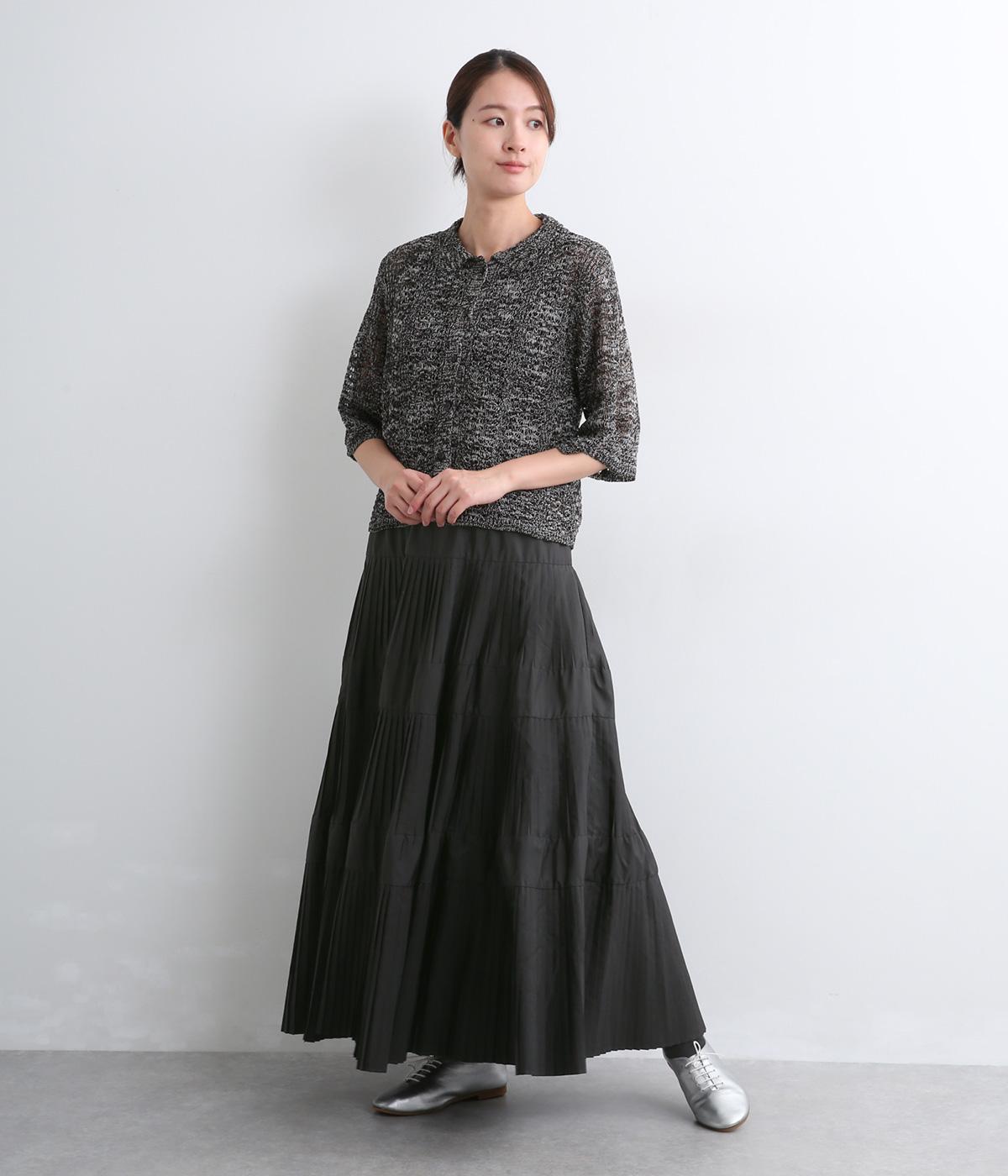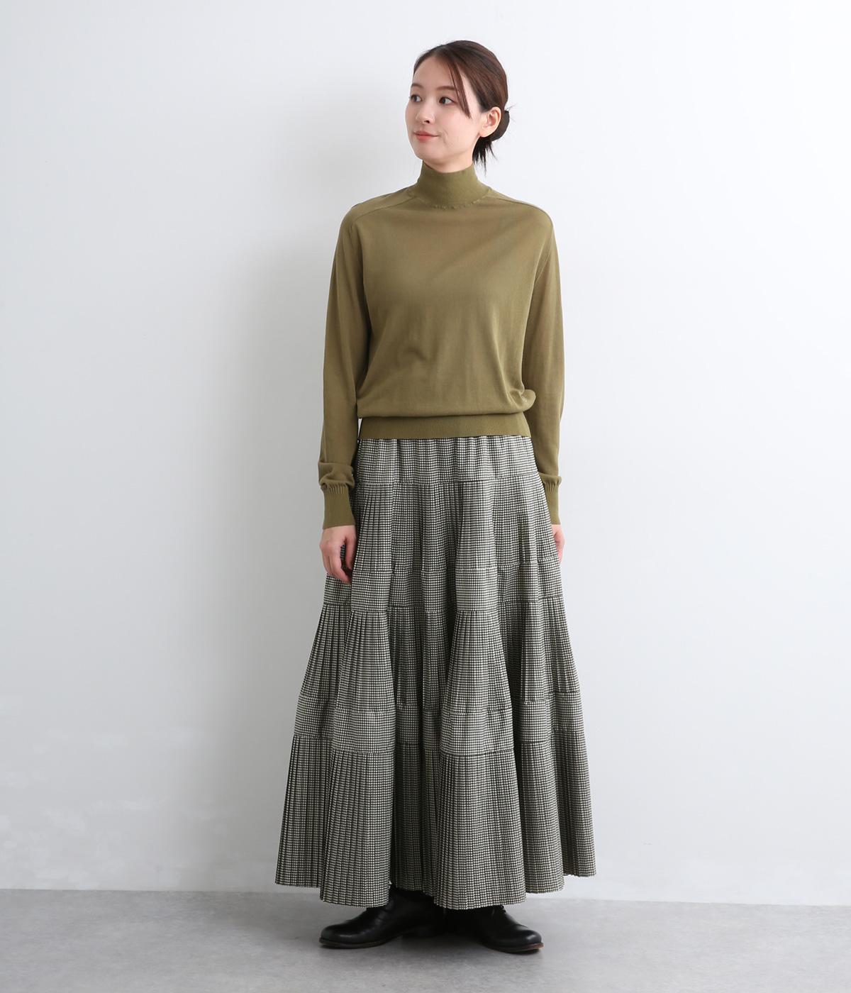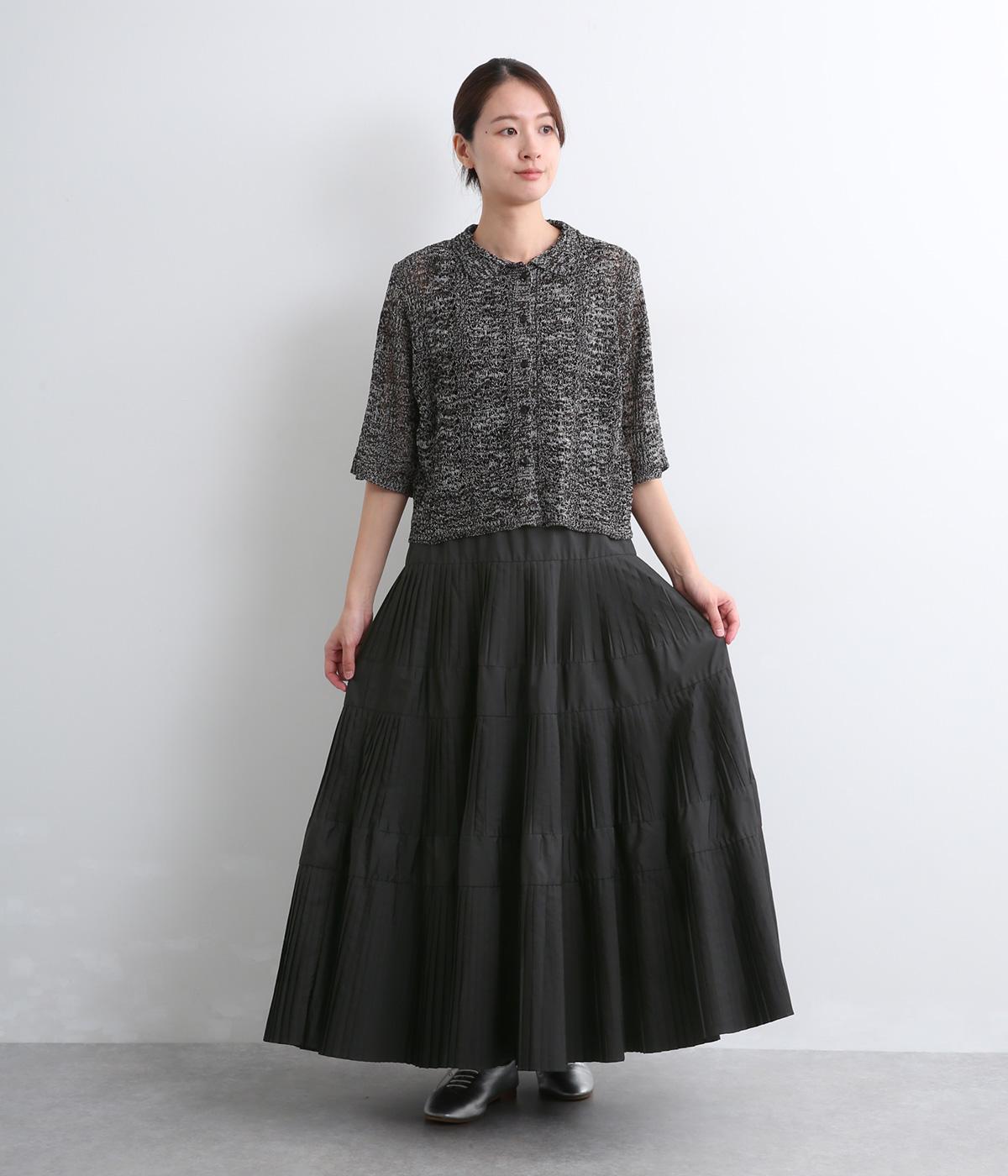 コーティング加工でしっかりとプリーツを表現した着映え力の高いティアードスカート。生地を贅沢にたっぷり使用し、裾にかけて段々とフレアにしています。ウエストはオールゴムに調整紐入りでフィット感や腰位置のアレンジも可能。
