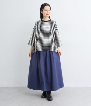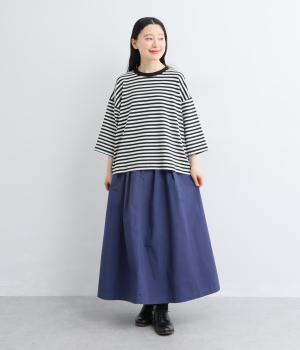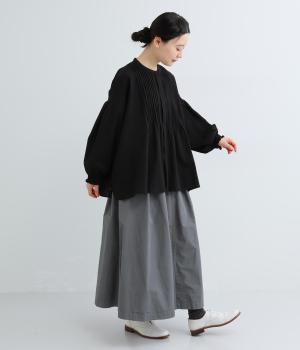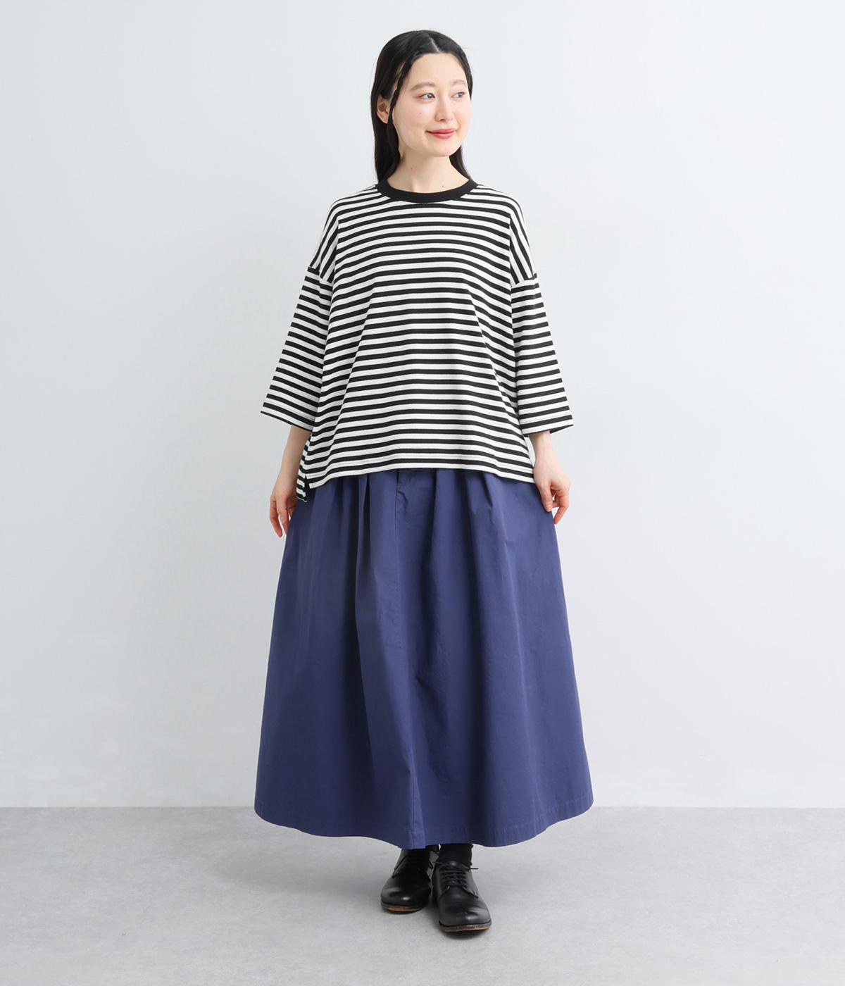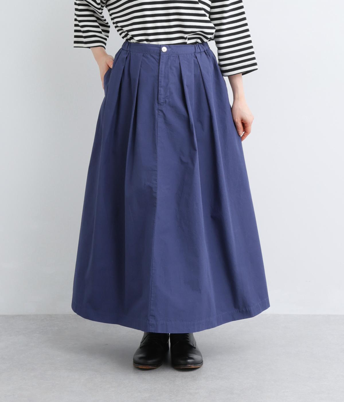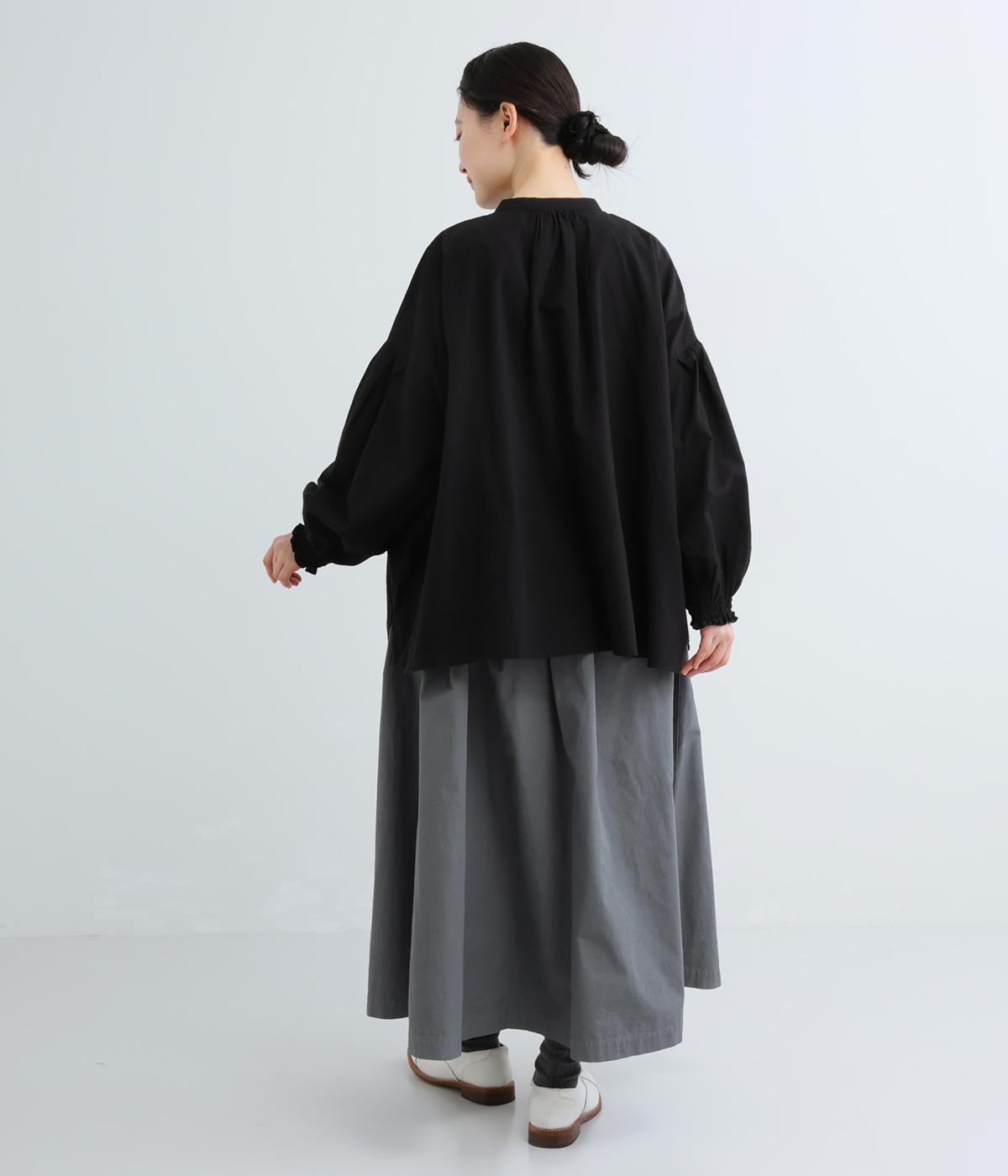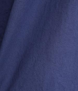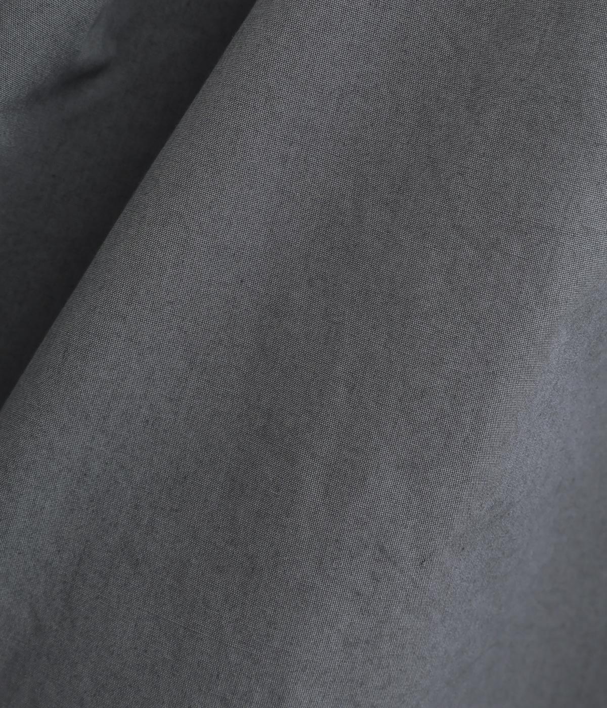 ドライな肌ざわりのコットン生地に製品染めをほどこしました。絶妙な色ムラや濃淡が味わいのある表情をつくります。しっかりとしたハリがシルエットをきれいに表現します。