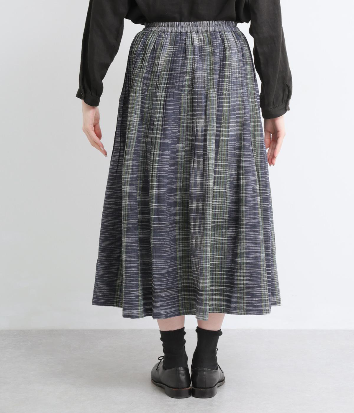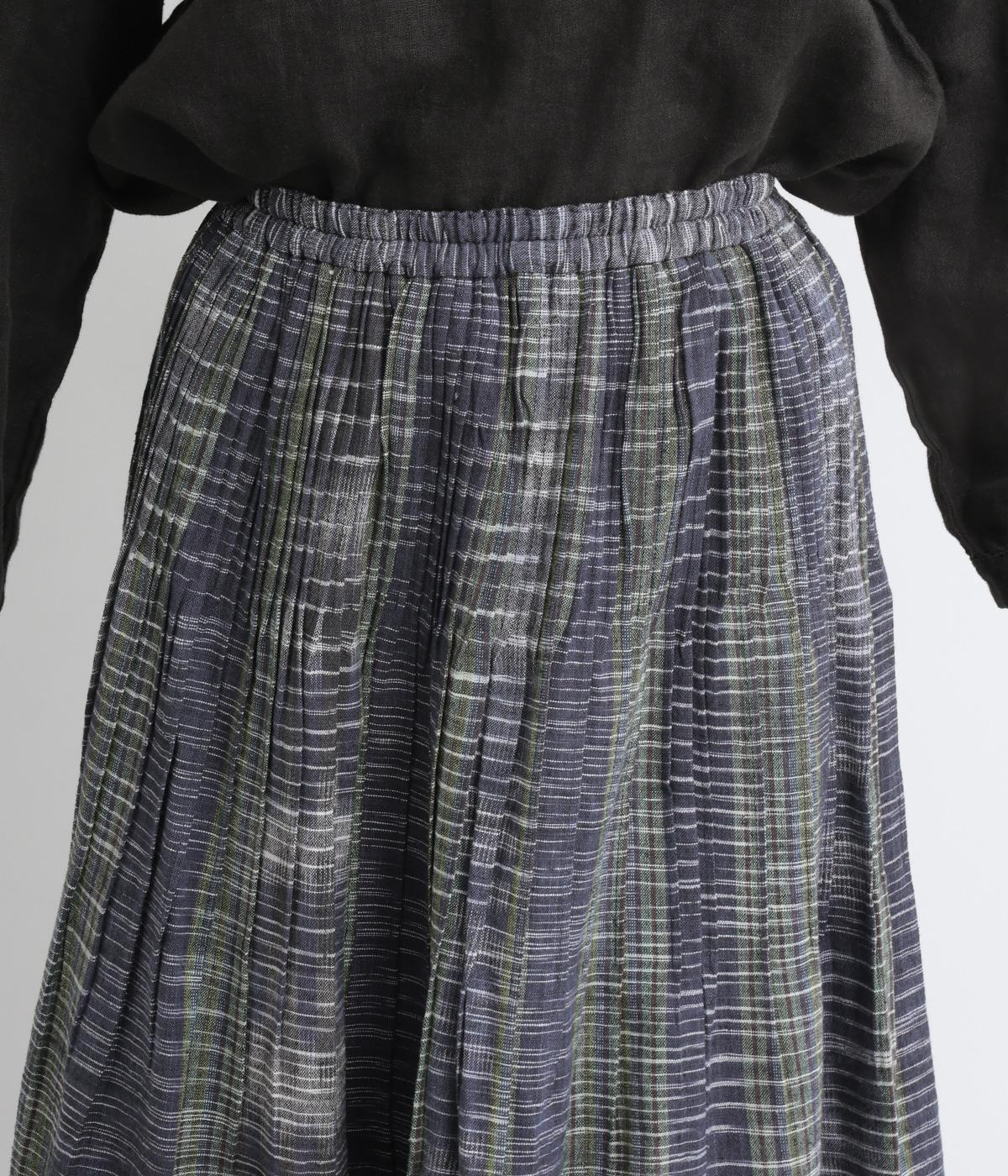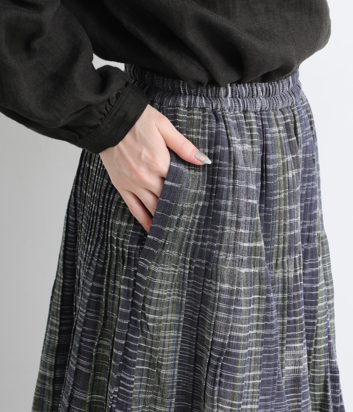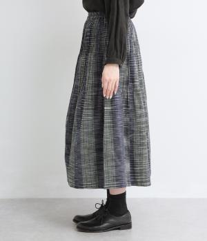 ひとつひとつ異なる味わいの鮮やかなチェック柄が、シックで上品な雰囲気を醸します。広がり過ぎない美しいシルエットが、素材の豊かな表情を引き立てます。ウエストは総ゴム仕様で、裏地付きで安心の穿き心地です。