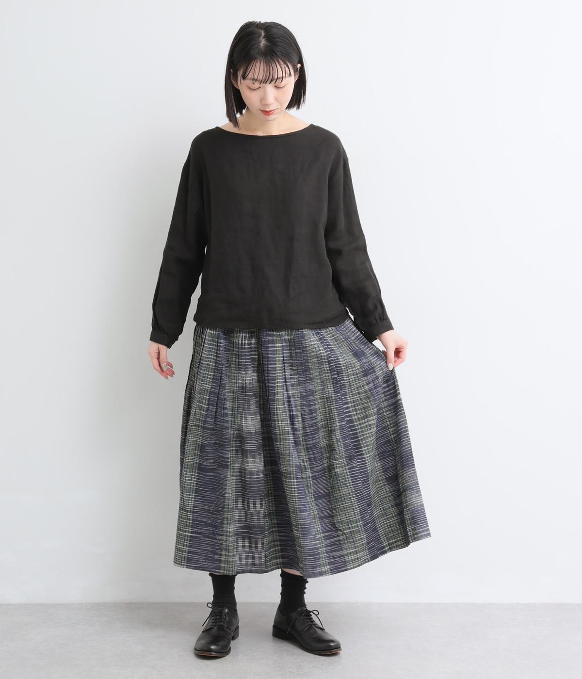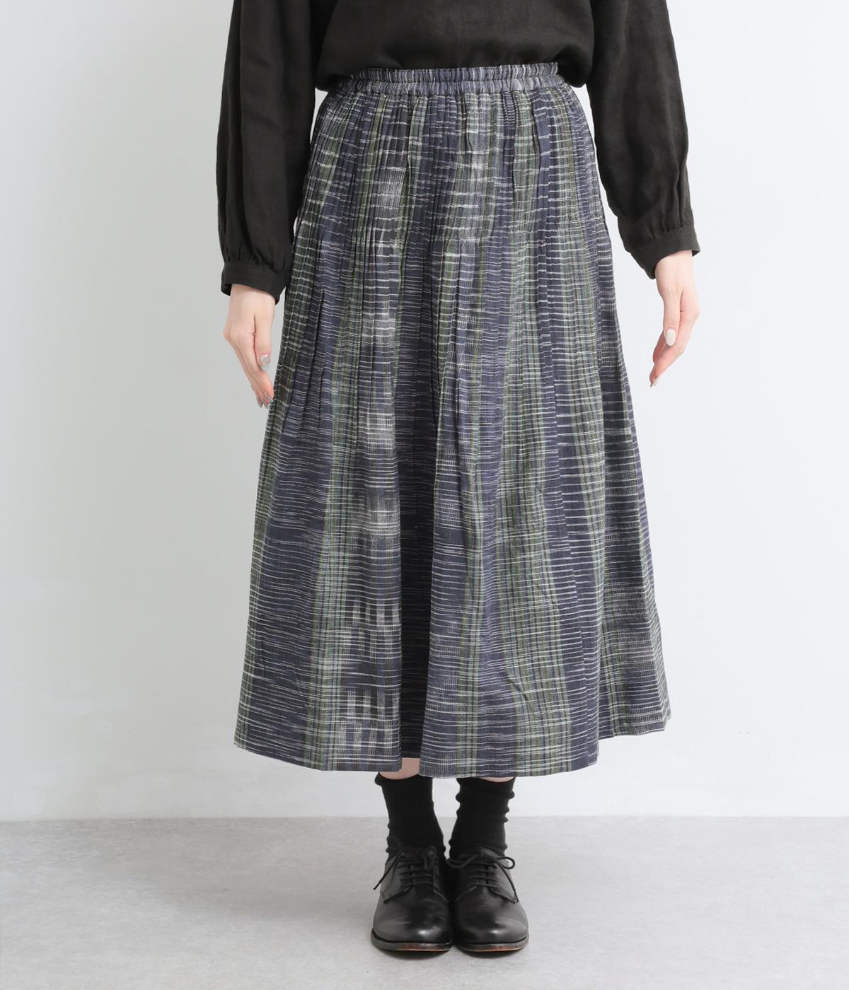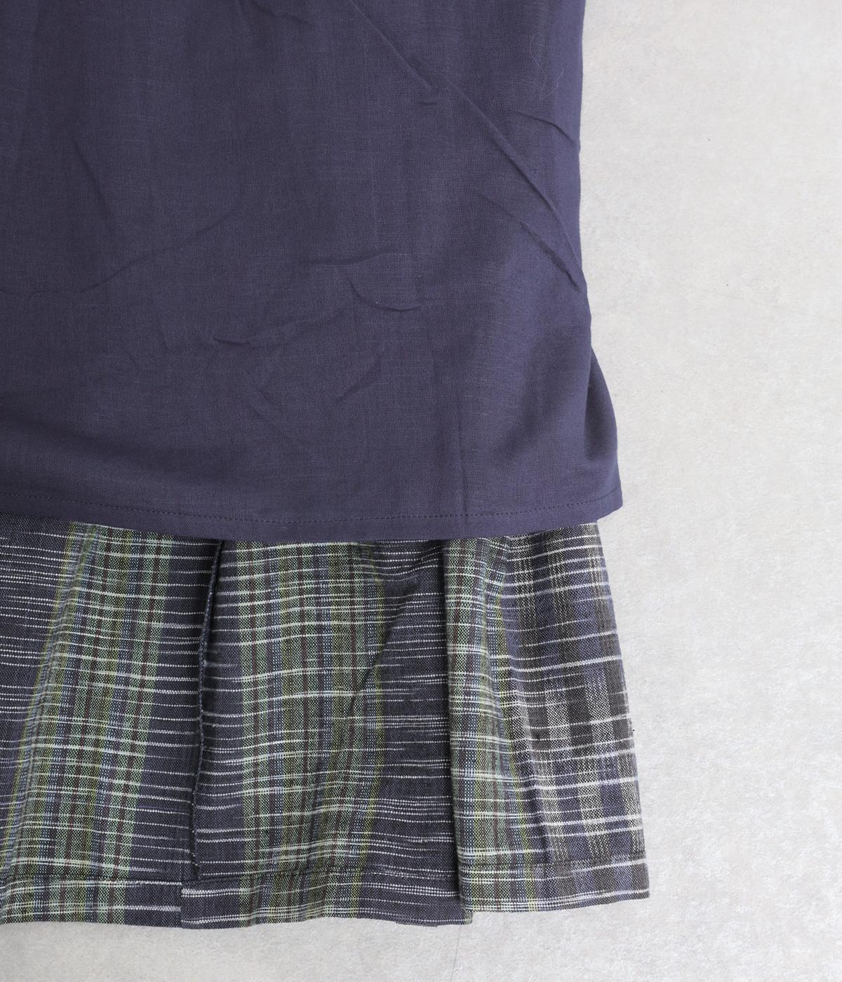 ひとつひとつ異なる味わいの鮮やかなチェック柄が、シックで上品な雰囲気を醸します。広がり過ぎない美しいシルエットが、素材の豊かな表情を引き立てます。ウエストは総ゴム仕様で、裏地付きで安心の穿き心地です。