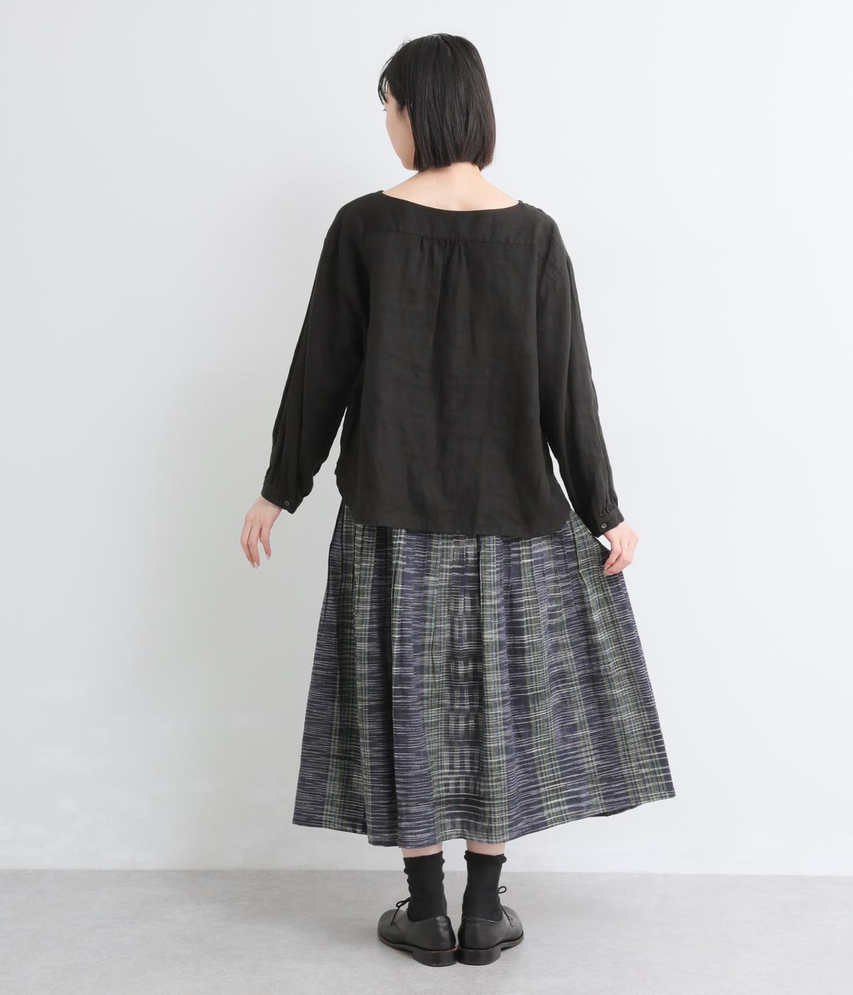 さらりとドライタッチなコットン生地です。タイの手しごとならではの味合い深い表情が魅力です。丁寧に畳まれたピンタックが奥行きのある表情をつくります。