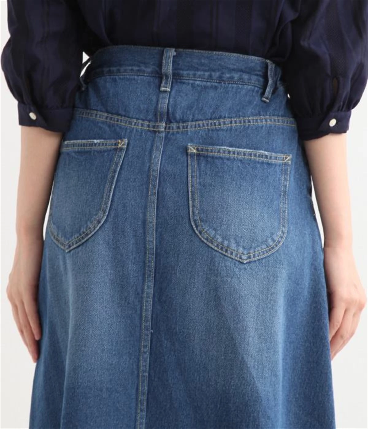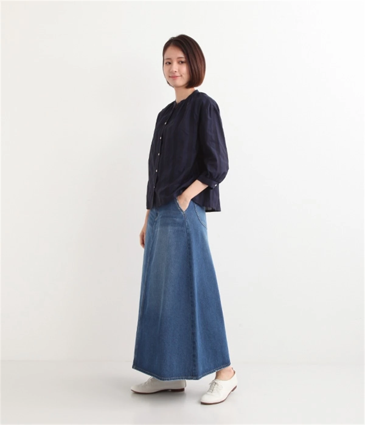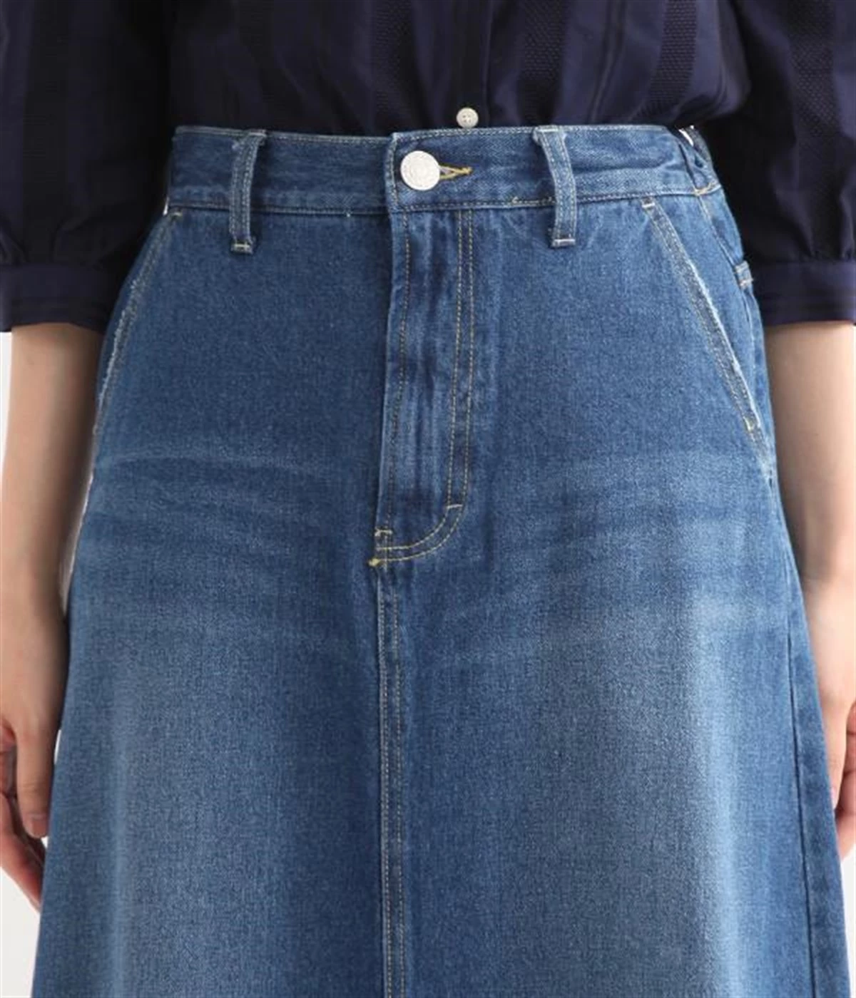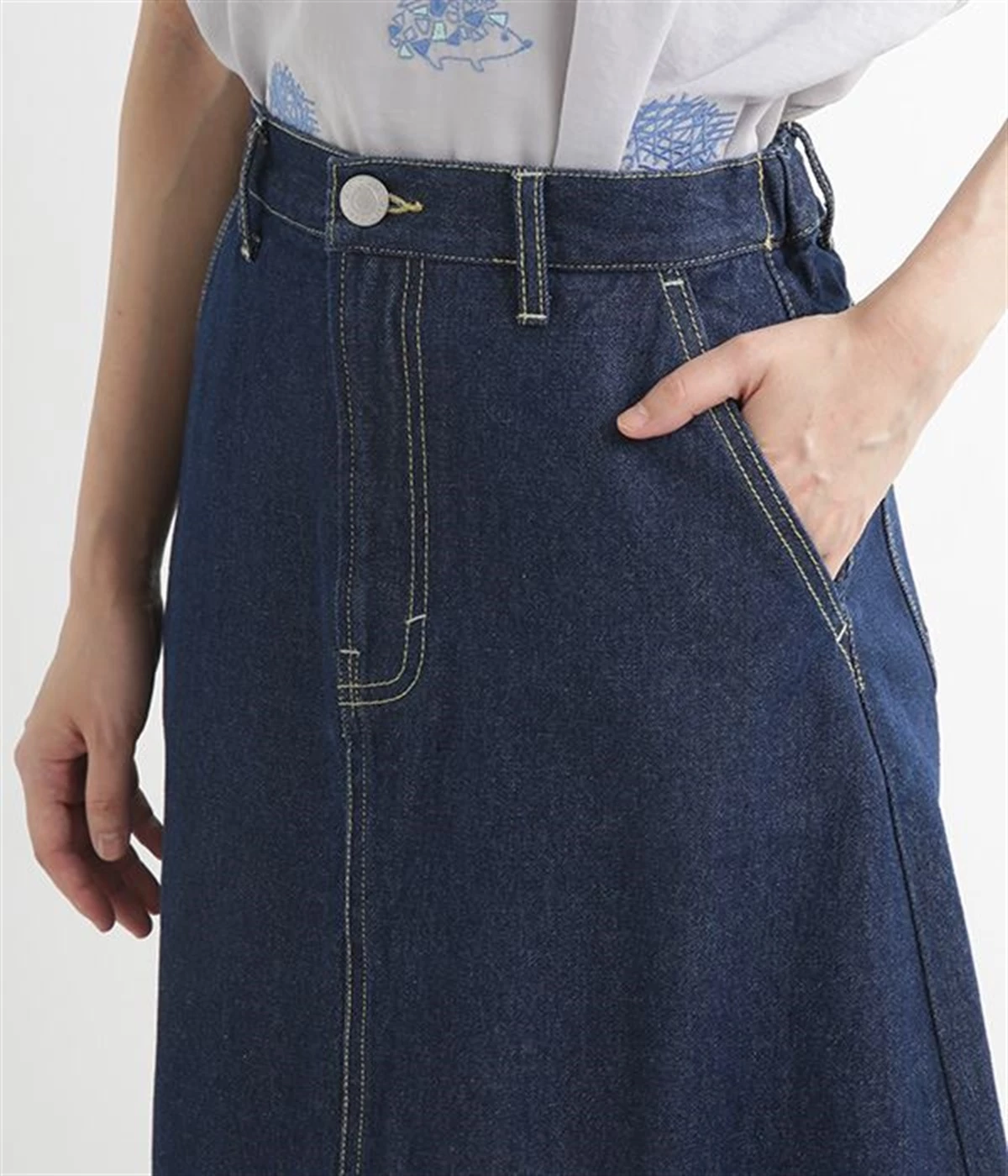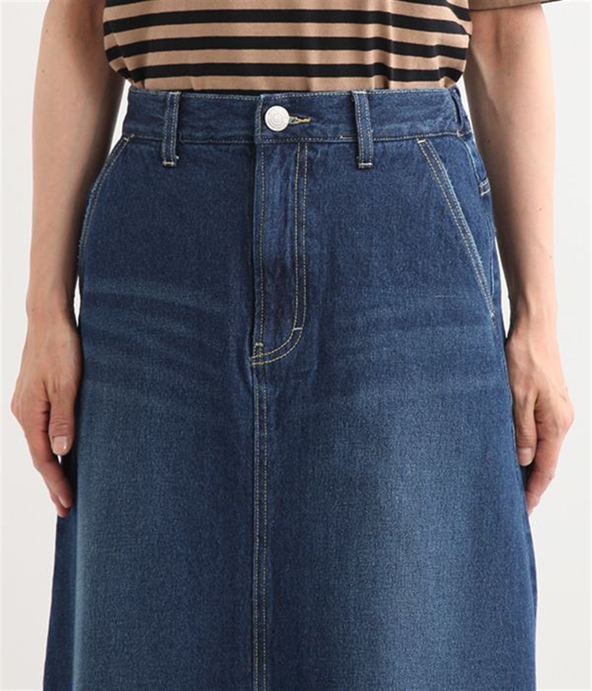シンプルなデザインで合わせるトップスを選ばない、コットンデニム生地仕立てのロングスカートです。腰回りはスッキリさせつつ、裾にかけてゆるやかに広がるAラインシルエット。程よく厚みがありロングシーズン着回せます。ウエストにはベルトフープが付いているので、お手持ちのベルトでウエストマークしても◎。大人カジュアルにふさわしい、デイリーに活躍する一着です。