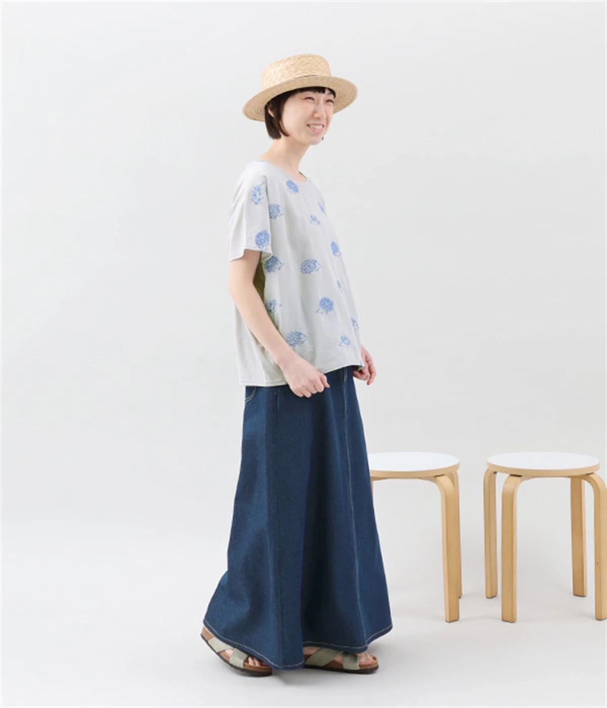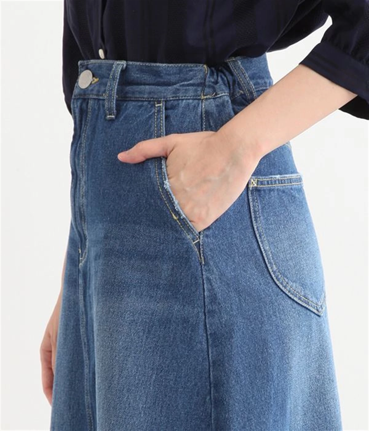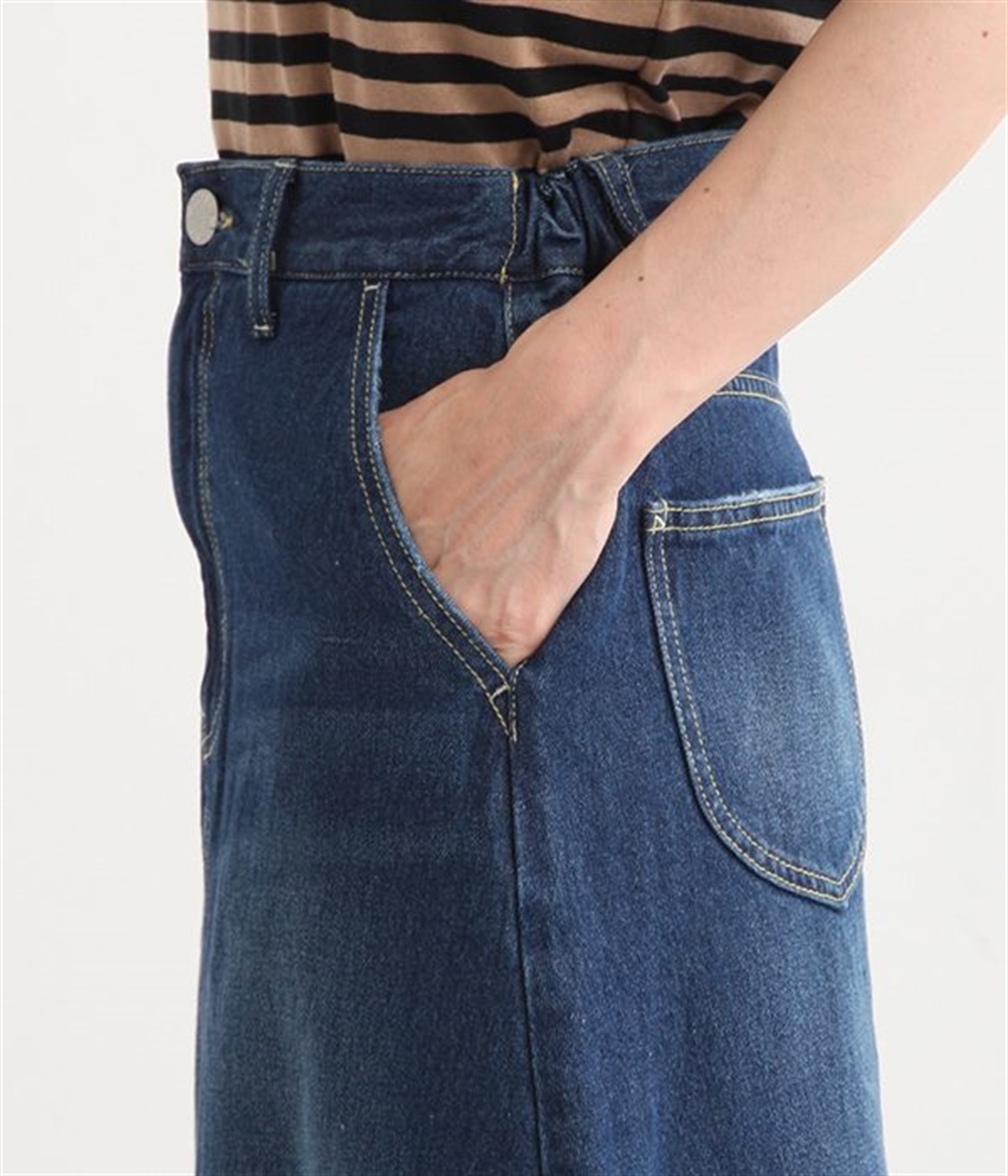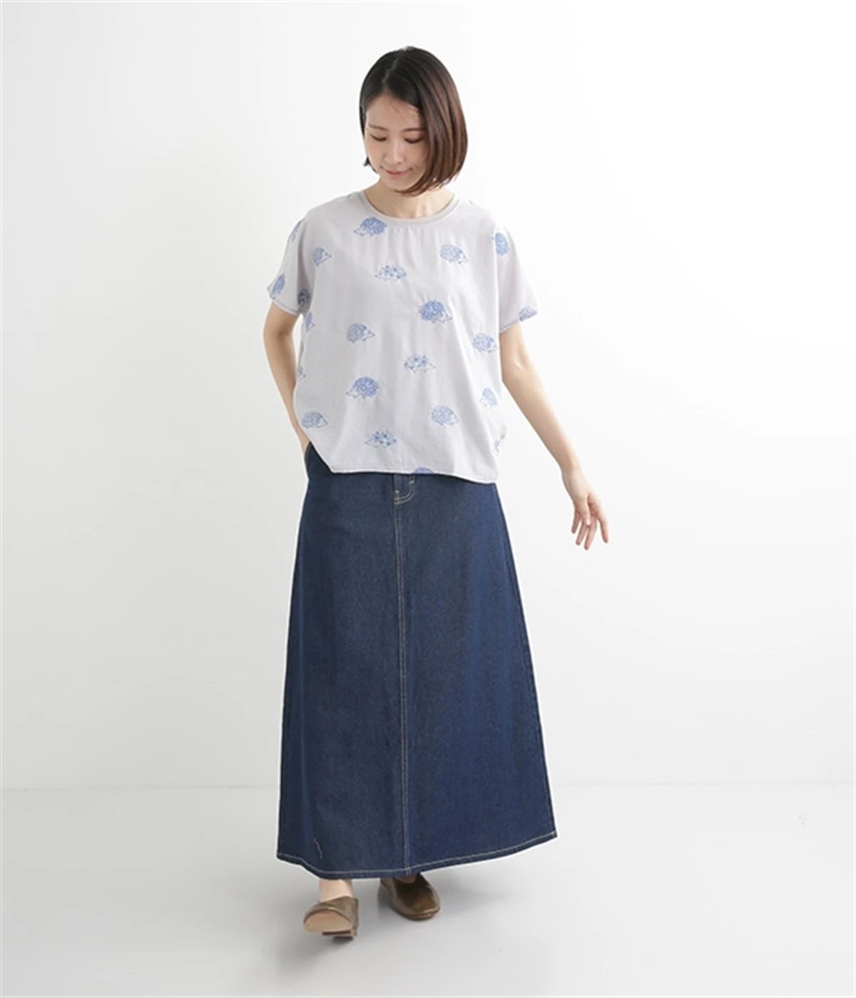 シンプルなデザインで合わせるトップスを選ばない、コットンデニム生地仕立てのロングスカートです。腰回りはスッキリさせつつ、裾にかけてゆるやかに広がるAラインシルエット。程よく厚みがありロングシーズン着回せます。ウエストにはベルトフープが付いているので、お手持ちのベルトでウエストマークしても◎。大人カジュアルにふさわしい、デイリーに活躍する一着です。