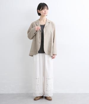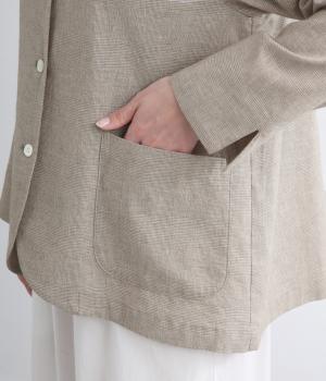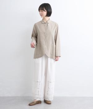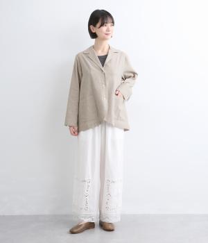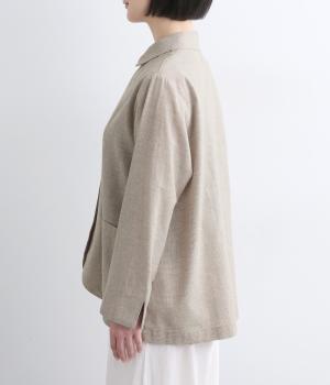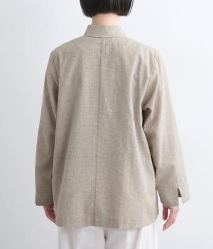 さらりとした涼し気な素材が心地よい着用感を運ぶコットンリネン製。縫製後の製品洗いによる風合いが豊かで、見た目も羽織り心地も軽い仕上がりです。