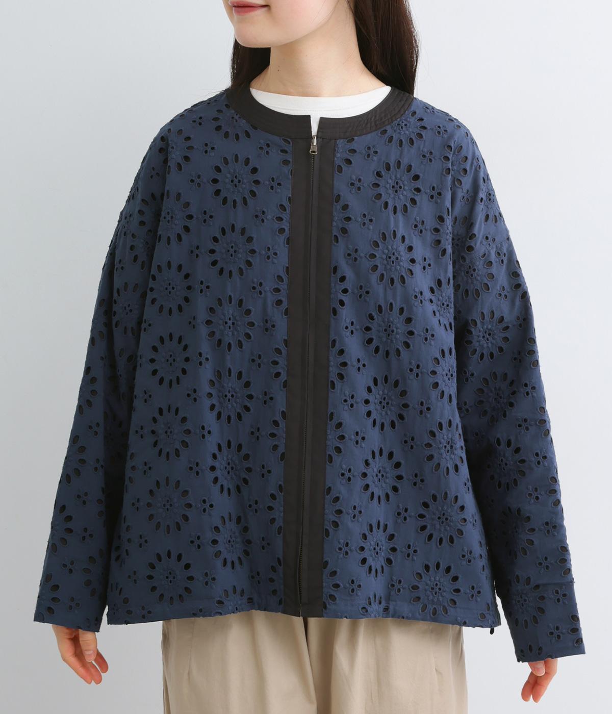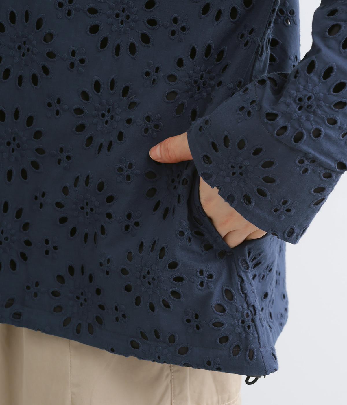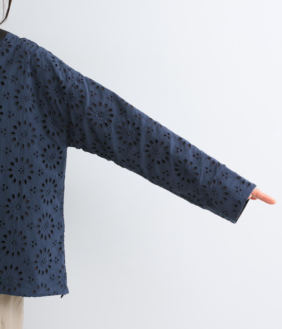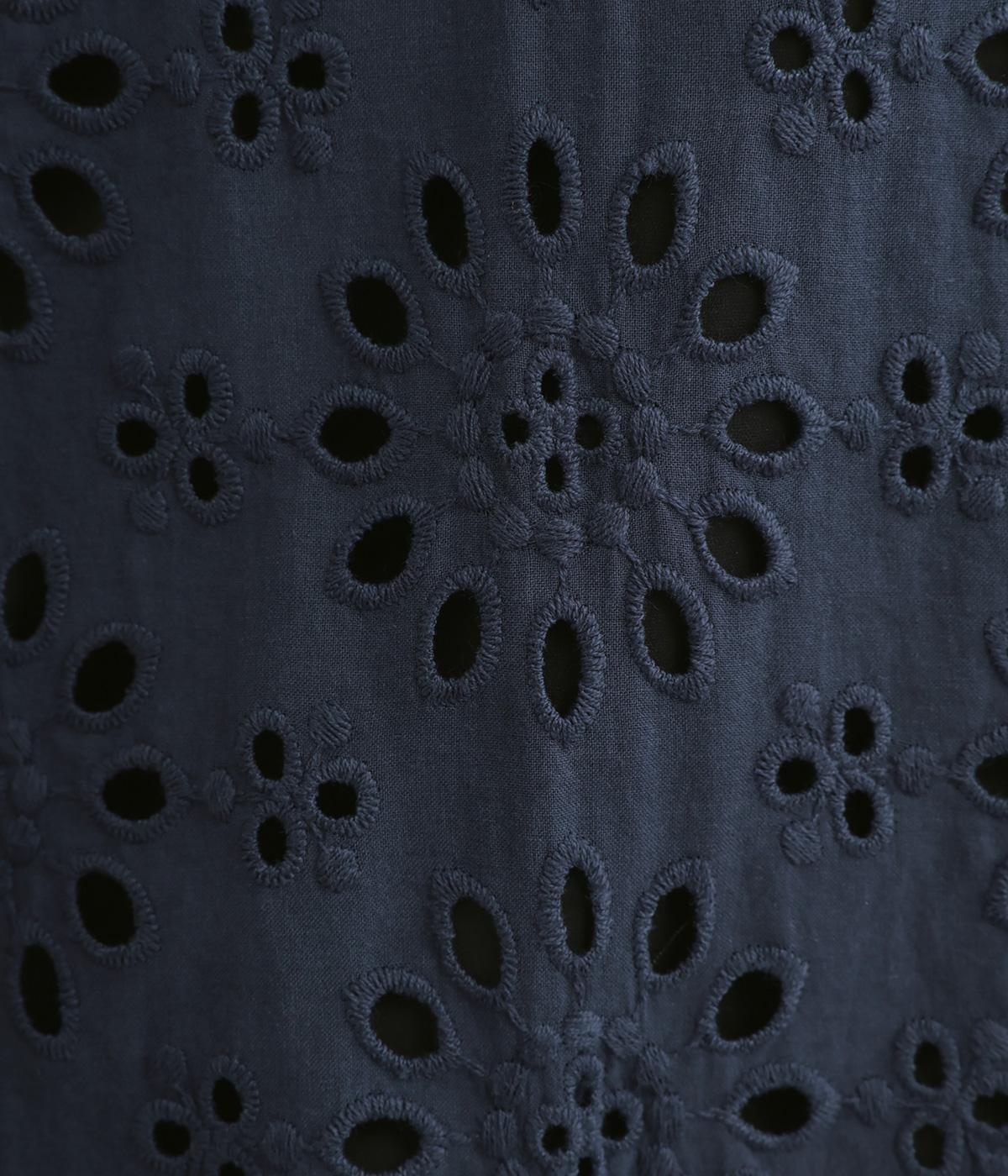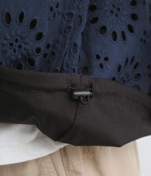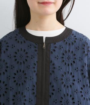表は綿素材にカットワーク刺しゅうを。裏はコットンポリエステルのエステネージュを採用。品のいい光沢があり、UVカット・接触冷感・抗菌防臭・防シワなど高機能素材になっています。